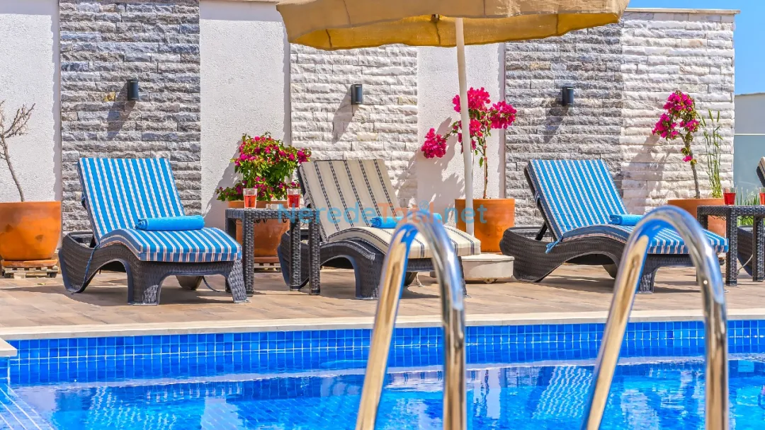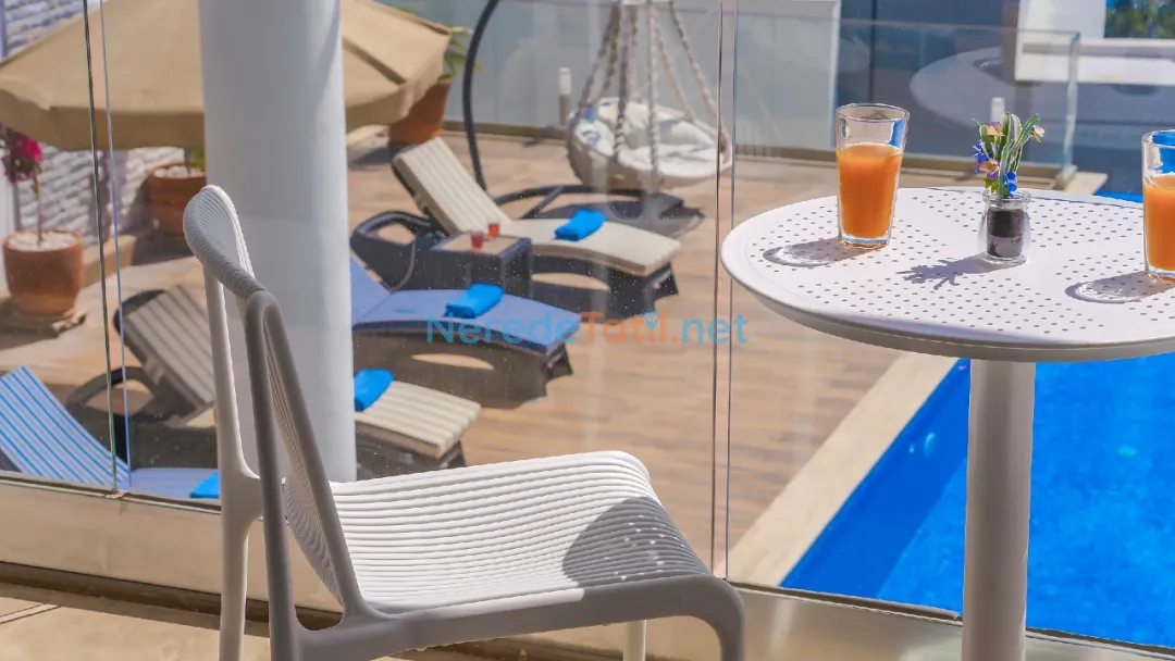 Villanın geniş bahçesinde bulunan özel yüzme havuzu 4x8 metre boyutlarındadır ve tatiliniz boyunca serinleyip, keyifli anlar geçirmenize olanak tanır. Çocuklar için düşünülmüş özel çocuk havuzu ise 2x2 metre boyutlarında olup, 90 cm derinliğindedir. Ayrıca, günün yorgunluğunu atmak için jakuzi keyfi de sizi bekliyor.