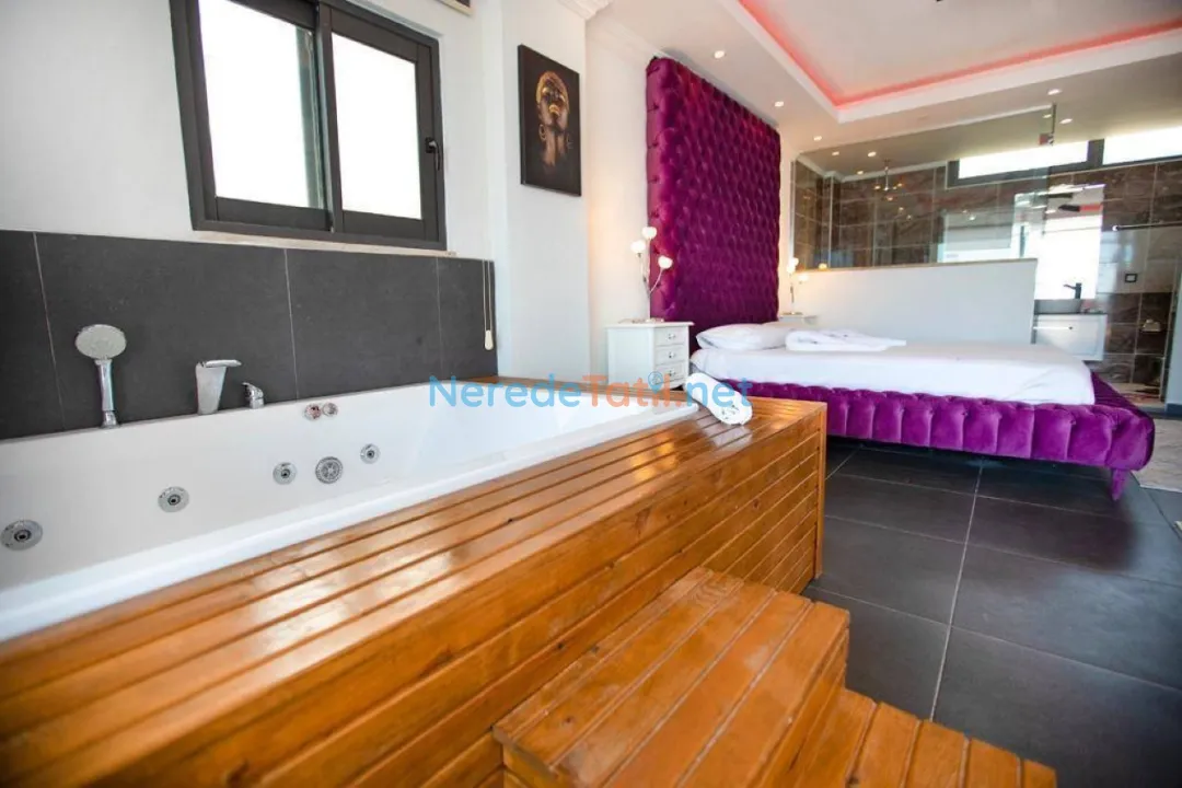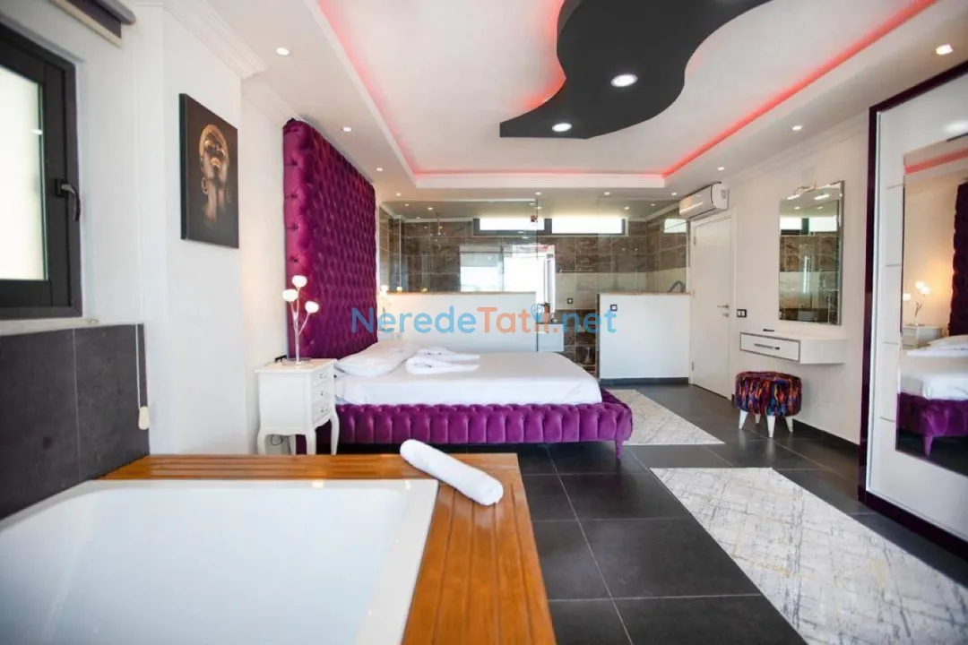 İslamlar köyünün sakin atmosferinde yer alan bu villa, özel bir tatil için mükemmel bir kaçamak sunuyor. Sadece iki kişi için ideal olan bu villa, özel yüzme havuzu ile konforlu bir tatil deneyimi sağlar. Havuzun genişliği 4 metre, uzunluğu ise 9 metre olup, 1.5 metre derinliğindedir, bu da size geniş bir yüzme alanı sunar.