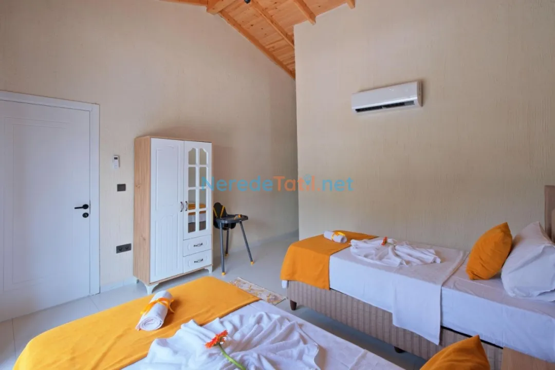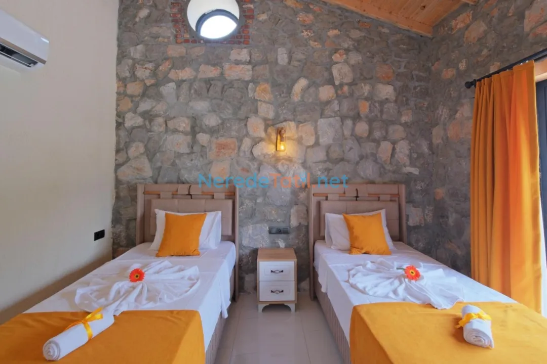 Fethiye'nin el değmemiş doğasında konumlanmış olan bu villa, 4 kişilik konforlu konaklama imkanı sunmaktadır. Villada iki yatak odası ve iki banyo bulunuyor. Bir yatak odasında çift kişilik yatak, diğerinde ise iki tek kişilik yatak yer almaktadır.