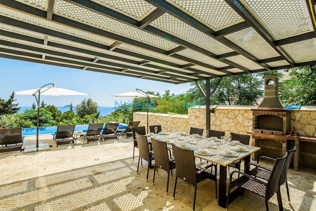 Kalkan'ın eşsiz güzellikleri arasında konumlanan bu lüks villa, hem konfor hem de doğa ile iç içe bir tatil deneyimi sunuyor. Villa, 14 kişilik kapasitesi ile kalabalık aileler ve arkadaş grupları için idealdir. 7 yatak odası ve 7 banyosu bulunan villada, rahat bir konaklama sağlanmaktadır.