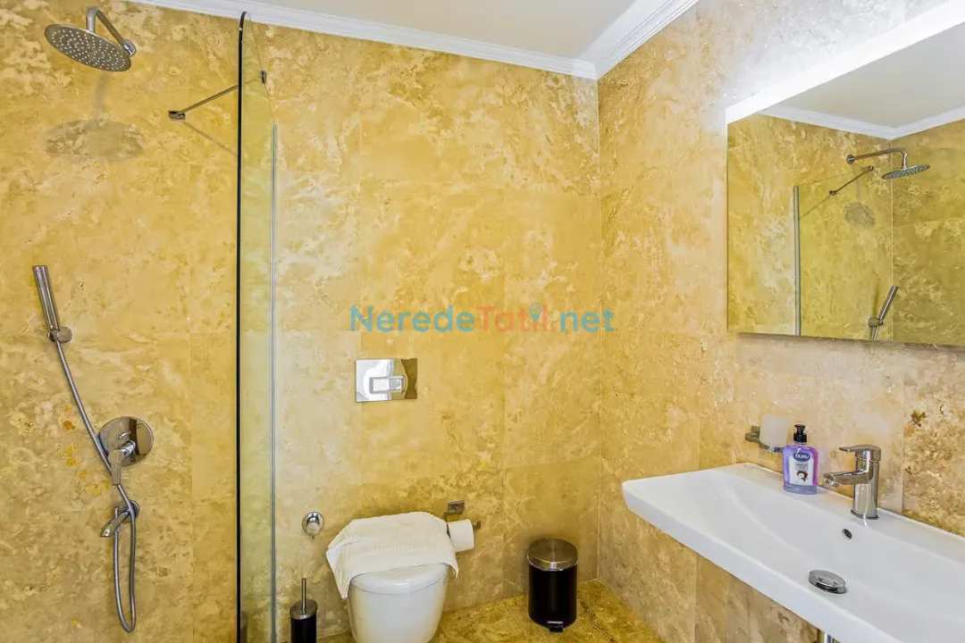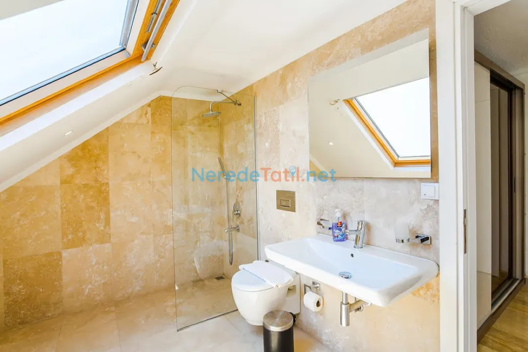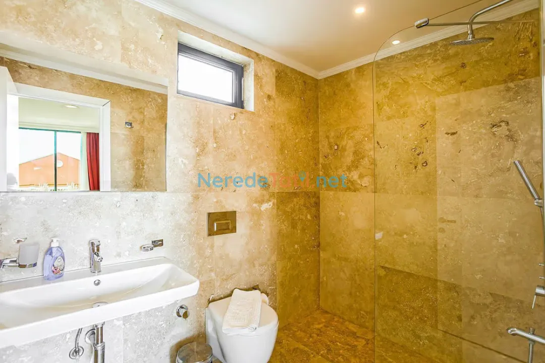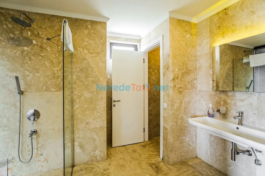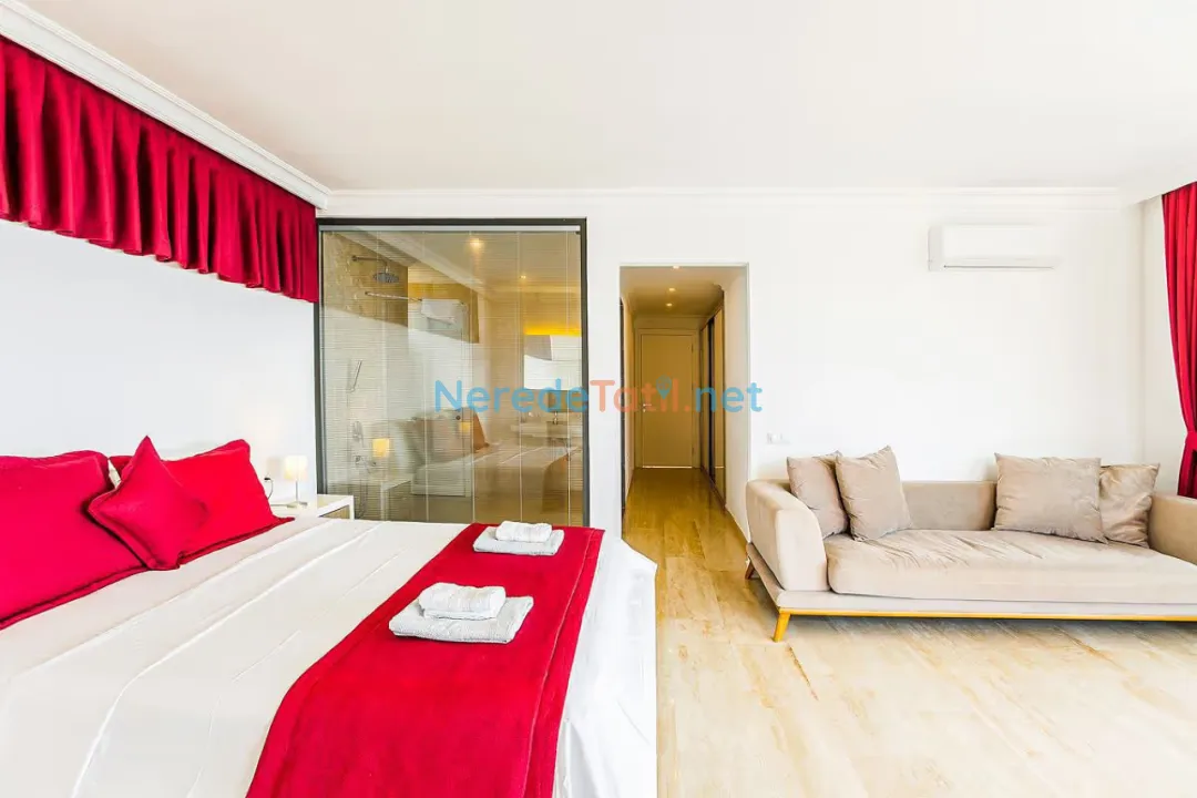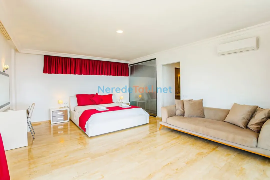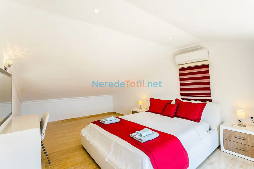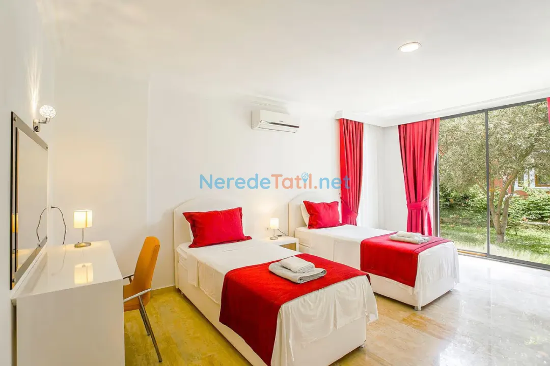 Villanın en dikkat çekici özelliklerinden biri deniz manzarasıdır. Eşsiz manzaranın tadını çıkarırken, özel yüzme havuzunda serinleyebilirsiniz. Havuzun genişliği 4 metre, uzunluğu 12 metre ve derinliği 1.45 metredir. Ayrıca, ısıtmalı havuz özelliği ile serin akşamlarda da keyifli vakit geçirebilirsiniz.