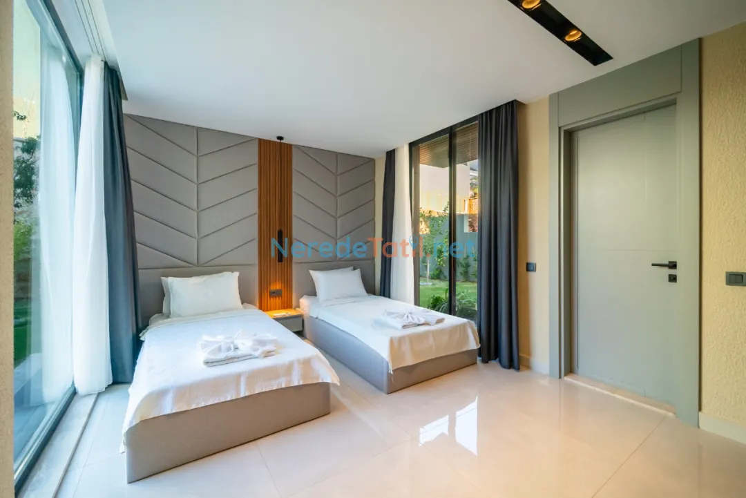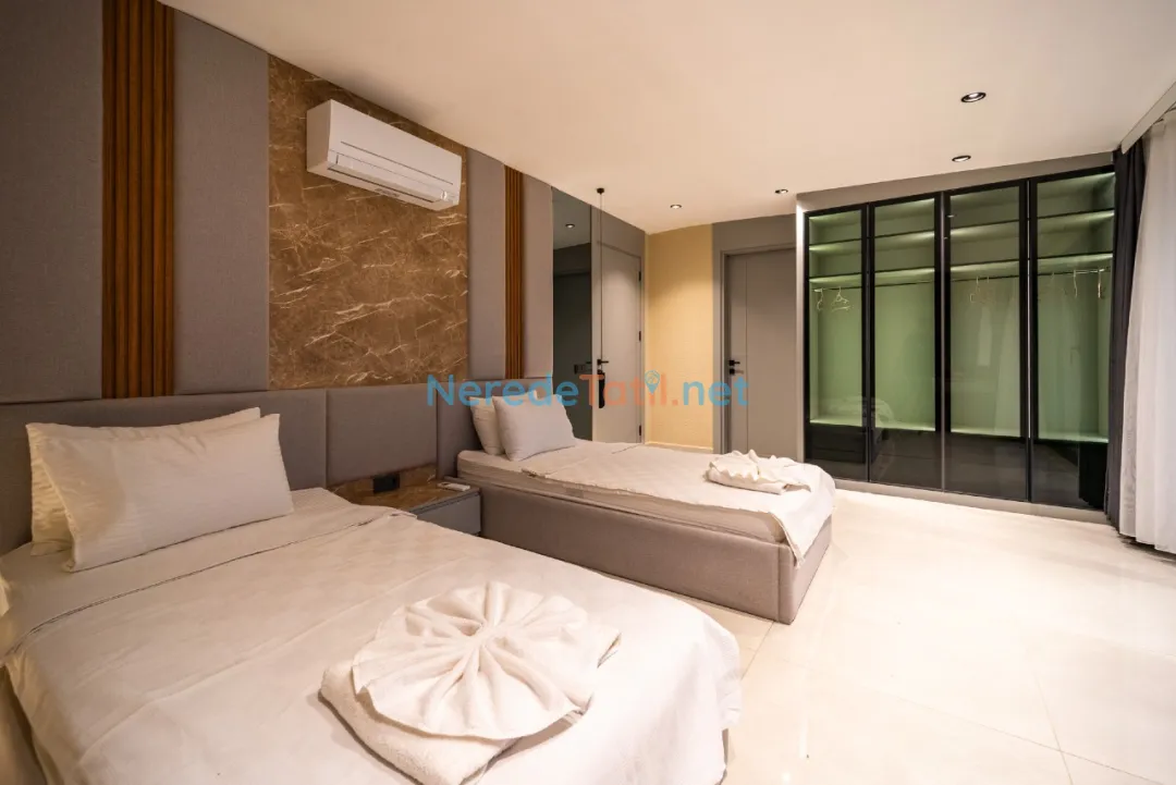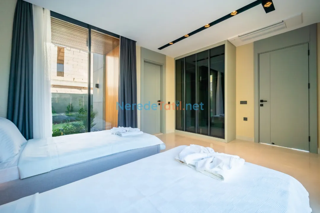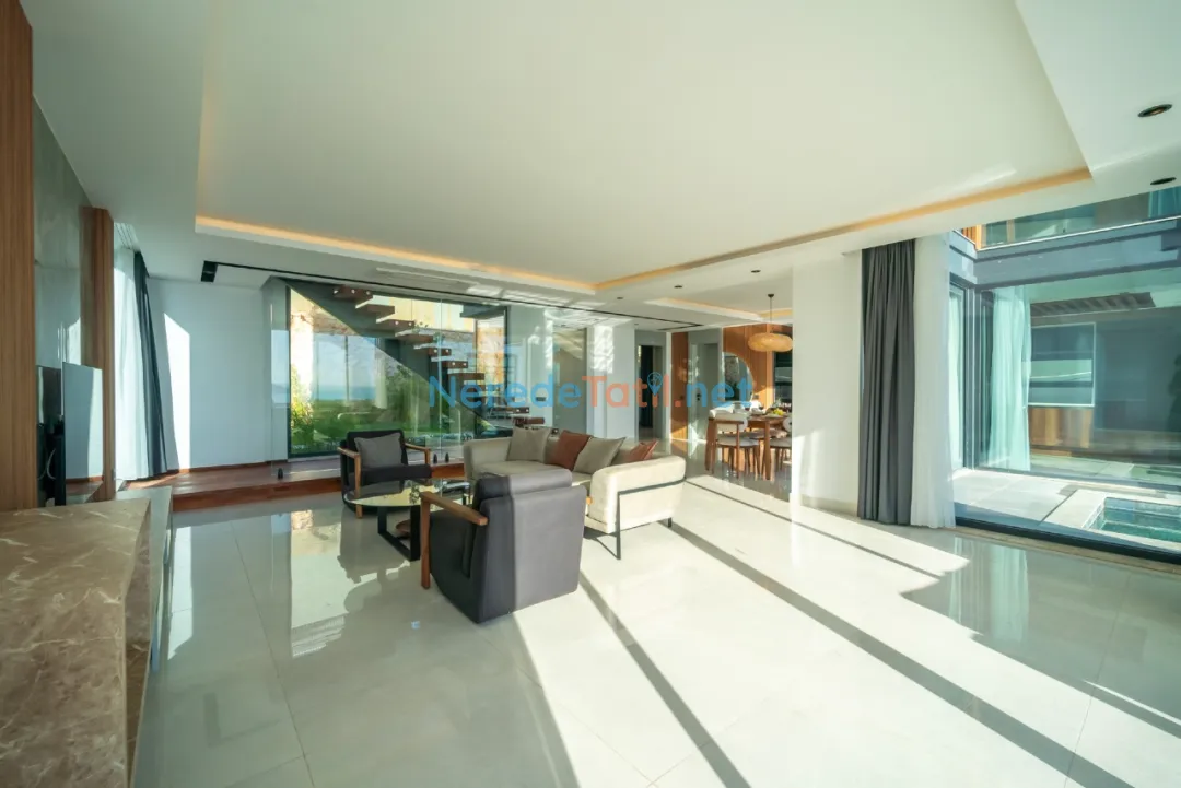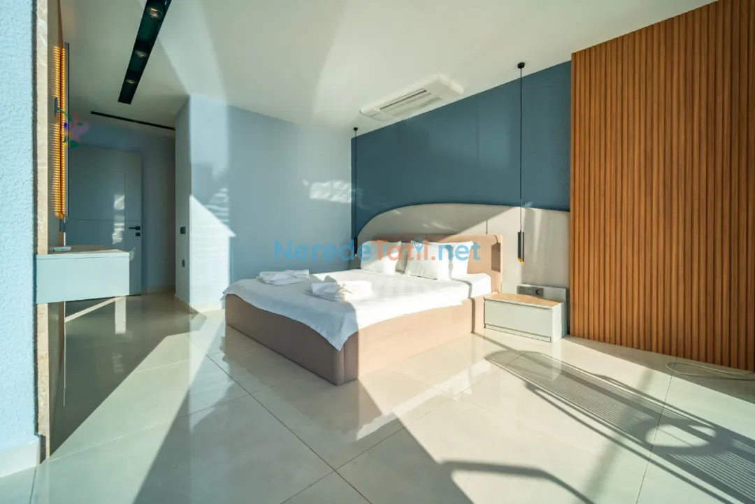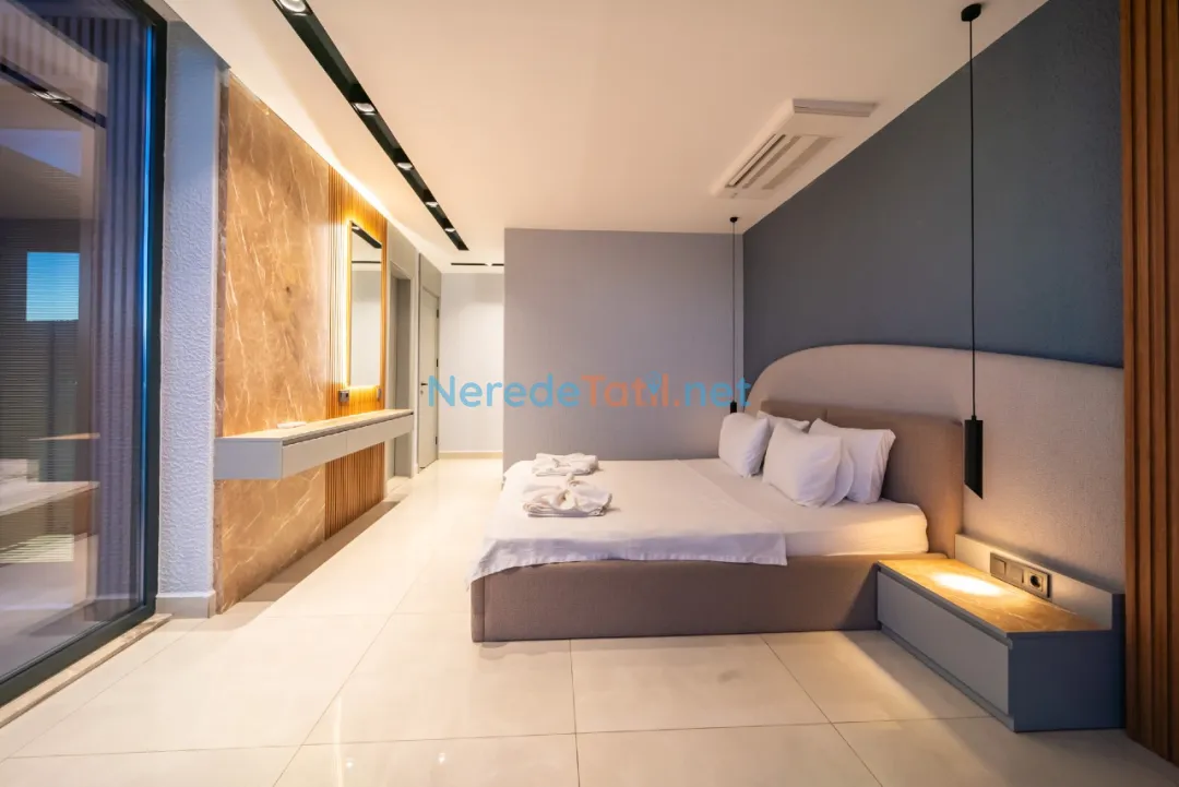 Villanın konumu şehir içindedir ve plaj, market, merkezi noktalar gibi yerlere sadece 1 km mesafededir. Misafirler, otopark gibi olanaklardan da yararlanabilirler. Lüks ve konforun buluştuğu bu villa, aynı zamanda balayı çiftleri ve ultra lüks tatil arayışında olanlar için de mükemmel bir tercihtir.