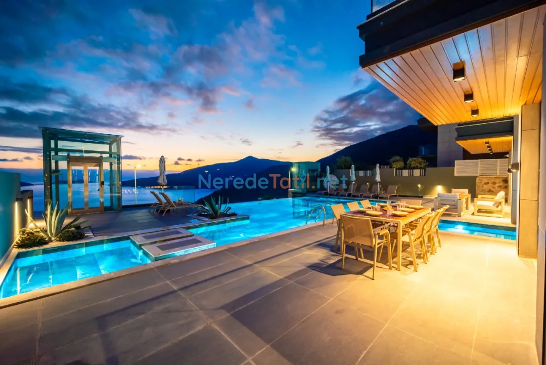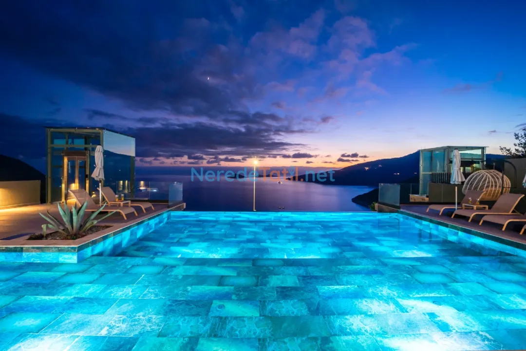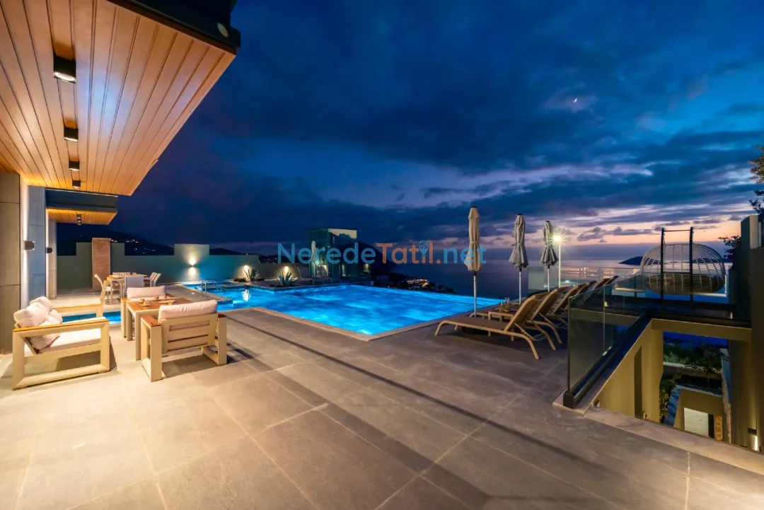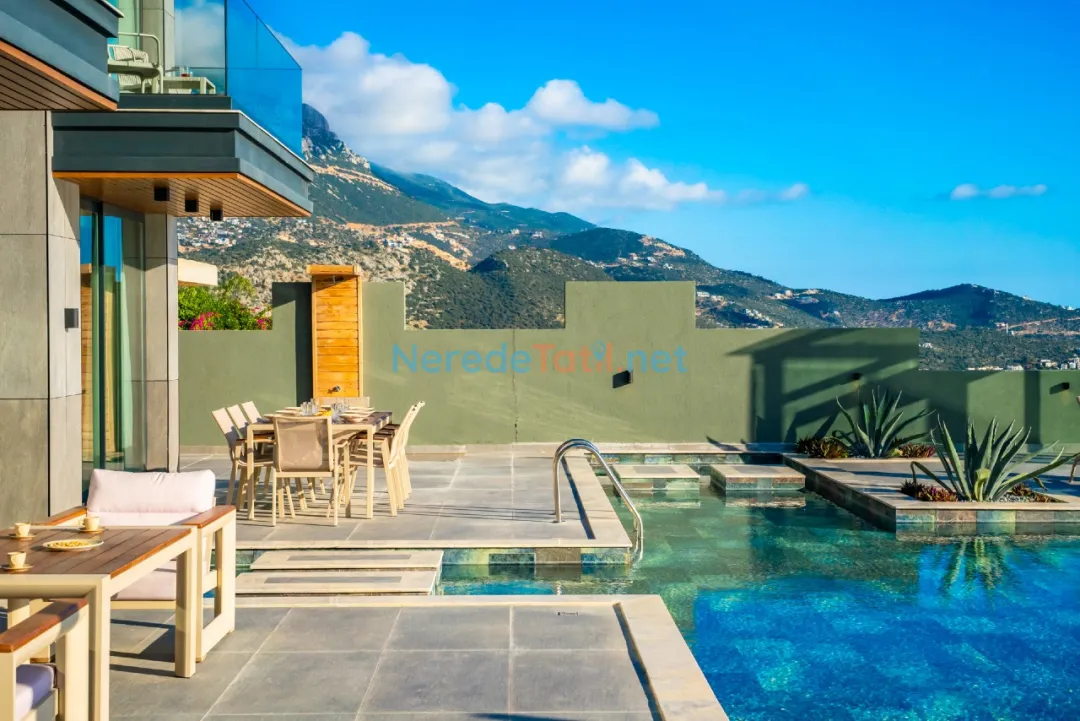Kalkan'ın eşsiz güzellikleri arasında yer alan bu villa, deniz manzaralı konumuyla misafirlerine unutulmaz bir tatil sunmaktadır. Özel havuzuyla serinleyebilir, 4 metre genişliğinde ve 8 metre uzunluğundaki havuzda yüzmenin tadını çıkarabilirsiniz. Havuzun derinliği ise 1,5 metredir.