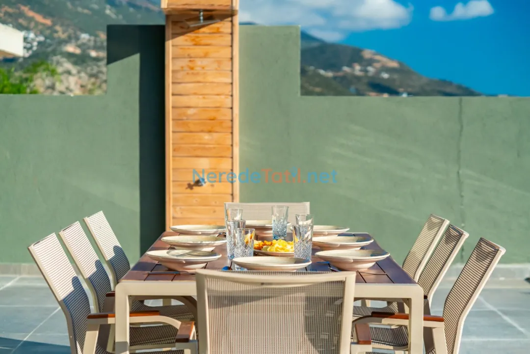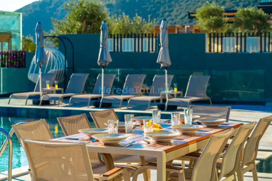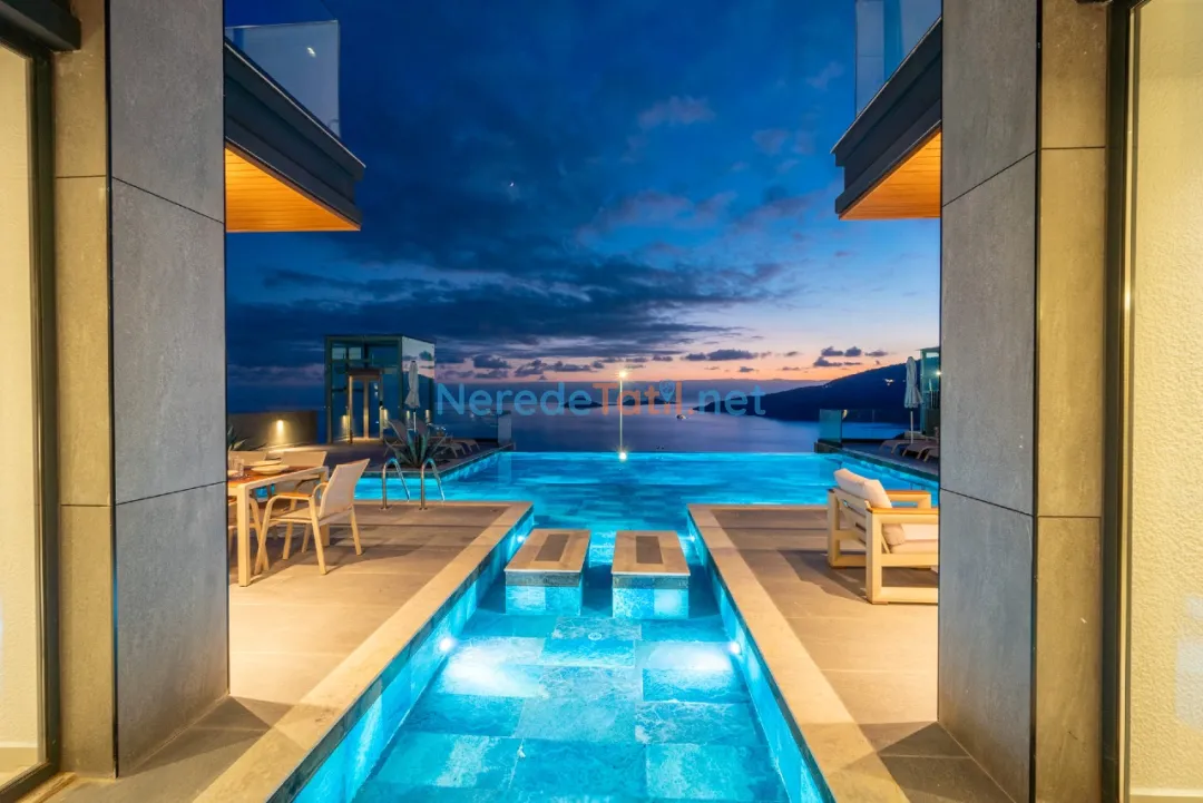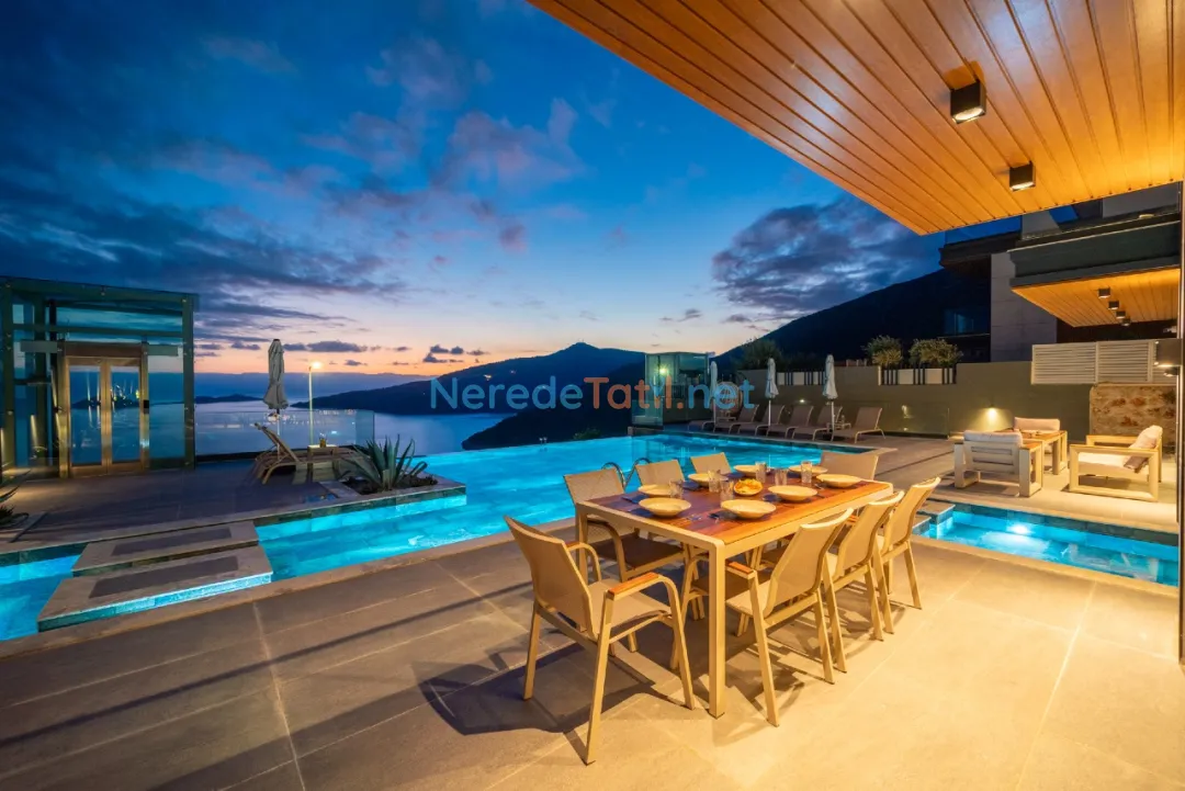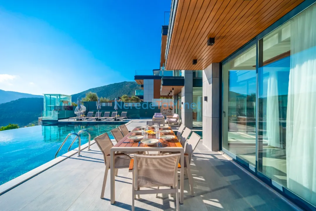 Kalkan'ın eşsiz güzellikleri arasında yer alan bu villa, deniz manzaralı konumuyla misafirlerine unutulmaz bir tatil sunmaktadır. Özel havuzuyla serinleyebilir, 4 metre genişliğinde ve 8 metre uzunluğundaki havuzda yüzmenin tadını çıkarabilirsiniz. Havuzun derinliği ise 1,5 metredir.