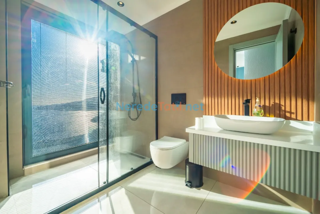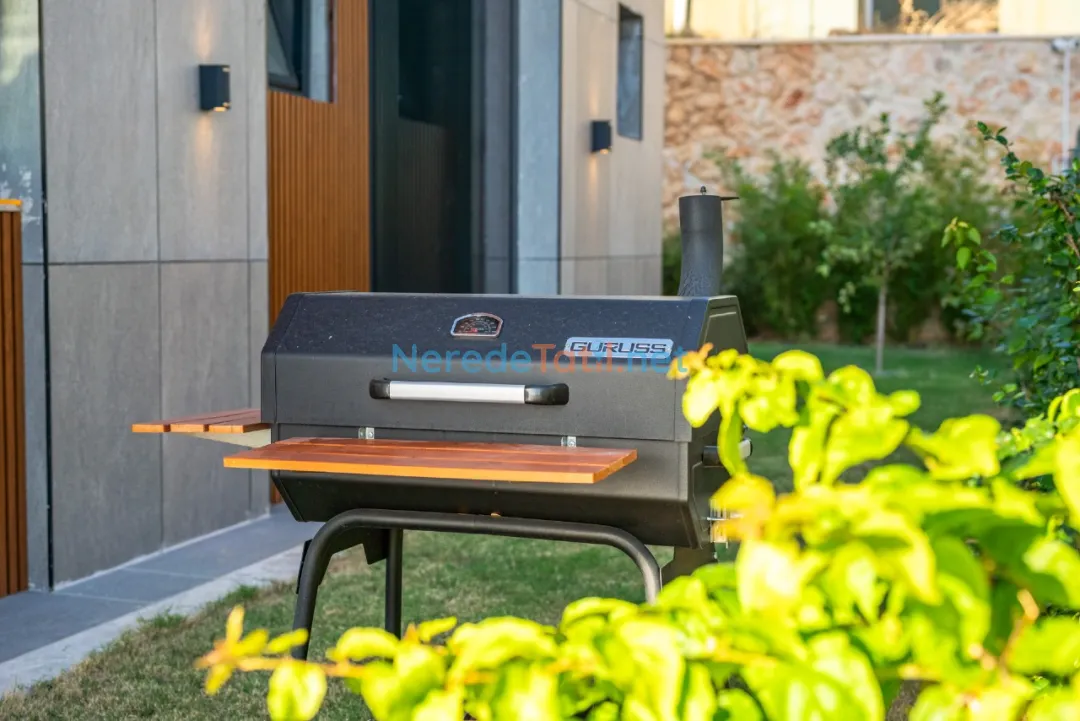 Villa, 5 yatak odası ve 5 banyo ile 10 kişiye kadar konaklama imkanı sunmaktadır. 3 çift kişilik ve 4 tek kişilik yatak sayesinde geniş aileler ve arkadaş grupları için idealdir. Mangal keyfi yapabileceğiniz BBQ alanı ve doğayla iç içe bahçesi bulunmaktadır.