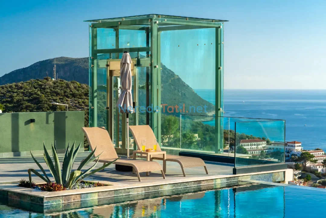 Kalkan'da Deniz ve Doğa Manzaralı, Asansör' lü Lüks Villa