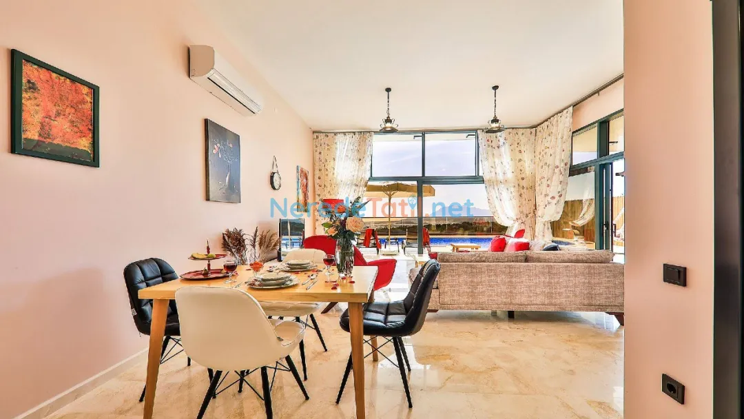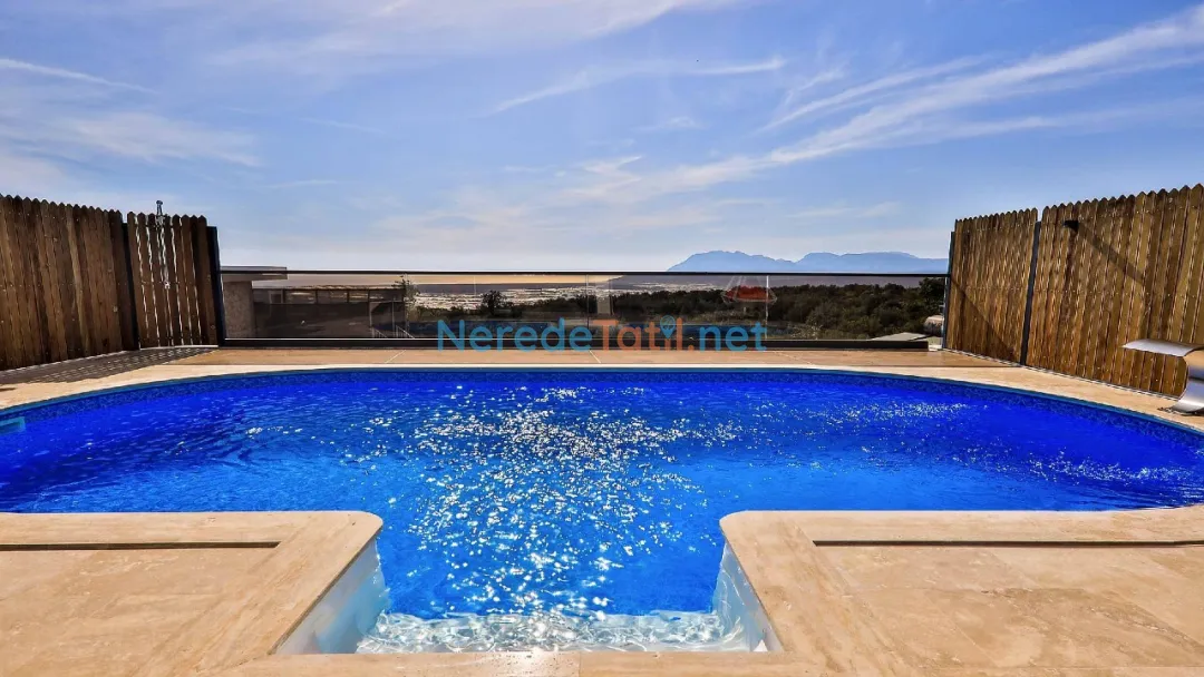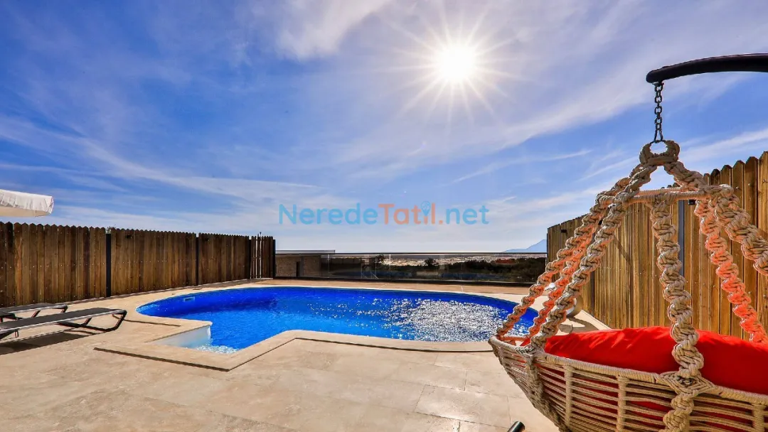 Villanın geniş yüzme havuzu, 4 metre eninde ve 8 metre boyunda olup, 1.55 metre derinliği ile keyifli yüzme deneyimleri sunar. Üstelik havuz, dış etkenlerden korunaklıdır, böylece rahatça yüzmenin tadını çıkarabilirsiniz.