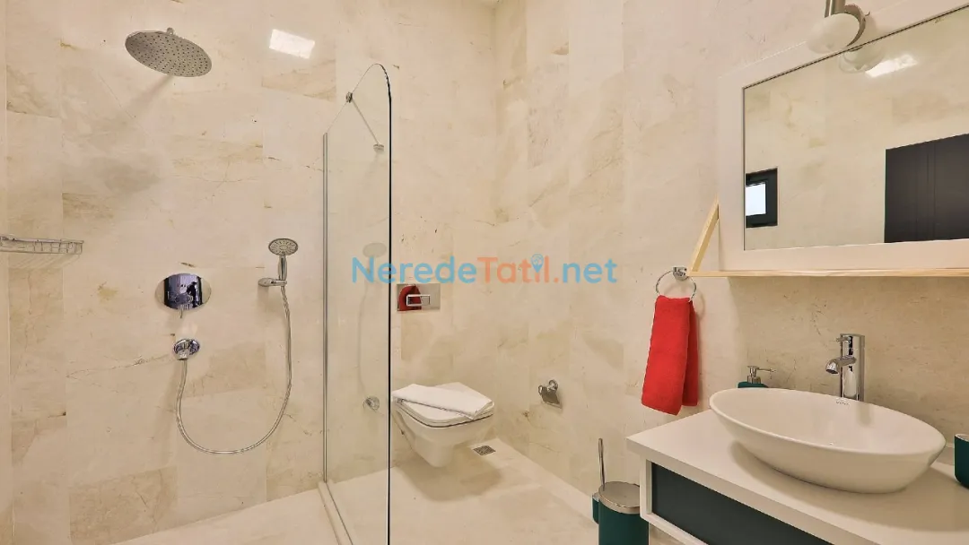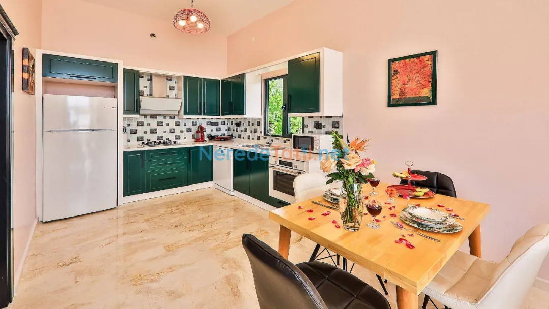 Mangal keyfi için özel BBQ alanı bulunan villada, günlük ihtiyaçlarınızı karşılamak için saç kurutma makinesi ve ütü gibi olanaklar da mevcut. Villanın çevresinde, sadece 250 metre uzaklıktaki market ve restoranlar bulunmakta, bu da konforlu bir tatil geçirmenizi sağlıyor.