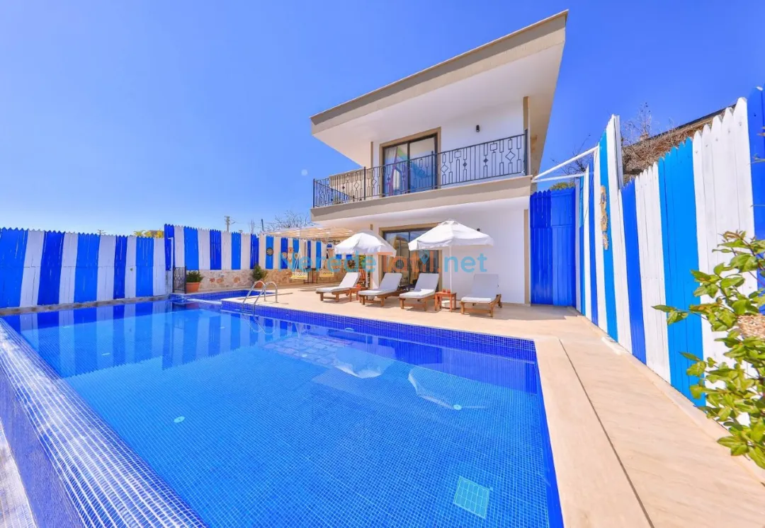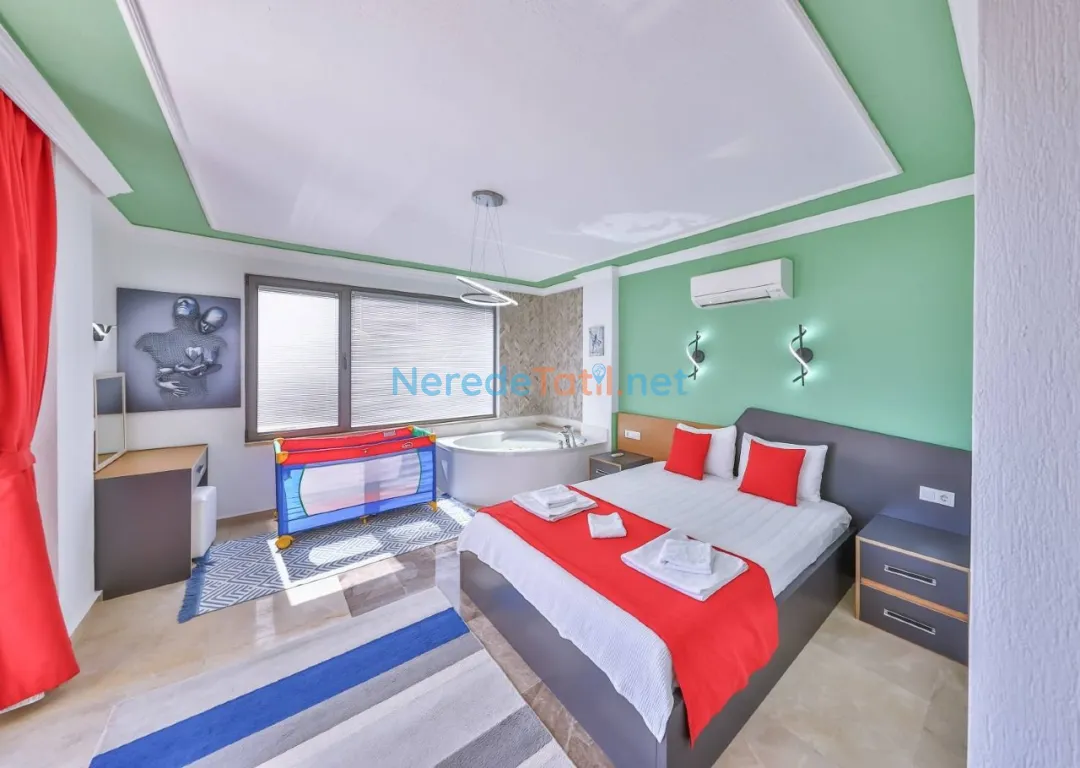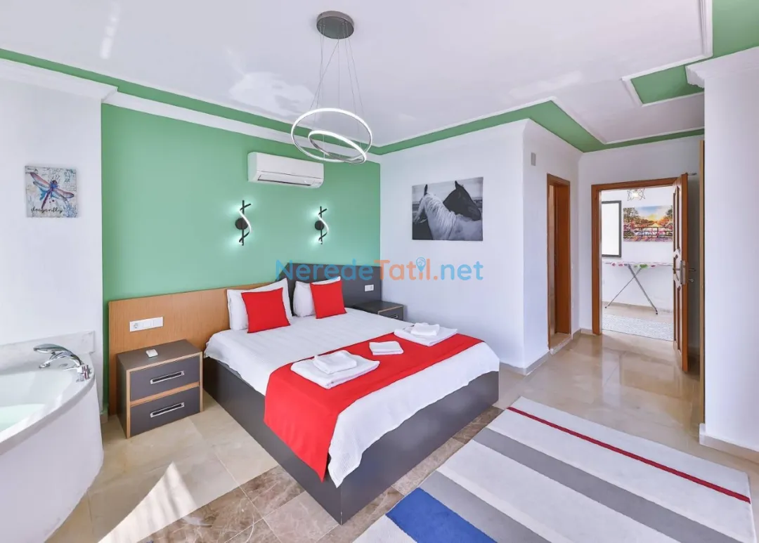 İslamlar'ın eşsiz doğası içinde yer alan bu villa, dört kişiye kadar konaklama kapasitesi sunmaktadır. İki yatak odası ve iki banyo ile konforlu bir tatil deneyimi vaat eden villa, bir adet çift kişilik yatak ve iki adet tek kişilik yatakla donatılmıştır. Özel yüzme havuzu 4.5 metre genişliğinde, 9 metre uzunluğunda ve 1.5 metre derinliğindedir, bu da misafirlere rahat bir yüzme deneyimi sunar. Ayrıca, çocuk havuzu da bulunmaktadır; 0.5 metre derinliği ile çocuklar için güvenli bir oyun alanıdır.