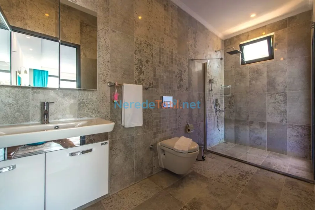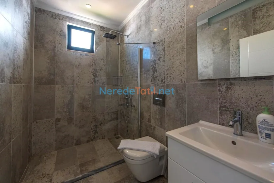 Her iki yatak odası da kendi banyosuna sahiptir, toplamda iki banyo mevcuttur. Ayrıca, bebekli misafirler için bebek yatağı da sağlanmaktadır. Villanın 4 metre eninde ve 15 metre boyunda, 1.55 metre derinliğinde özel bir yüzme havuzu bulunmaktadır. Çocuk havuzu ya da kapalı havuz bulunmamaktadır.