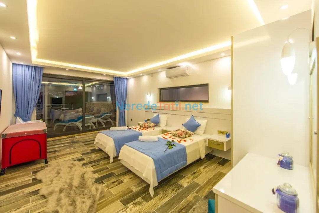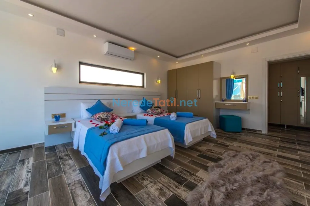 Üzümlü'nün doğal güzellikleri içinde yer alan bu villa, özel yüzme havuzu ve konforlu yaşam alanları ile eşsiz bir tatil deneyimi sunuyor. 4 kişilik kapasitesi ile aileniz veya arkadaşlarınızla huzurlu bir konaklama sağlayabilirsiniz. Villada iki yatak odası bulunmakta olup, birinde çift kişilik yatak, diğerinde ise iki tek kişilik yatak bulunmaktadır.