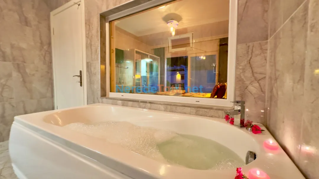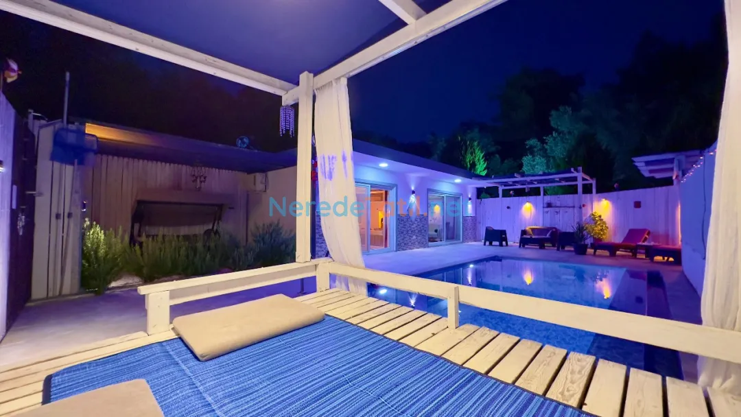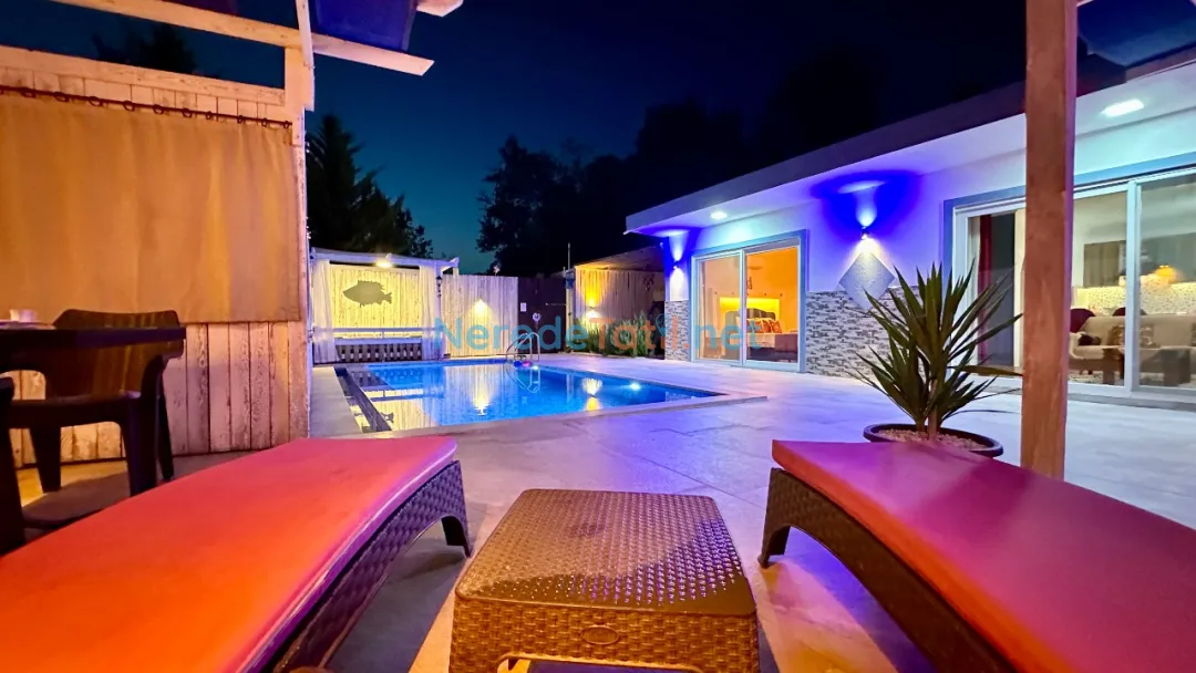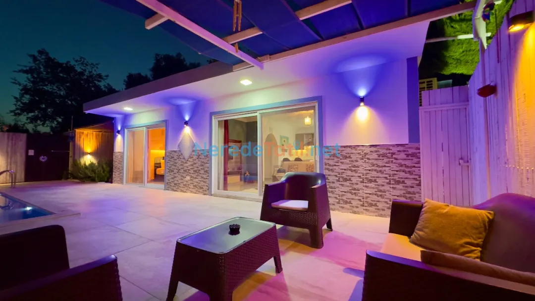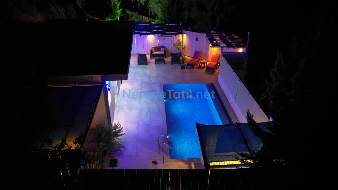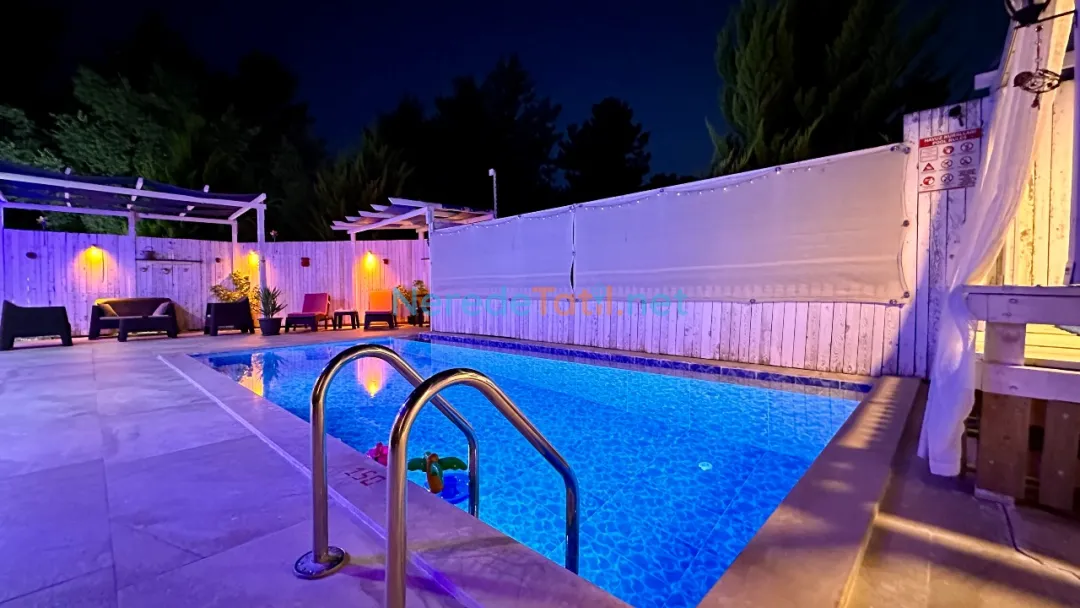 Özel yüzme havuzu, sıcak yaz günlerinde serinlemek için idealdir. Havuz, 3,5 metre genişliğinde, 8 metre uzunluğunda ve 1,6 metre derinliğinde olup, misafirlerin keyifle vakit geçirmesi için tasarlanmıştır. Ayrıca, villanın çevresinde bulunan doğa manzarası tatilinizi daha da özel kılacaktır.
