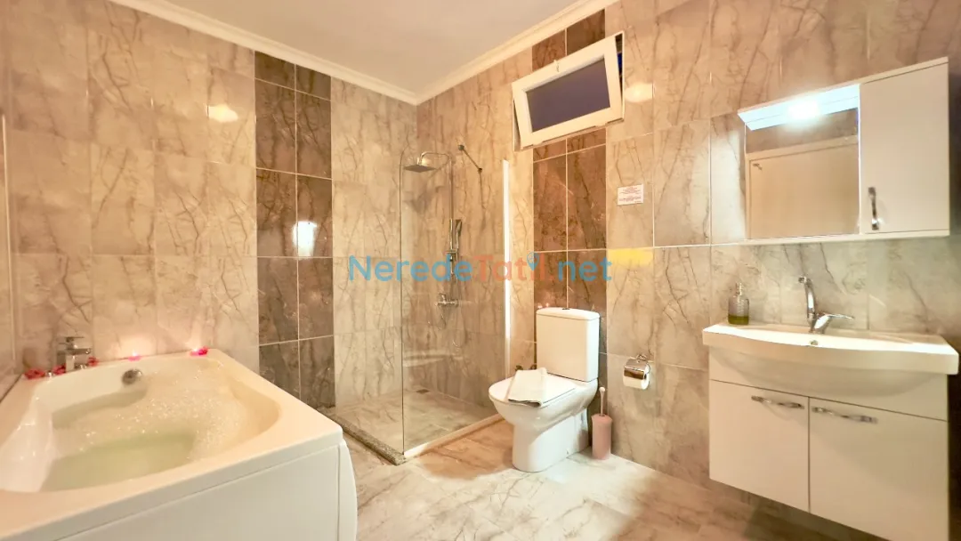Villa, plaja sadece 7,9 kilometre mesafede olup, market ve restoran gibi temel ihtiyaçlarınızı karşılayabileceğiniz yerlere 1 kilometre uzaklıktadır. İlçe merkezine 6,3 kilometre uzaklıkta yer alması, sessiz ve sakin bir ortamda dinlenirken, dilediğinizde şehir hayatına kolay erişim imkanı sunar.