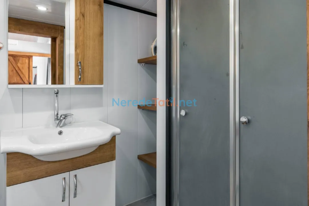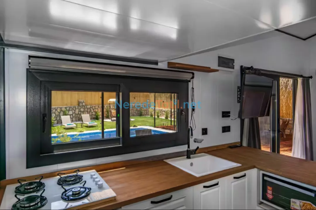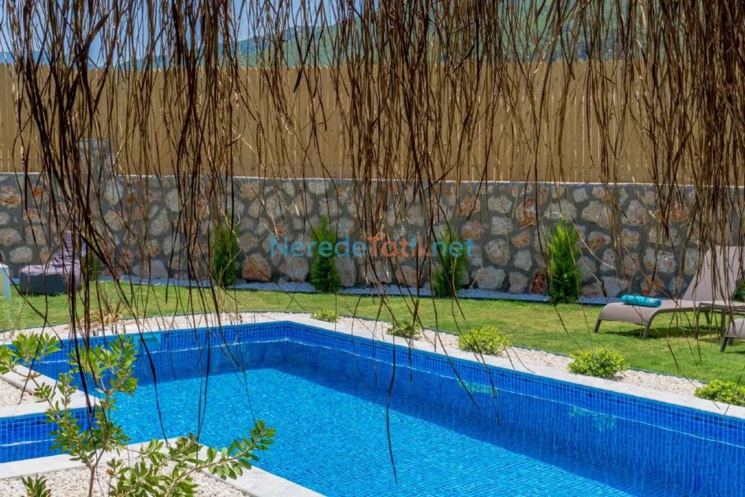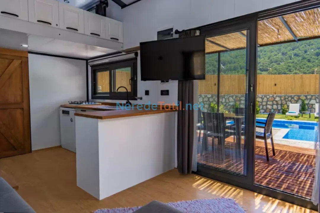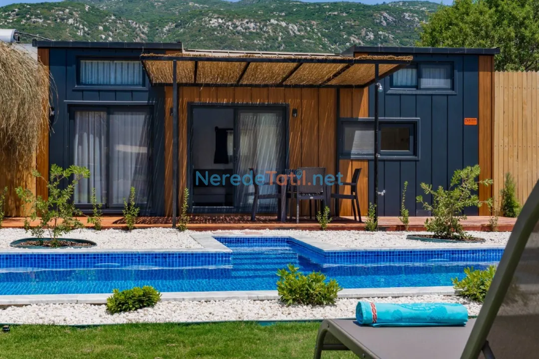 Villada iki geniş yatak odası ve iki banyo bulunmaktadır. Her iki yatak odasında da konforlu çift kişilik yataklar yer alır. Villanın 4 metre eninde, 6.5 metre boyunda ve 1.55 metre derinliğindeki havuzu, yüzme keyfini doyasıya yaşamanız için tasarlanmıştır. Çocuk havuzu olmayan villa, muhafazakar ve doğa manzaralı yapısıyla huzurlu bir tatil sunar.