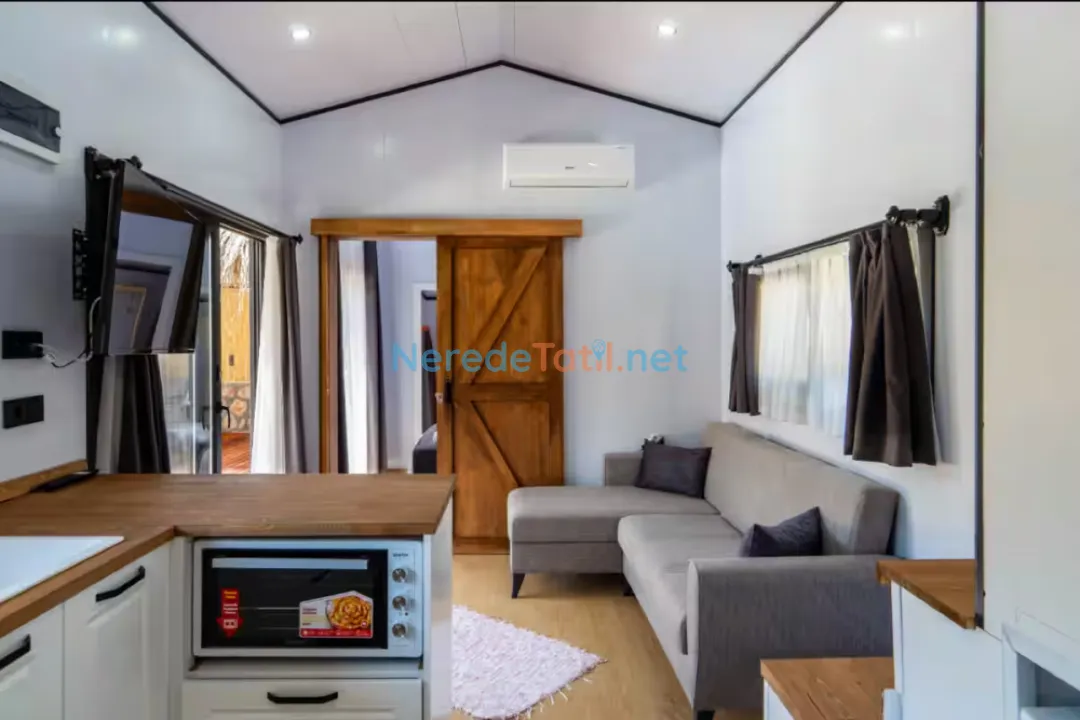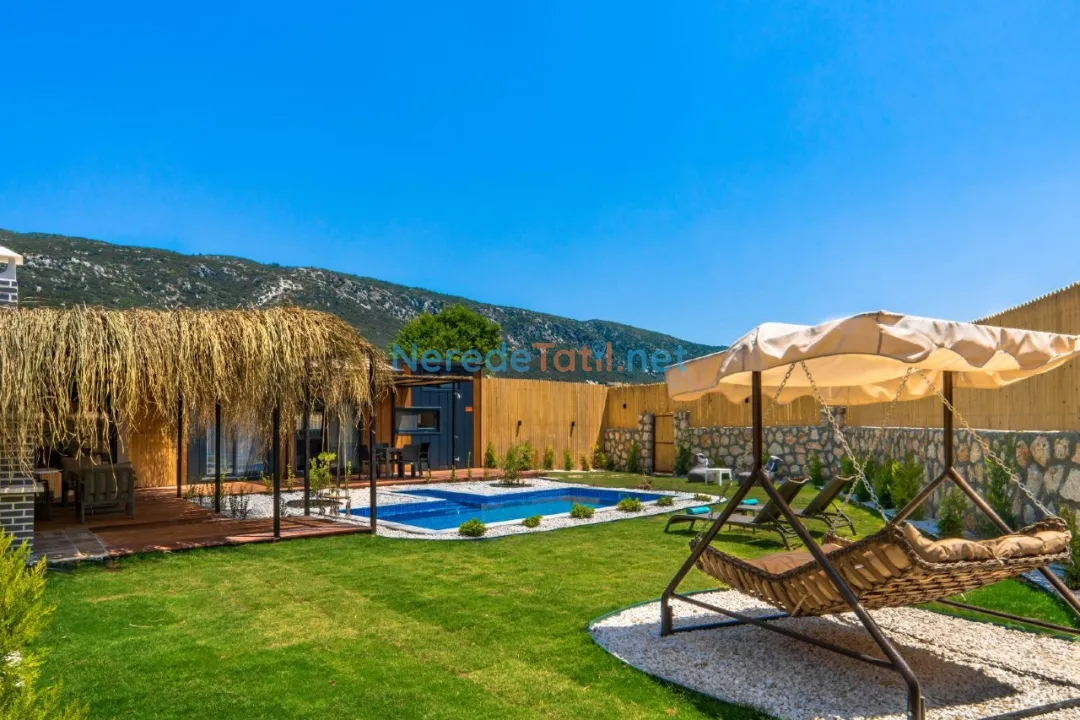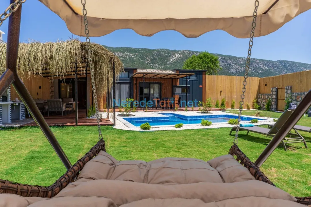 Geniş bir bahçe, BBQ - Mangal alanı, hammak ve mama sandalyesi gibi imkanlar ile tatilinizi daha konforlu hale getirebilirsiniz. Ayrıca villada, saç kurutma makinesi ve ütü gibi günlük ihtiyaçlarınızı karşılayacak ekipmanlar mevcuttur. Araçla yapılacak kısa bir yolculuk ile 3 kilometre mesafedeki market ve restoranlara ulaşabilirsiniz. Daha kapsamlı ihtiyaçlarınız için ise, 14 kilometre mesafedeki merkez sizleri bekliyor.
