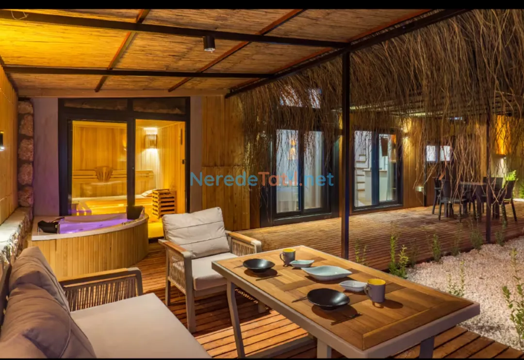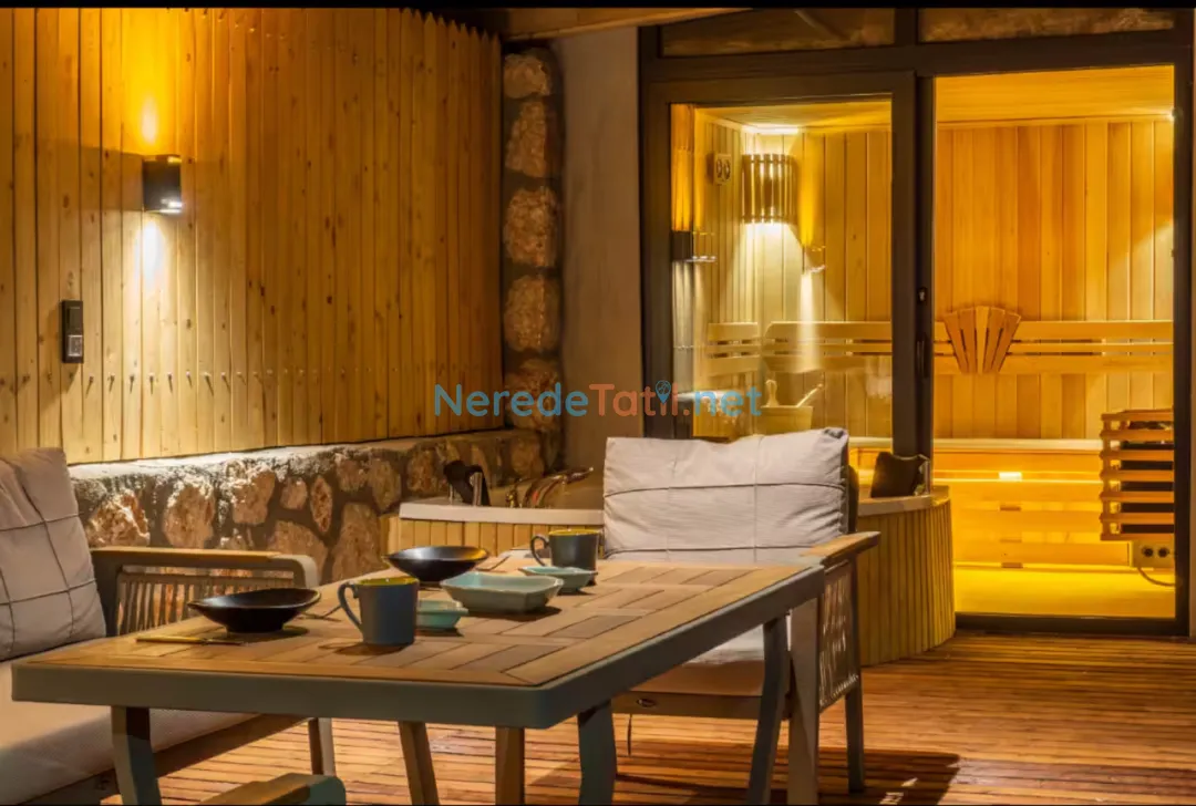 Gözlerden uzak, doğa ile iç içe özel bir tatil deneyimi arayanlar için Sarıbelen'de yer alan bu villa, balayı çiftleri ve lüks tatil arayışındaki misafirler için ideal bir seçenektir. Özel havuz ve korunaklı yapısı sayesinde mahremiyetinizi korurken, jakuzi ve sauna ile rahatlamanın keyfini çıkarabilirsiniz.