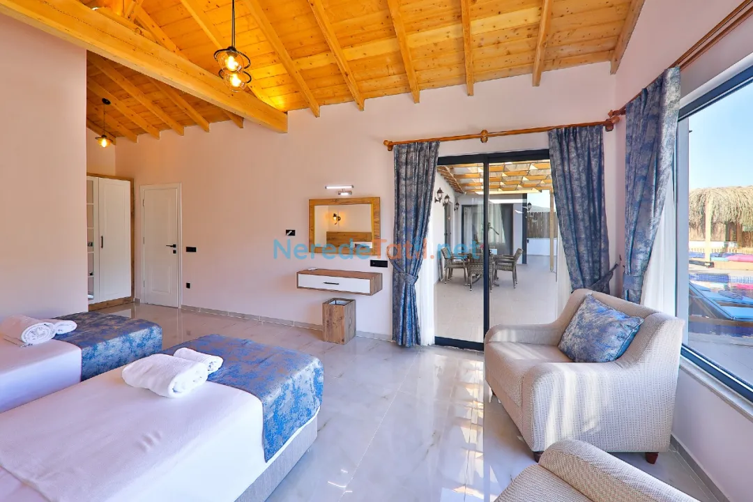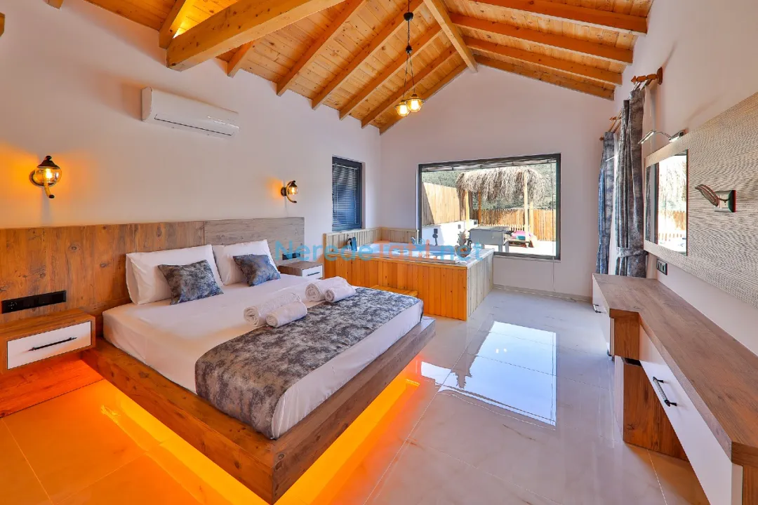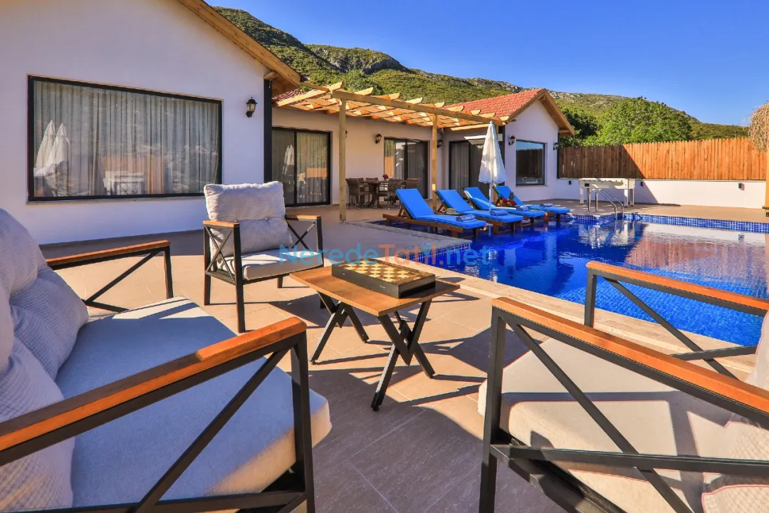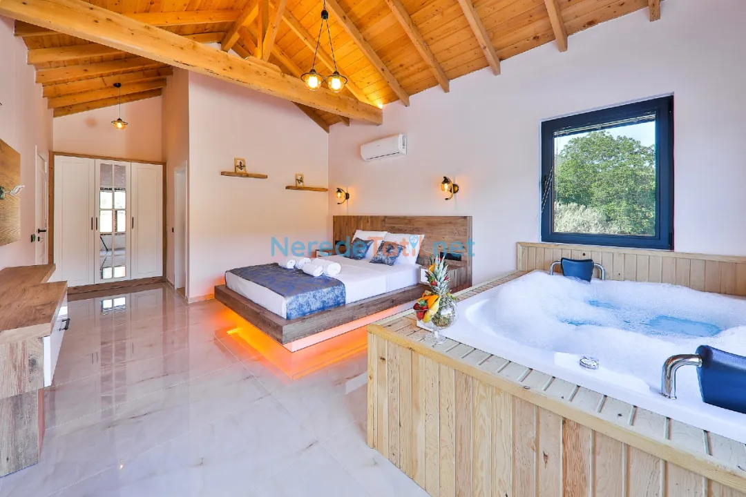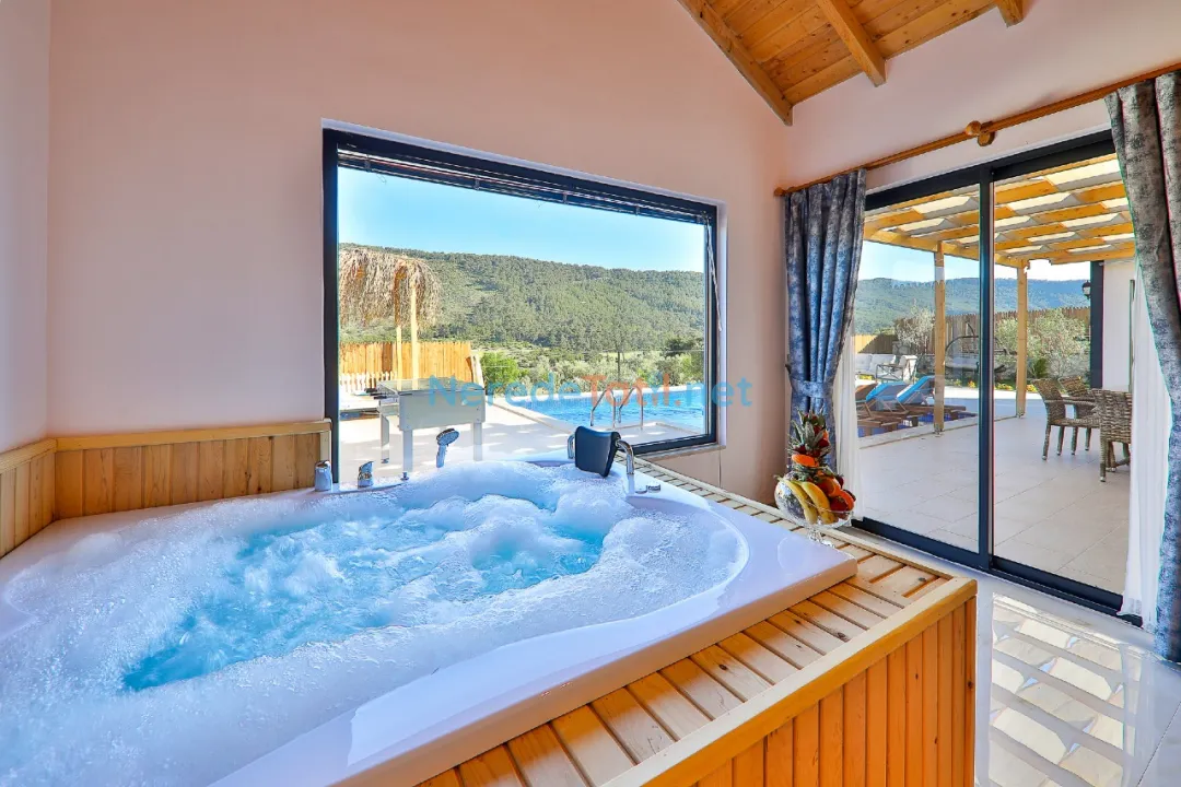 Villa, doğayla iç içe olmanın huzurunu sunarken, özel bir yüzme havuzu ile tatilinizi daha keyifli hale getiriyor. Havuz 4 metre genişliğinde, 8 metre uzunluğunda ve 1.55 metre derinliğinde olup, korunaklı yapısıyla mahremiyetinizi garanti altına alıyor. Jakuzi ise günün yorgunluğunu atmak için ideal bir ortam sağlıyor.