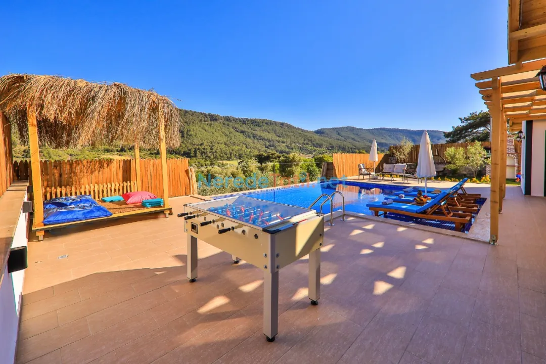 Villanın bahçesinde barbekü keyfi yapabileceğiniz bir BBQ alanı bulunuyor. Ayrıca, langırt ve oyun alanı gibi eğlenceli aktiviteler için de imkan sağlanmaktadır. Araçla gelen misafirler için otopark imkanı da sunulmaktadır. Doğa manzarası ve konforu bir arada sunan bu villada muhafazakar konuklar için huzurlu bir tatil mümkündür.