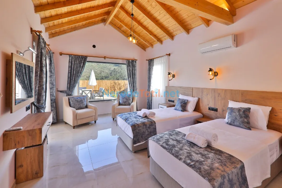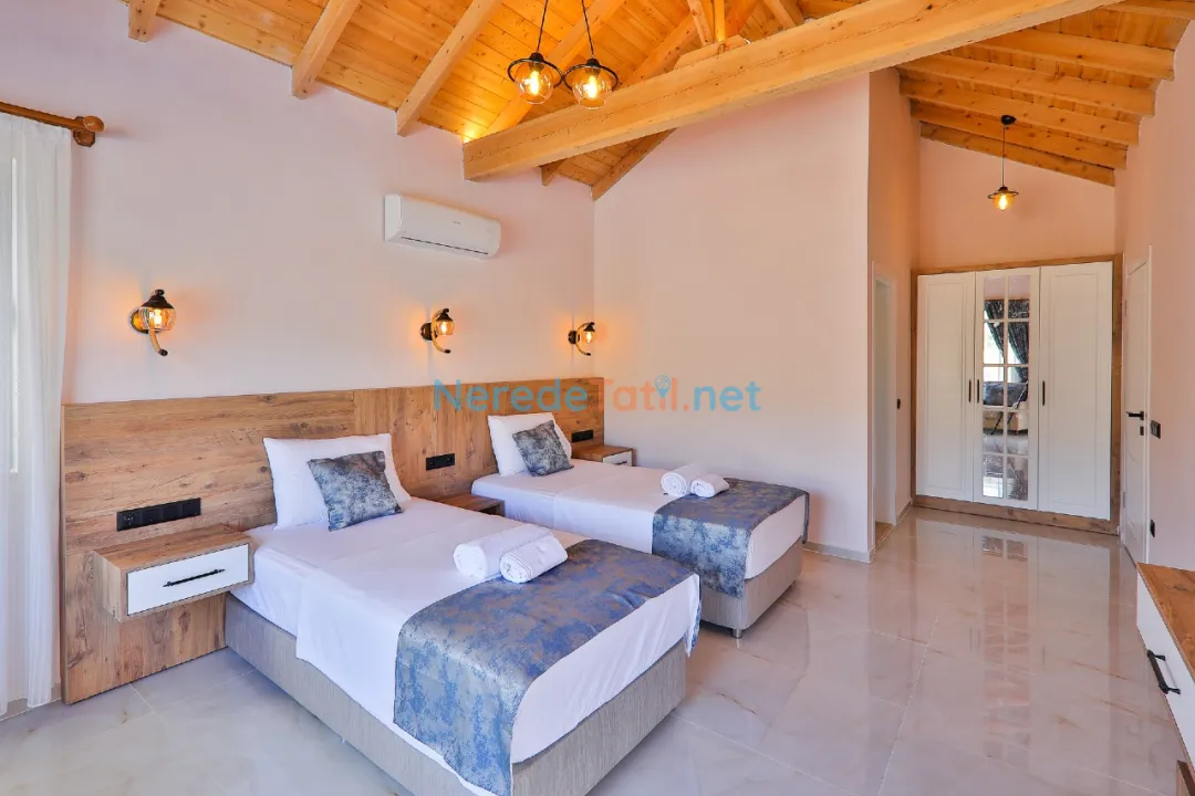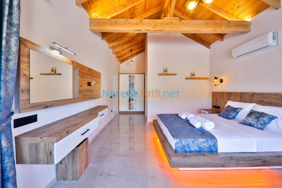 Hacıoğlan'ın eşsiz doğası içinde yer alan bu lüks villa, balayı çiftleri ve sakin bir tatil arayanlar için ideal bir kaçış noktası sunuyor. Villamız, toplam 4 kişilik konaklama kapasitesi ile rahat ve konforlu bir konaklama sağlıyor. İki yatak odası, bir çift kişilik yatak ve iki tek kişilik yatak ile donatılmıştır. Ayrıca, iki banyo ile konfor üst seviyede tutulmuştur.