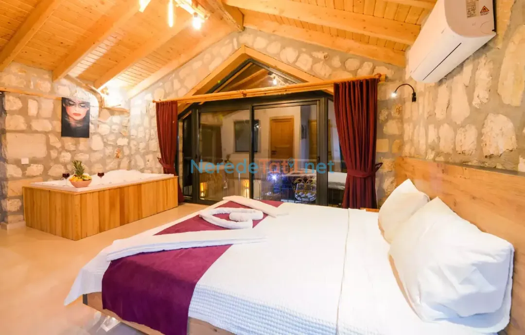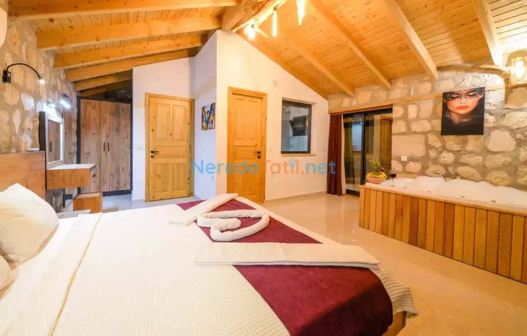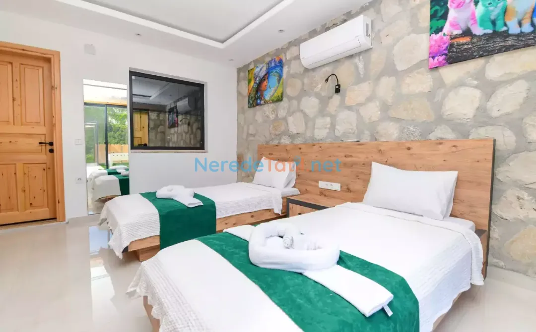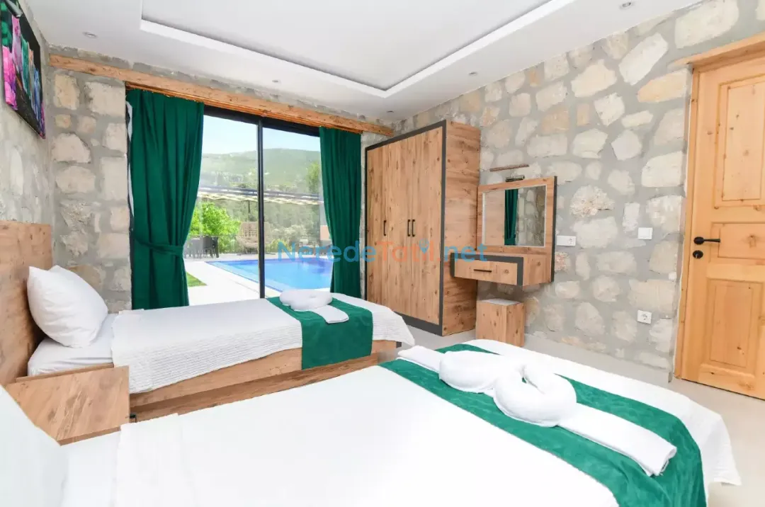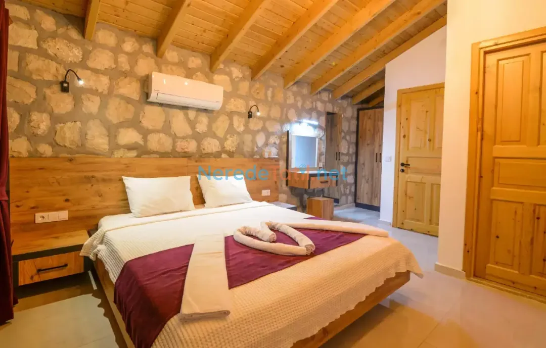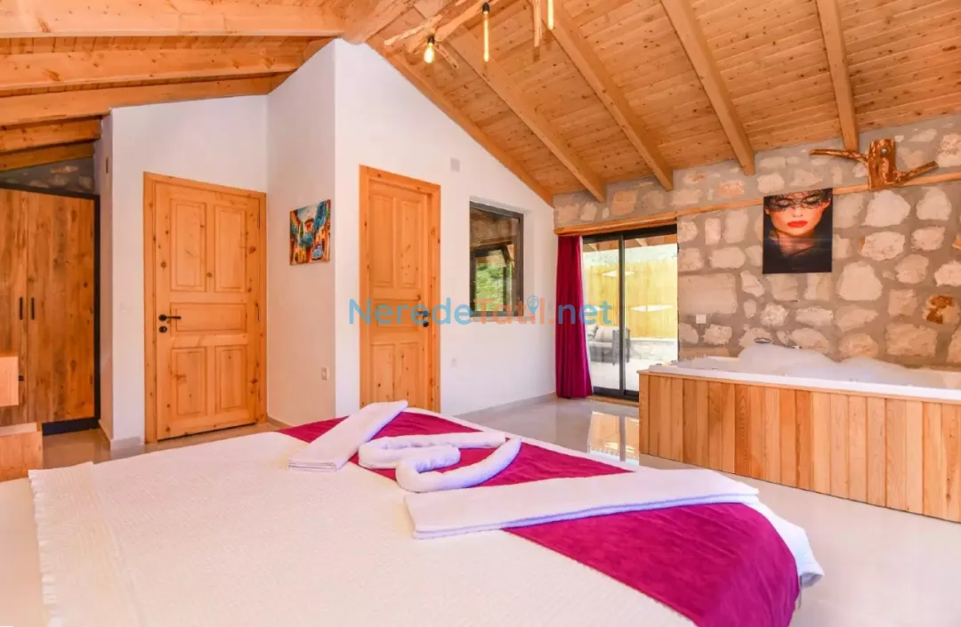 Sarıbelen'in huzur dolu atmosferinde, doğayla baş başa kalabileceğiniz bu lüks villa, tatilcilere eşsiz bir deneyim sunuyor. Toplam dört kişi kapasiteli olan bu villada, iki yatak odası ve iki banyo bulunmaktadır. Bir odada çift kişilik yatak, diğer odada ise iki tek kişilik yatak yer almakta ve konforunuz için her detay düşünülmüştür.