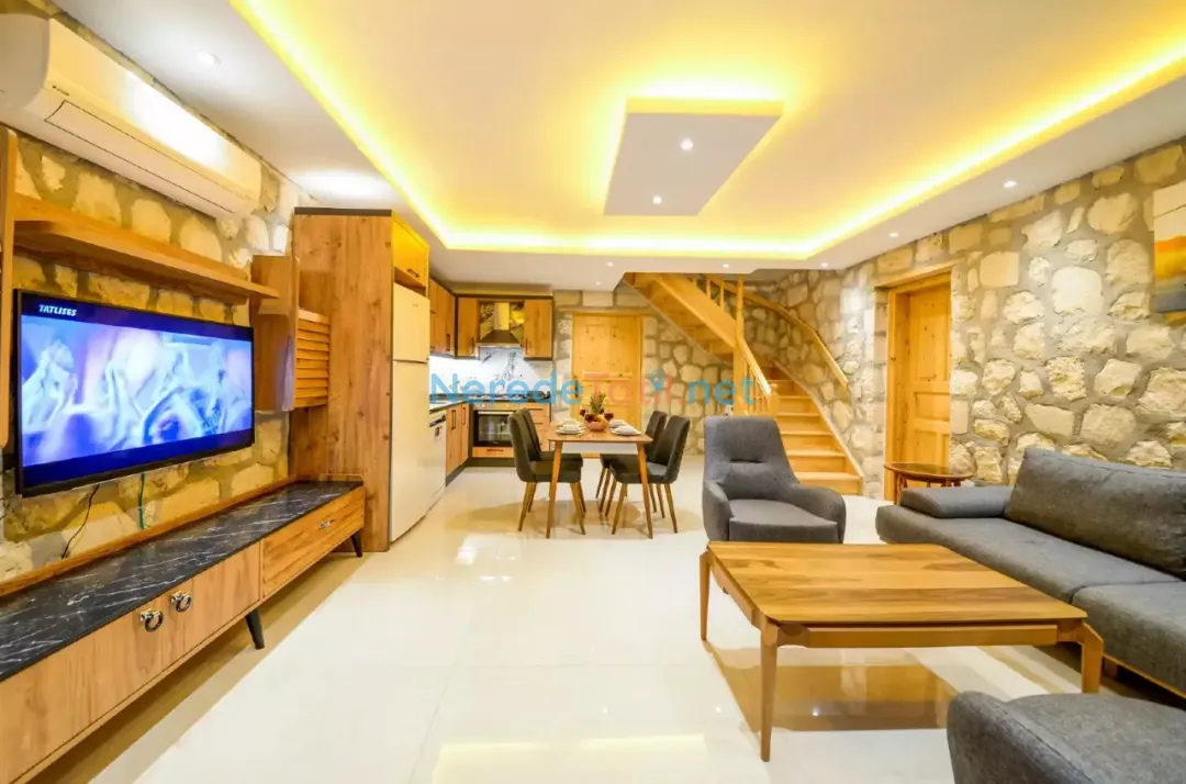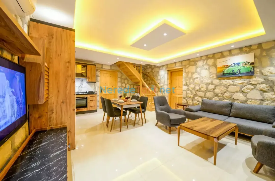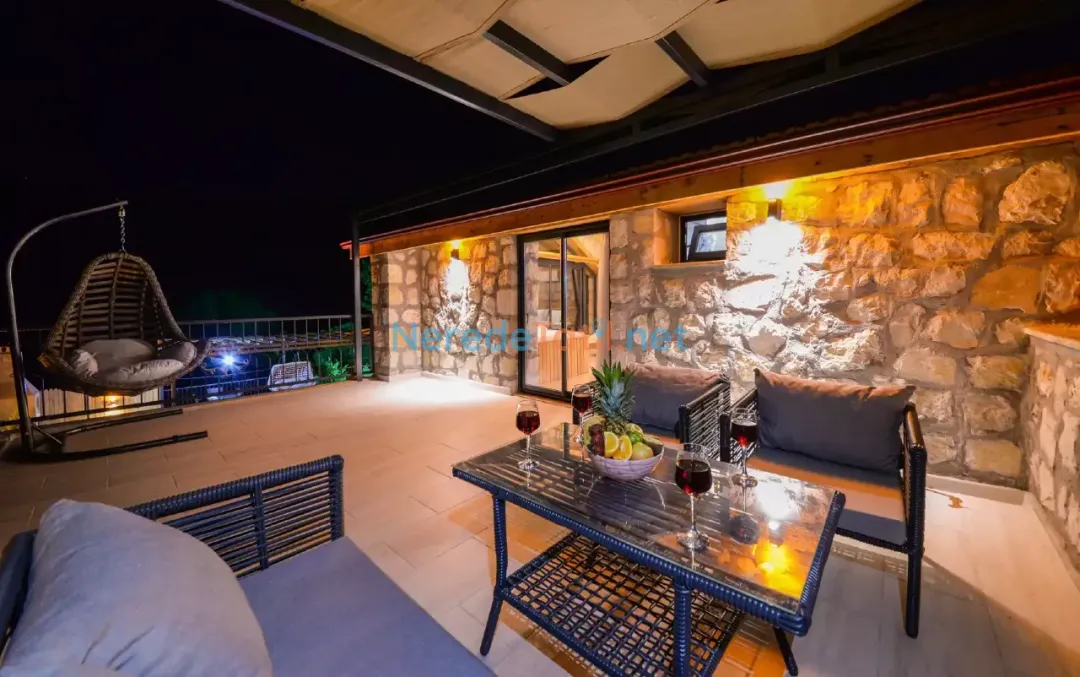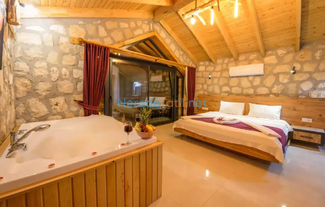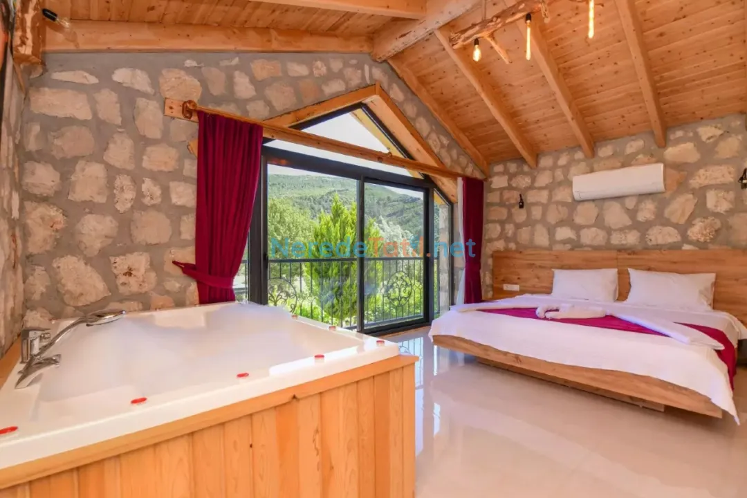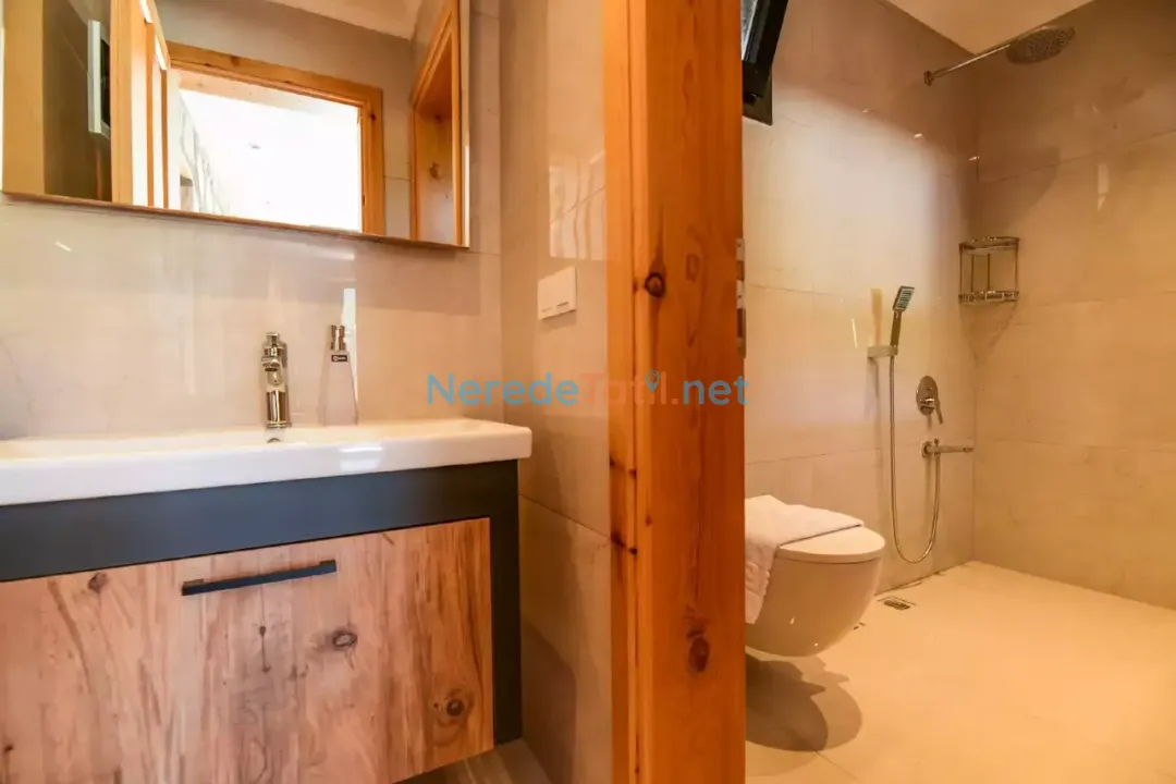 Sarıbelen'in huzur dolu atmosferinde, doğayla baş başa kalabileceğiniz bu lüks villa, tatilcilere eşsiz bir deneyim sunuyor. Toplam dört kişi kapasiteli olan bu villada, iki yatak odası ve iki banyo bulunmaktadır. Bir odada çift kişilik yatak, diğer odada ise iki tek kişilik yatak yer almakta ve konforunuz için her detay düşünülmüştür.