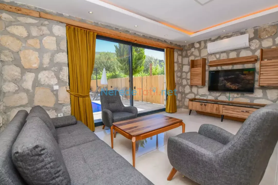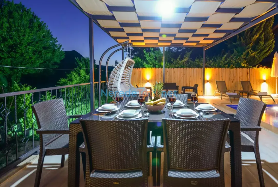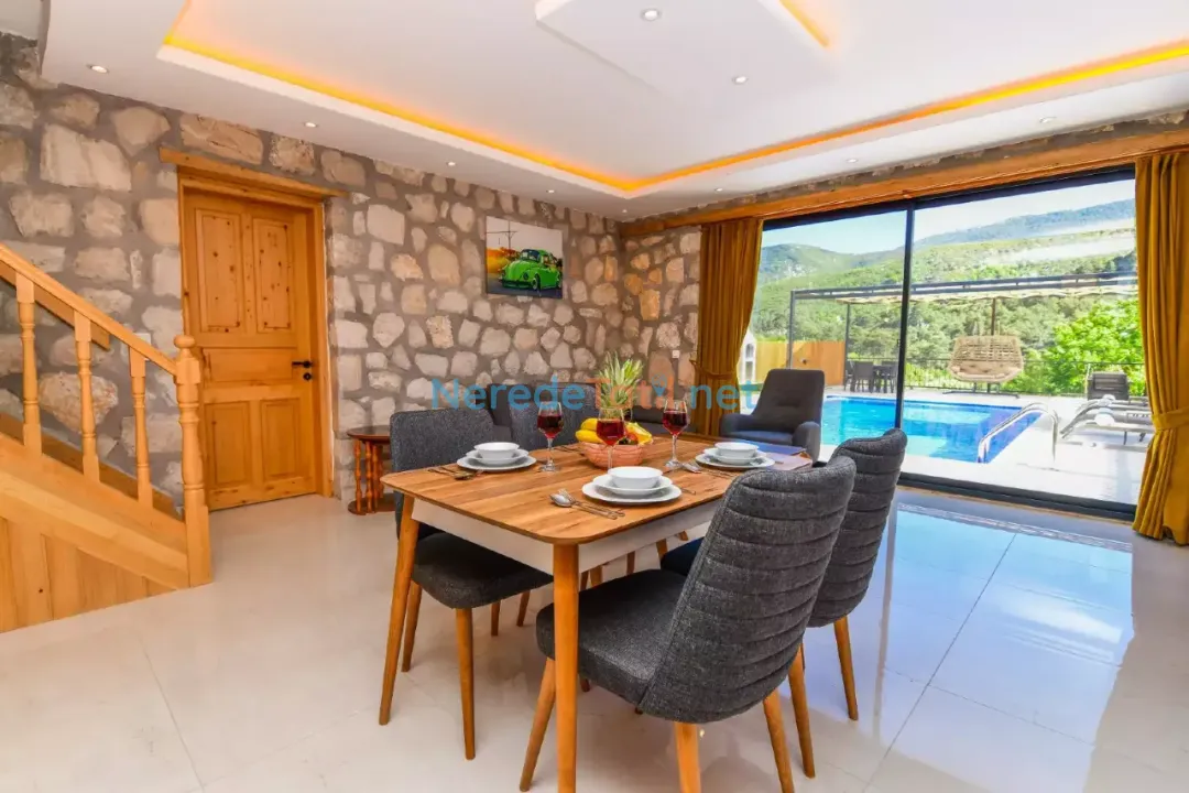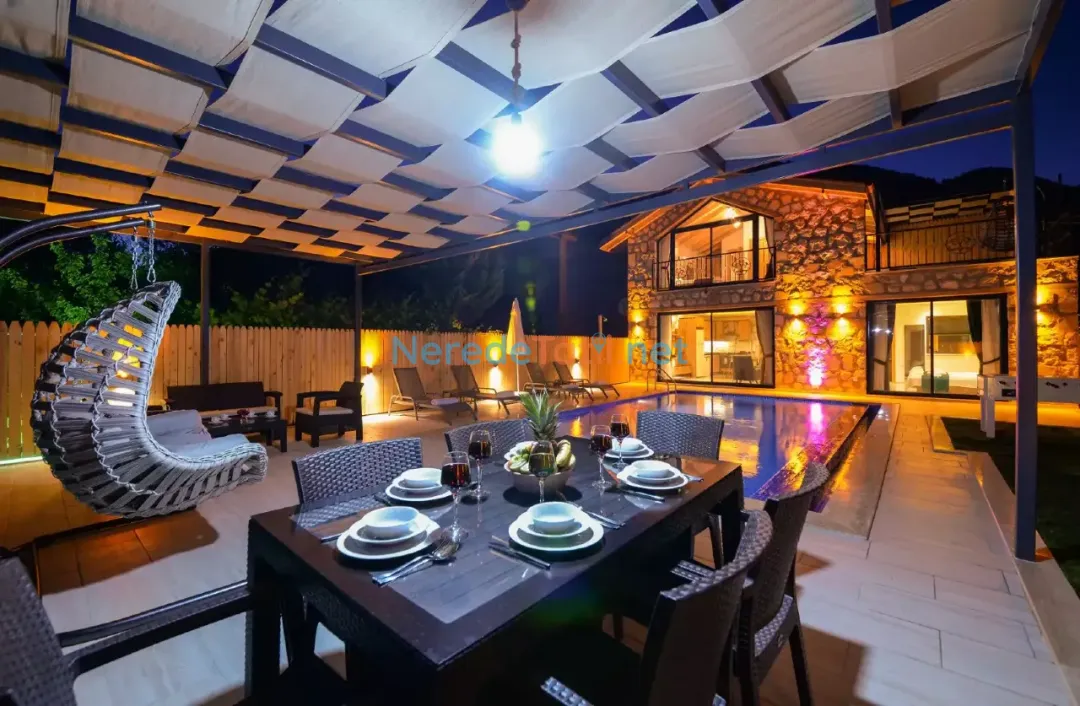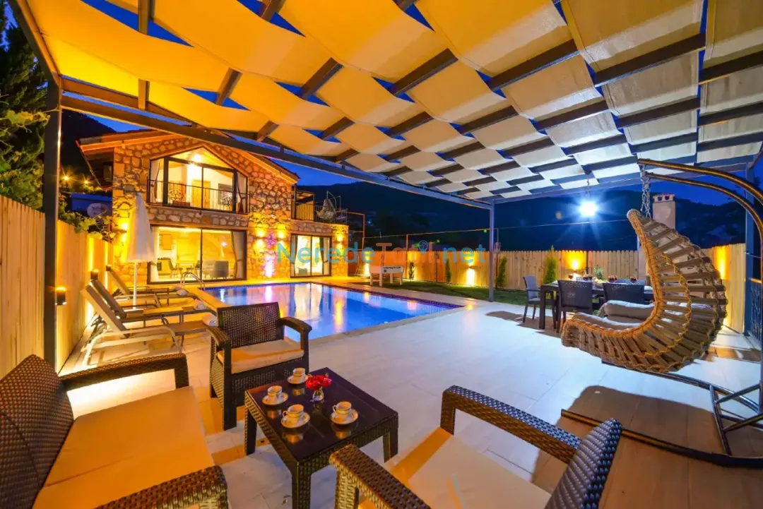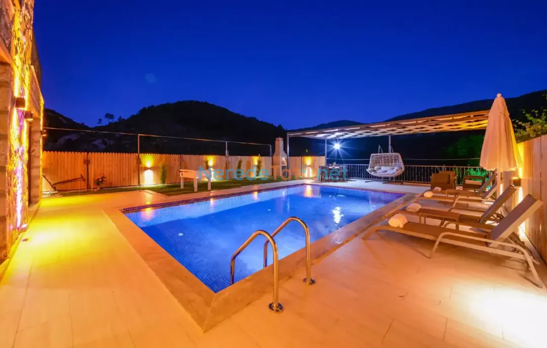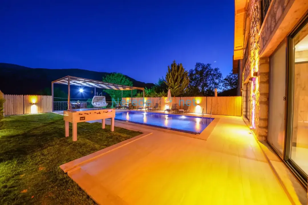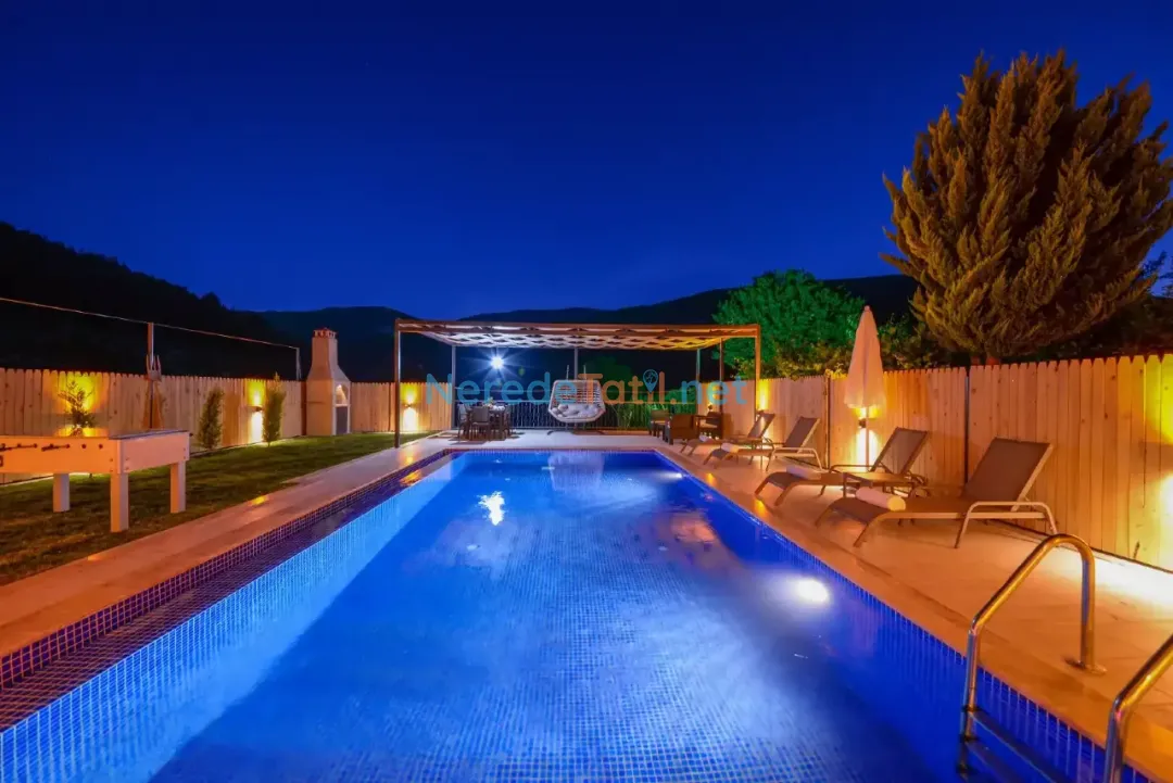 Villanın en dikkat çekici özelliği, özel yüzme havuzudur. Havuzun boyutları 8 metreye 4 metre olup, derinliği ise 1.5 metredir. Bu geniş havuzda gün boyu keyifli vakit geçirebilir, doğanın tadını çıkarabilirsiniz.