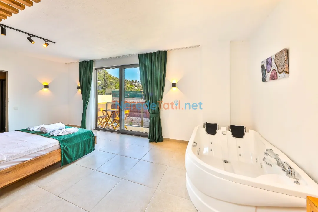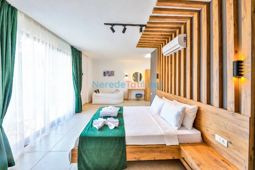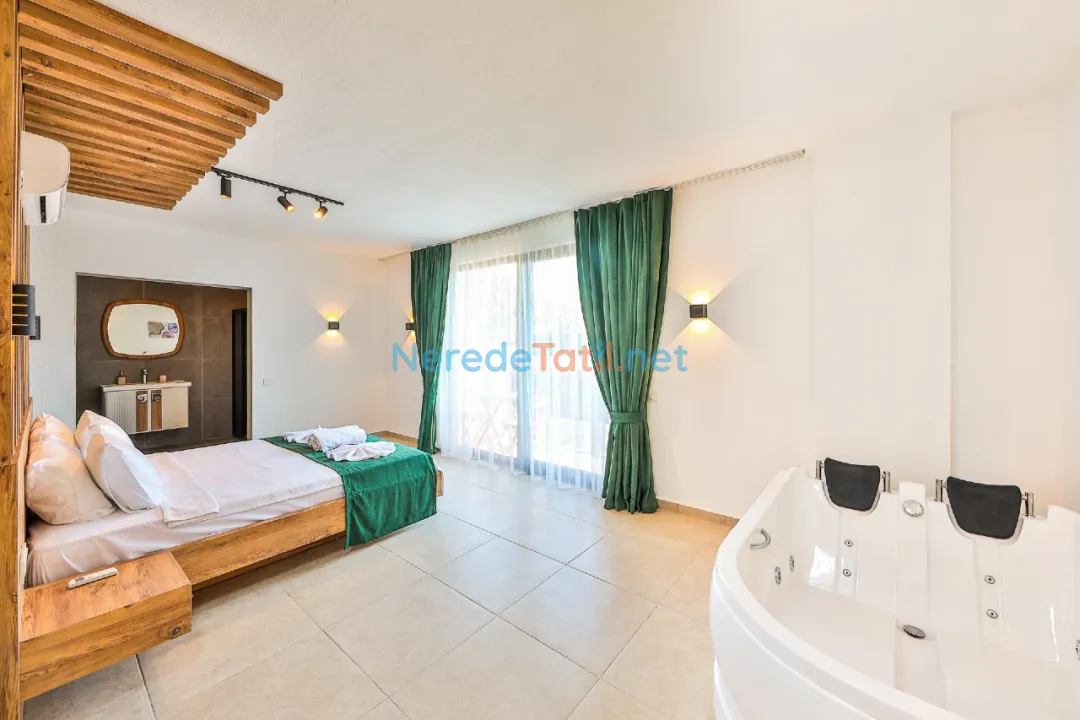 Villa, tek bir çift kişilik yatak odası ve bir banyo ile çiftler için konforlu bir alan sunarken, sakin ve huzurlu atmosferiyle dikkat çekiyor. Villanın iç tasarımı, konukların rahatlığı için özenle düşünülmüş olup, şehir merkezine olan 700 metre mesafesi ile de tatiliniz boyunca ihtiyacınız olan her şey elinizin altında olacak.