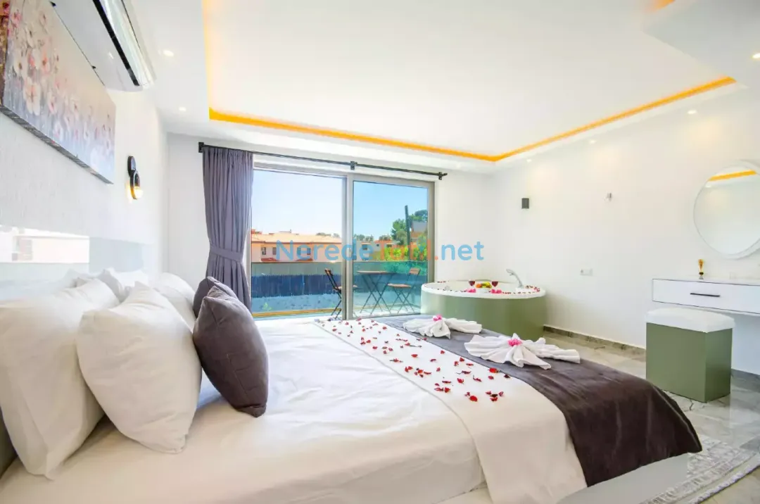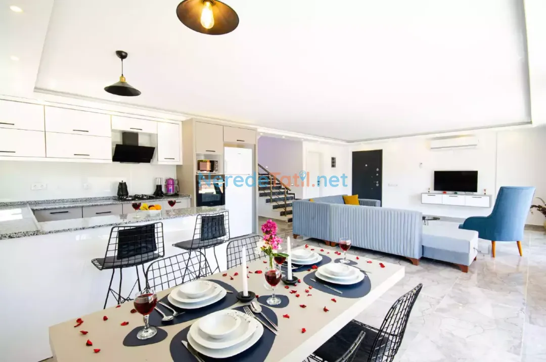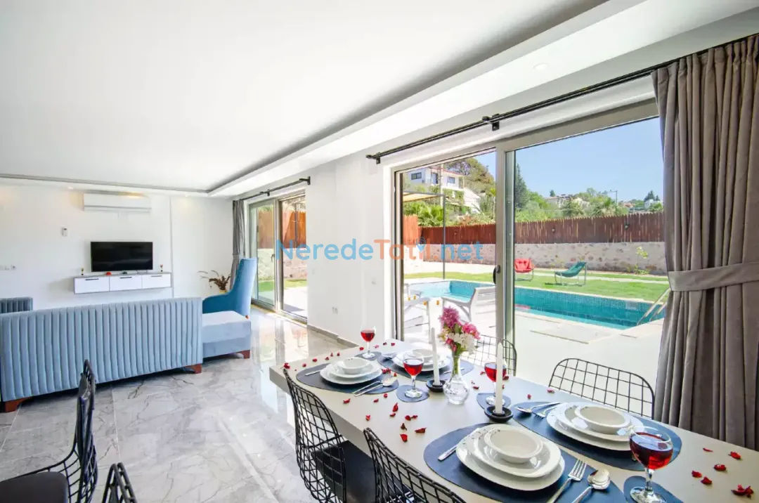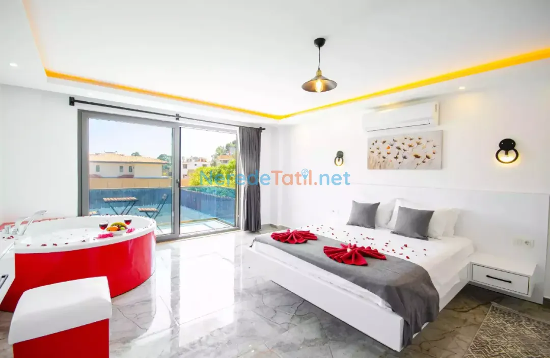 Merkezi konumda yer alan villa, market, restoran ve merkeze sadece 700 metre mesafededir. Plaja ise 2500 metre mesafede, kısa bir yolculukla ulaşabilirsiniz. Muhafazakar konseptte tatil arayanlar için ideal olan villamız balayı villaları kategorisinde de ön plana çıkmaktadır.