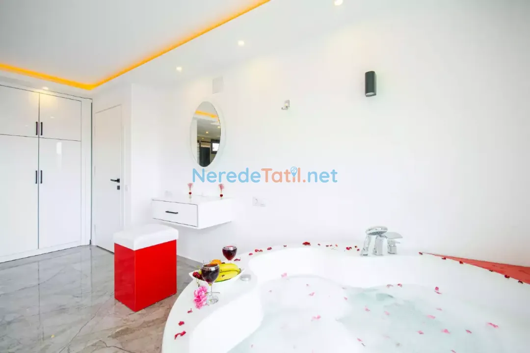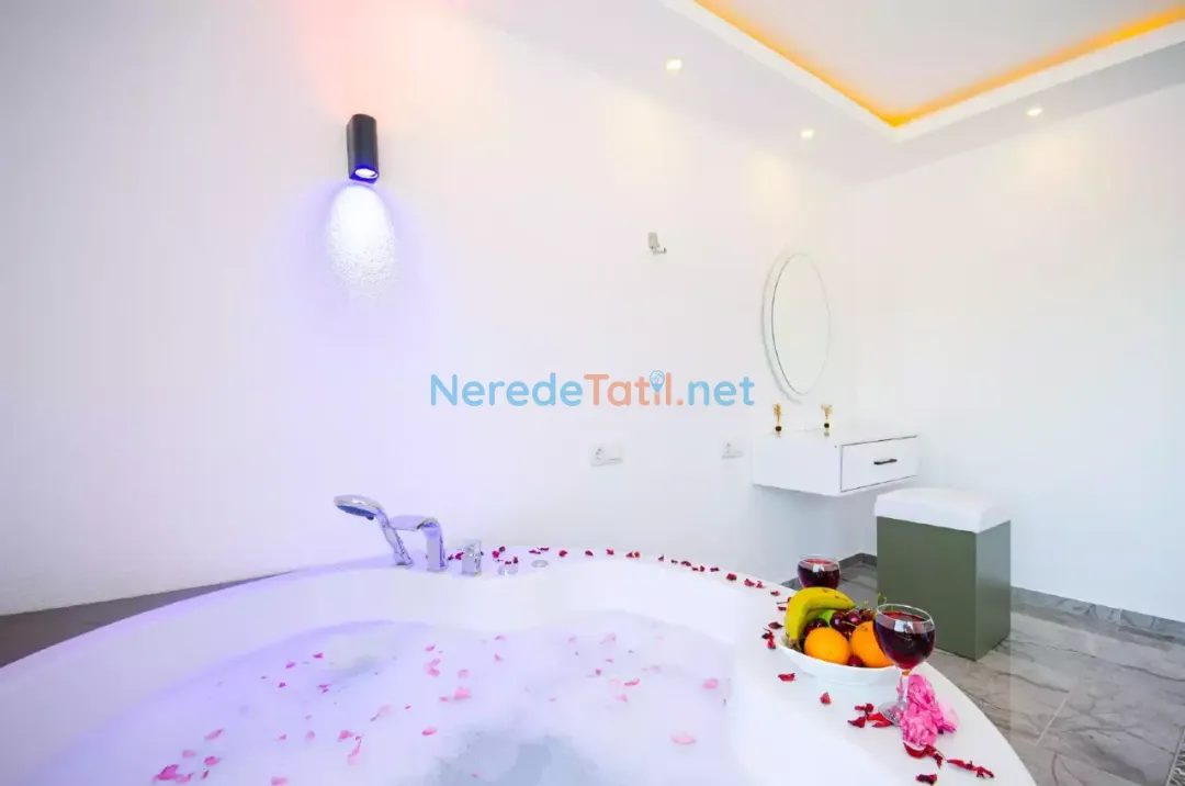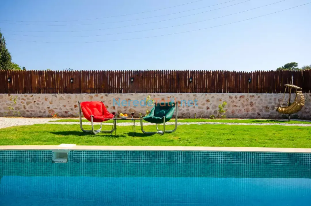Villanın 3.25 metre genişliğinde, 8.50 metre uzunluğunda ve 1.50 metre derinliğindeki korunaklı havuzunda serinleyebilir, doğa manzarası eşliğinde huzurlu anlar yaşayabilirsiniz. Ayrıca, villanın jakuzisi ile günün yorgunluğunu atabilirsiniz.