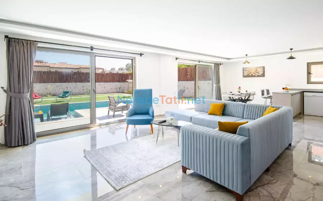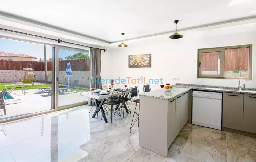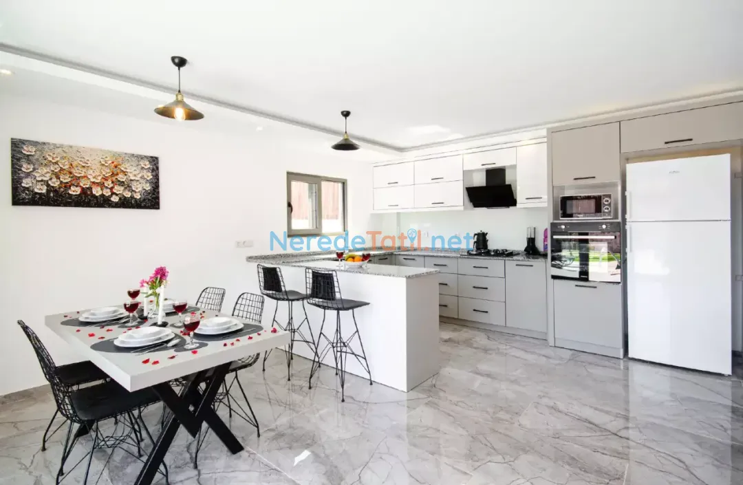 Otopark imkanı bulunan villanın bahçesinde, BBQ - Mangal keyfi yapabilir, sevdiklerinizle eşsiz lezzetler tadabilirsiniz. Villanın iç mekanında sağlanan saç kurutma makinesi ve ütü gibi olanaklar, tatiliniz boyunca ihtiyaç duyabileceğiniz her şeyi düşünülmüştür.