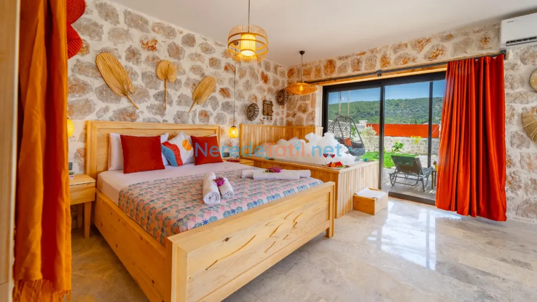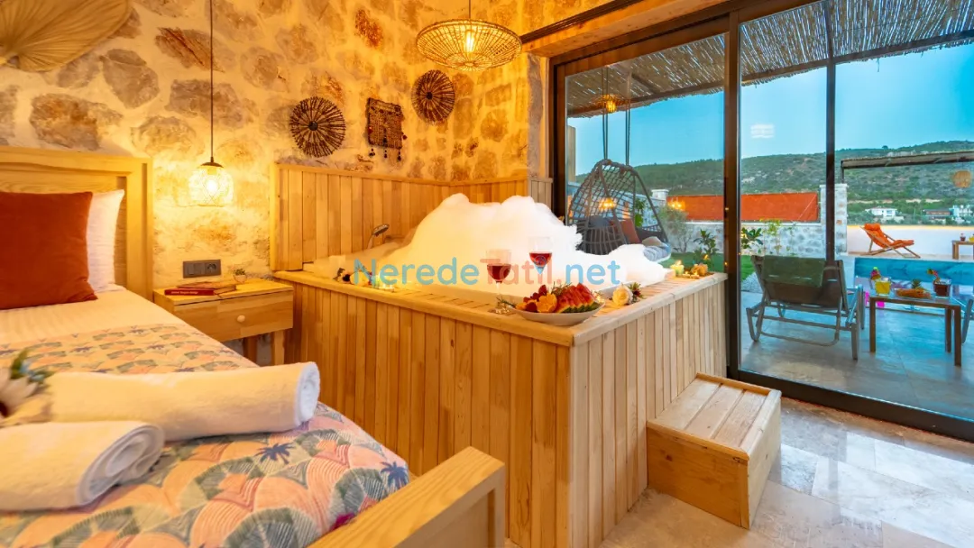 Patara'nın muhteşem doğasında yer alan bu villa, iki kişilik konaklama kapasitesi sunarak romantik bir kaçış arayan çiftler için idealdir. Villamızda bir adet geniş çift kişilik yatak ve konforlu bir banyo bulunmaktadır.