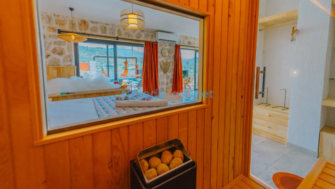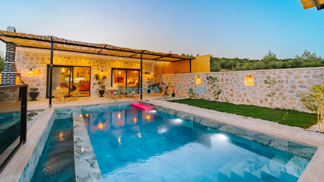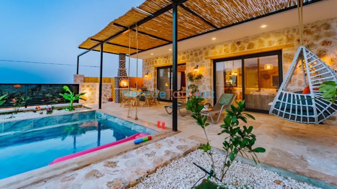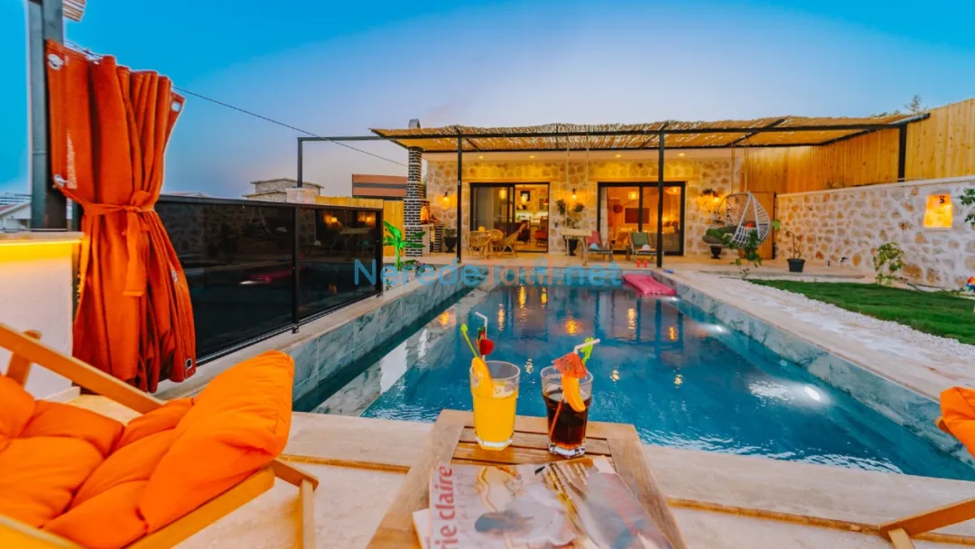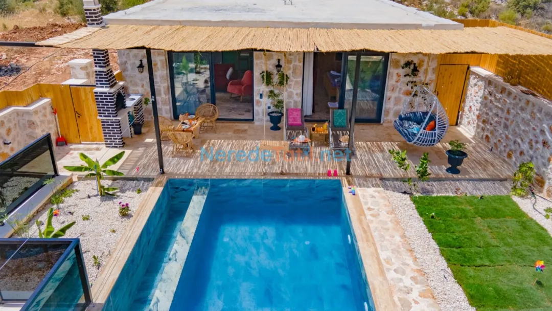 Muhteşem bir deniz manzarası eşliğinde tatil yapabileceğiniz villamız, özel havuzu ile misafirlerine eşsiz bir yüzme deneyimi sunar. Havuzun boyutları 7 metreye 3 metre olup, derinliği ise 1.4 metredir. Korunaklı havuz yapısı, mahremiyetine önem veren misafirlerimiz için tasarlanmıştır. Ayrıca, villada bulunan jakuzi ve sauna, tatilinizi daha da konforlu hale getirmektedir.