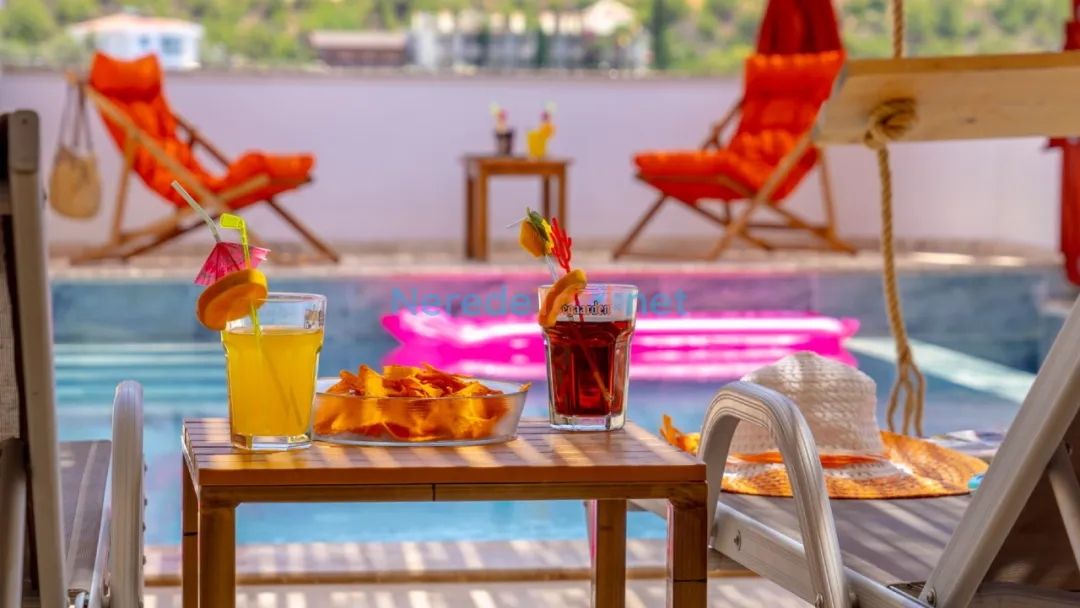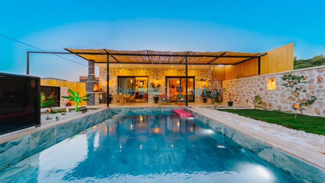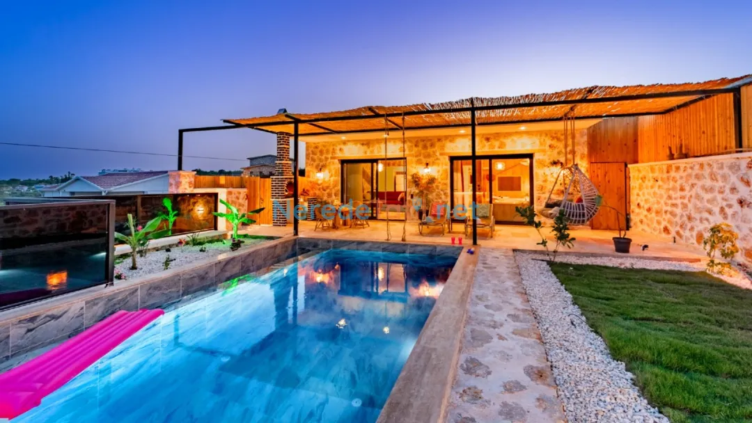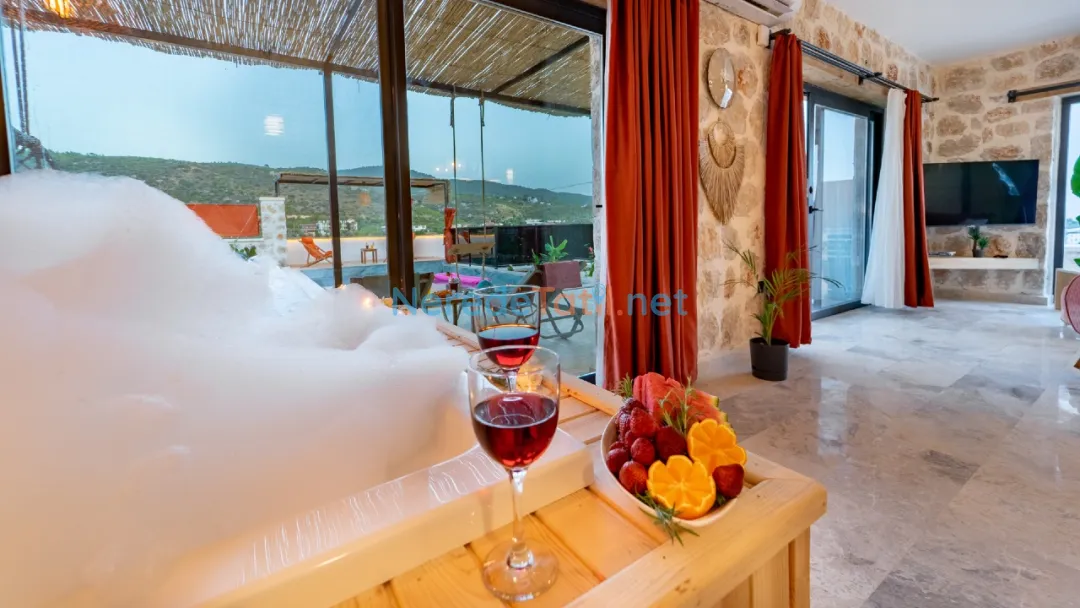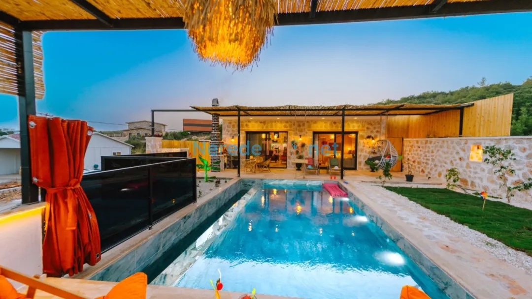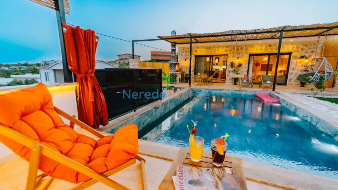Muhteşem bir deniz manzarası eşliğinde tatil yapabileceğiniz villamız, özel havuzu ile misafirlerine eşsiz bir yüzme deneyimi sunar. Havuzun boyutları 7 metreye 3 metre olup, derinliği ise 1.4 metredir. Korunaklı havuz yapısı, mahremiyetine önem veren misafirlerimiz için tasarlanmıştır. Ayrıca, villada bulunan jakuzi ve sauna, tatilinizi daha da konforlu hale getirmektedir.