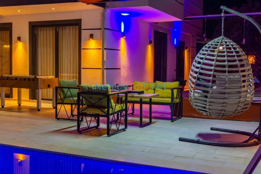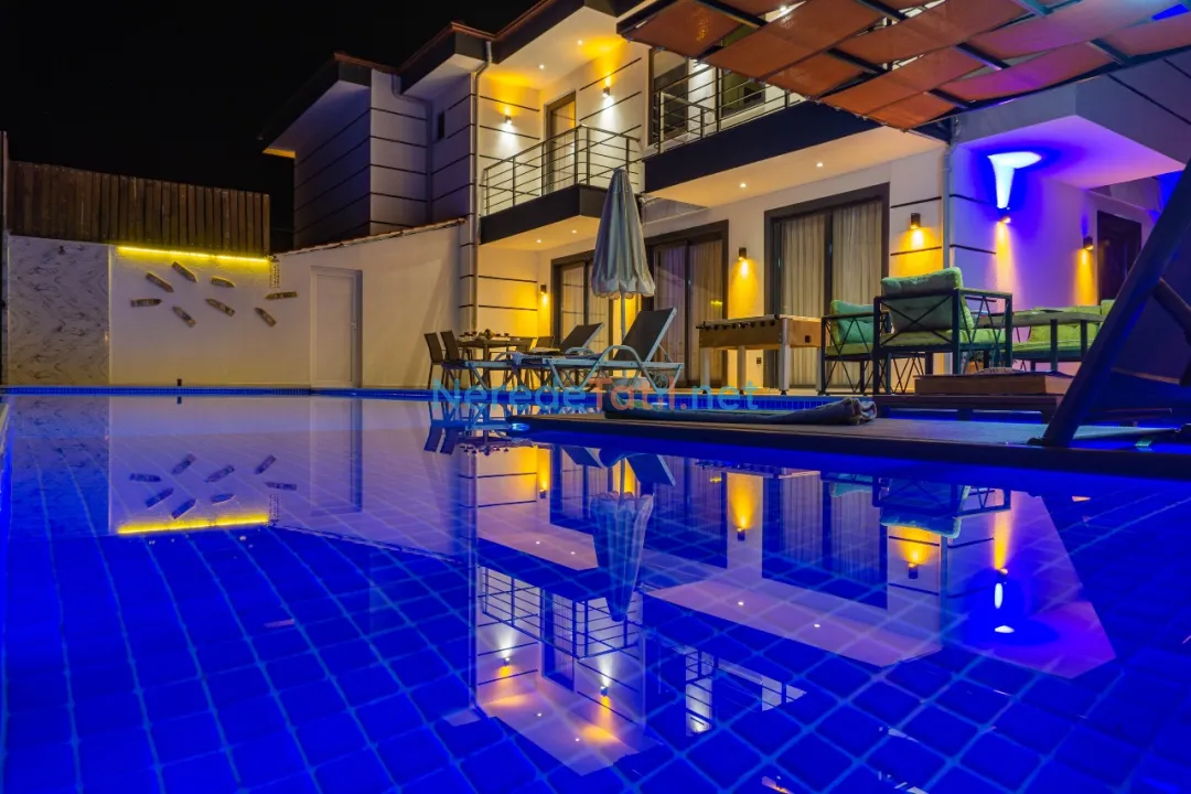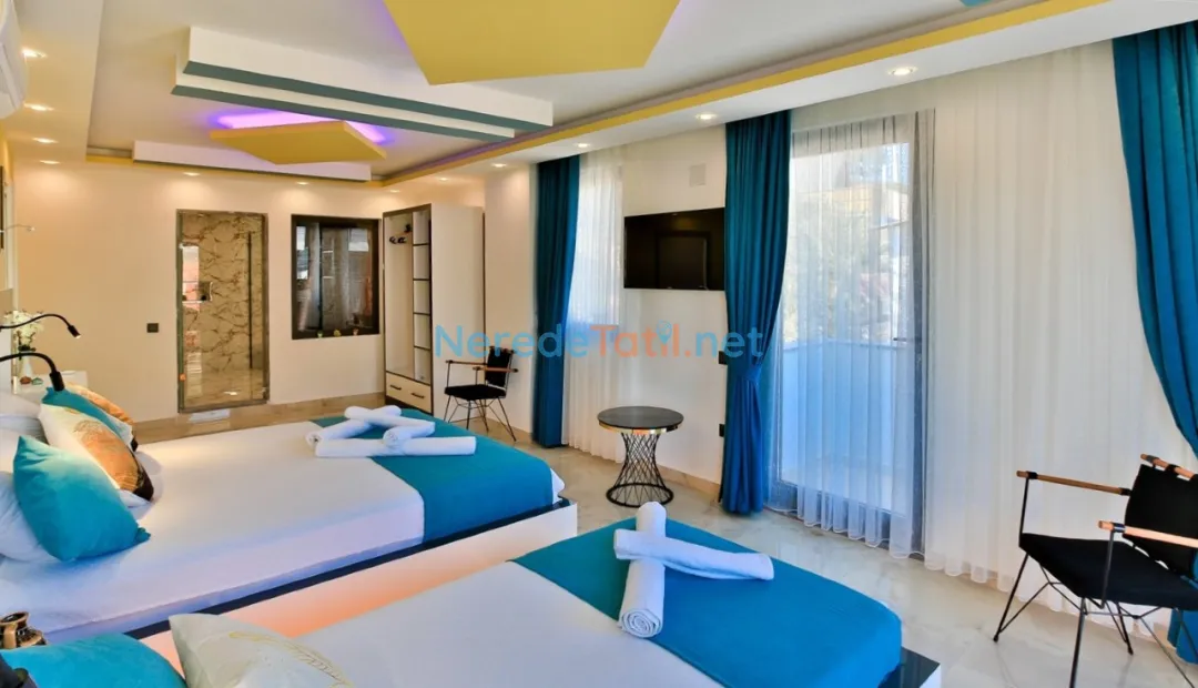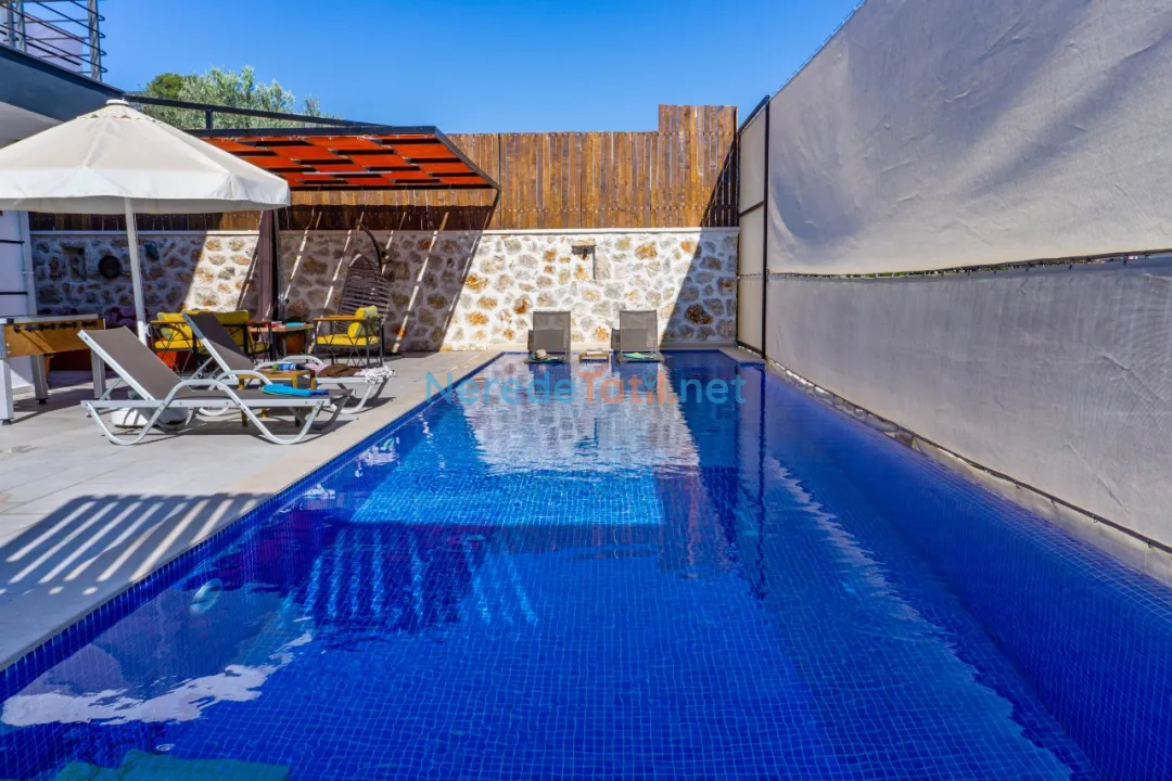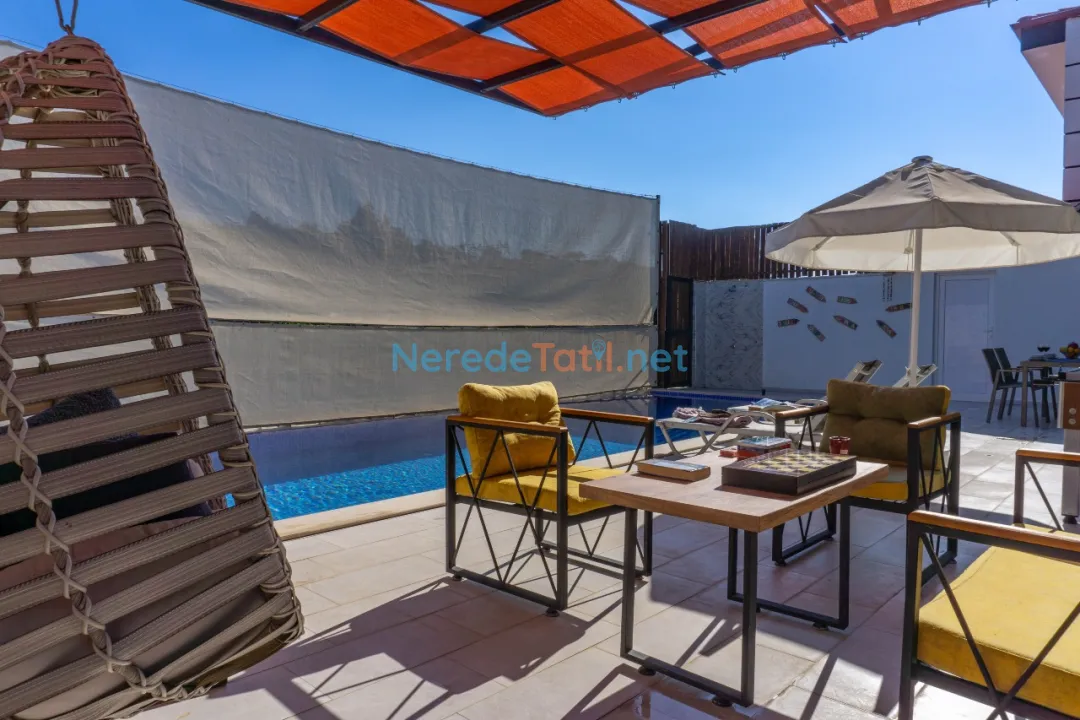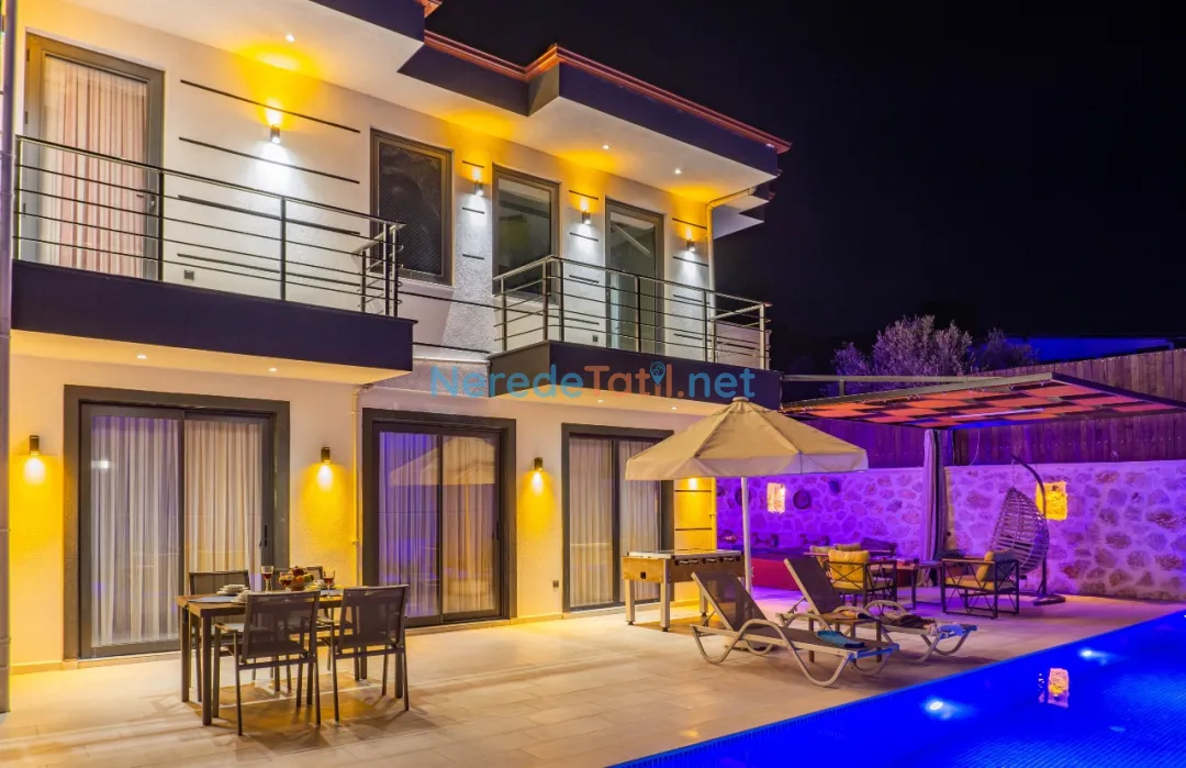 Patara'nın doğal güzellikleri arasında yer alan bu lüks villa, özel yüzme havuzu ve çocuk havuzuyla size ve ailenize rahat bir tatil sunmaktadır. Villamızda toplam iki yatak odası ve iki banyo bulunmakta olup, 4 kişilik konaklama kapasitesine sahiptir. Çift kişilik bir yatak ve iki tek kişilik yatak sayesinde konforlu bir uyku deneyimi yaşayabilirsiniz.