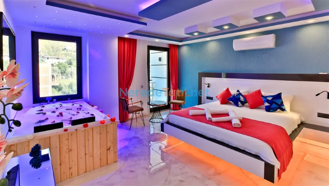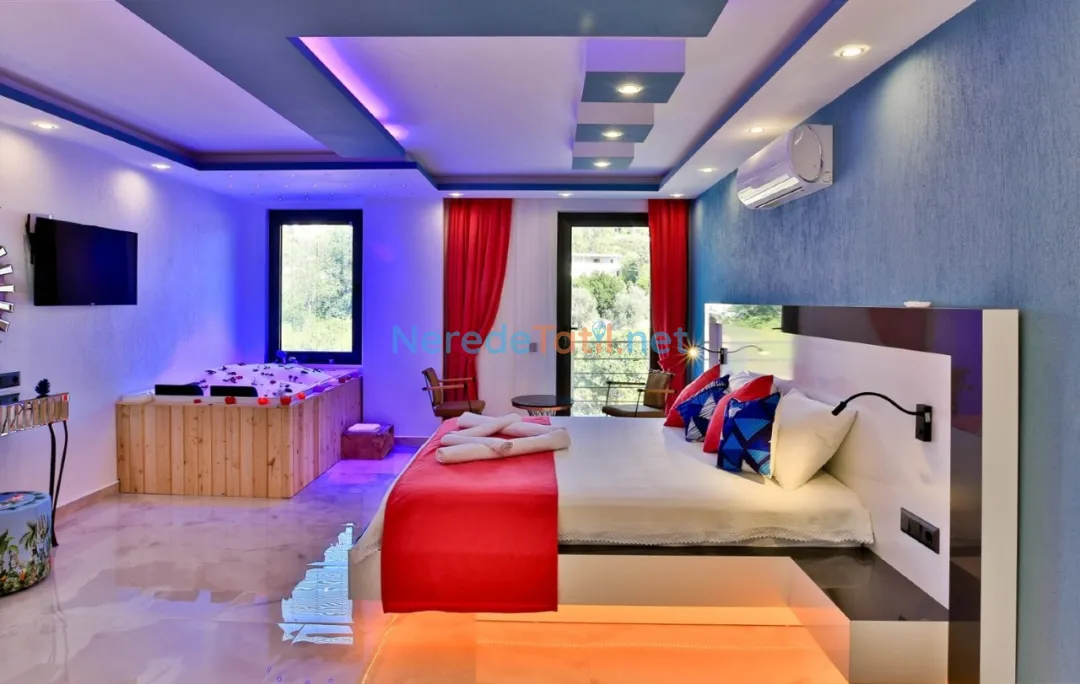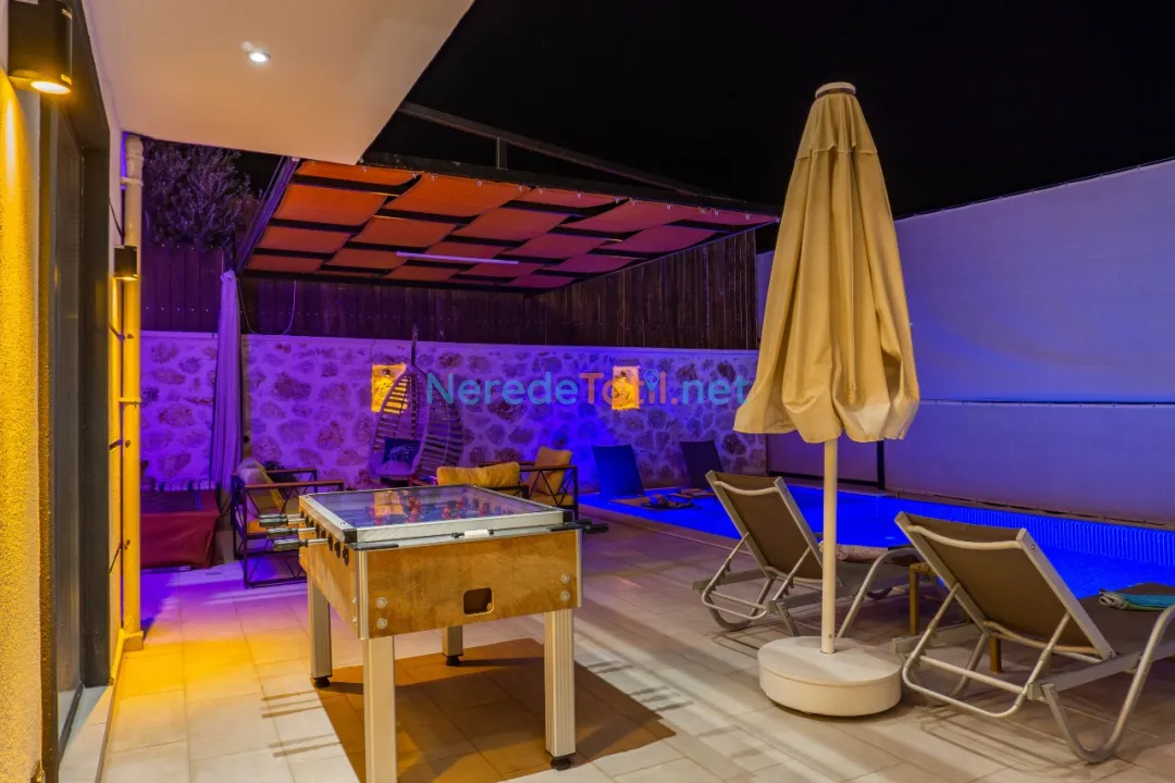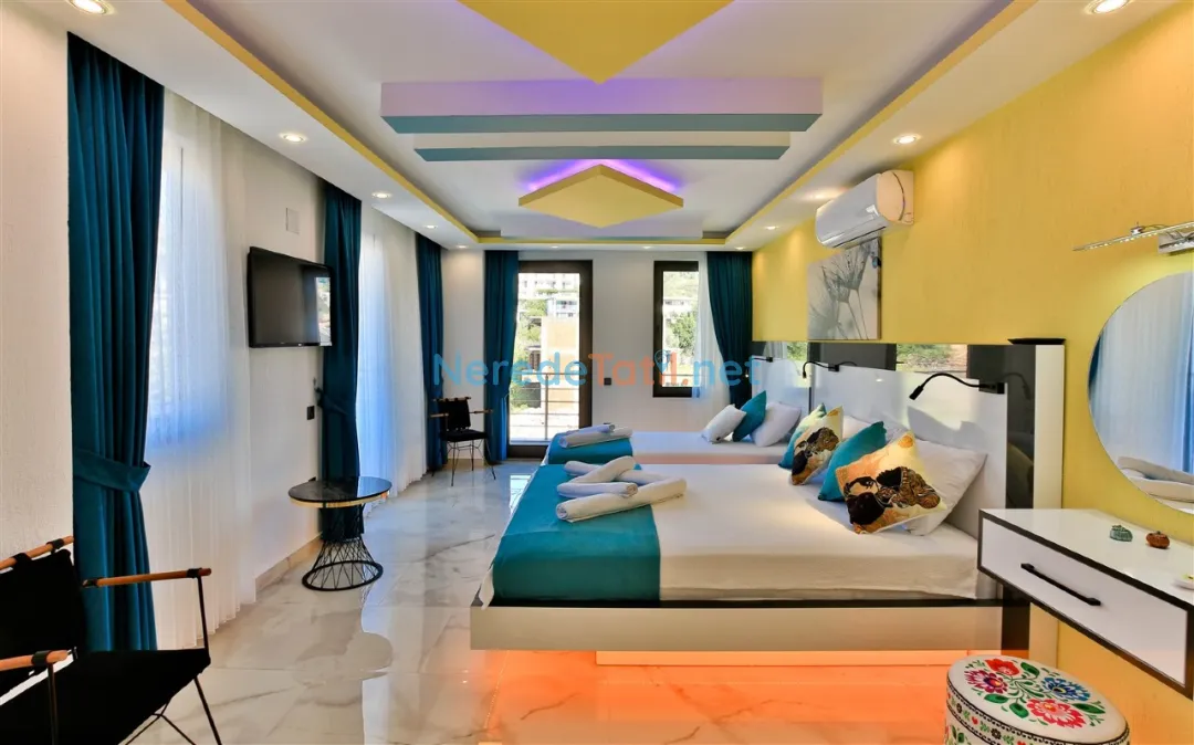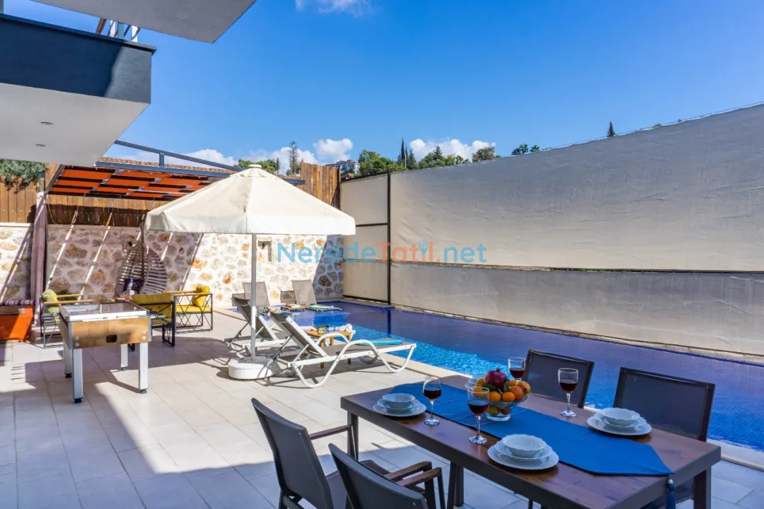 Patara'nın doğal güzellikleri arasında yer alan bu lüks villa, özel yüzme havuzu ve çocuk havuzuyla size ve ailenize rahat bir tatil sunmaktadır. Villamızda toplam iki yatak odası ve iki banyo bulunmakta olup, 4 kişilik konaklama kapasitesine sahiptir. Çift kişilik bir yatak ve iki tek kişilik yatak sayesinde konforlu bir uyku deneyimi yaşayabilirsiniz.