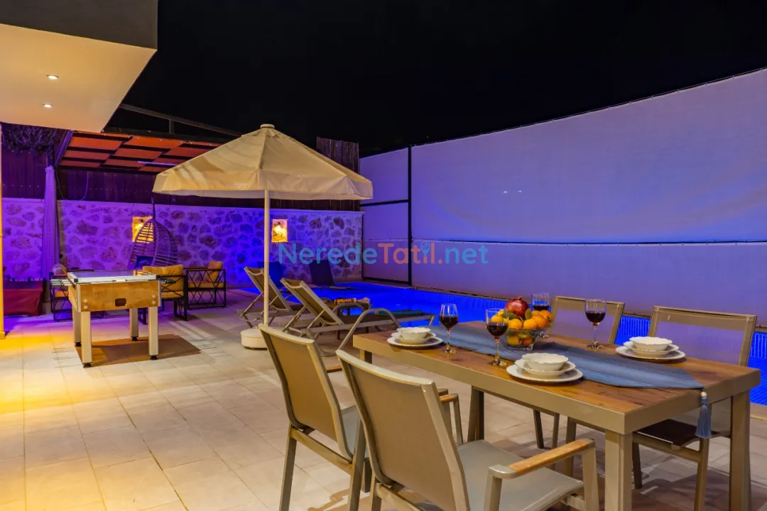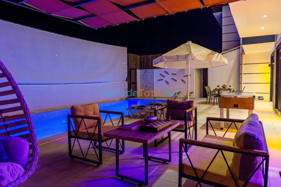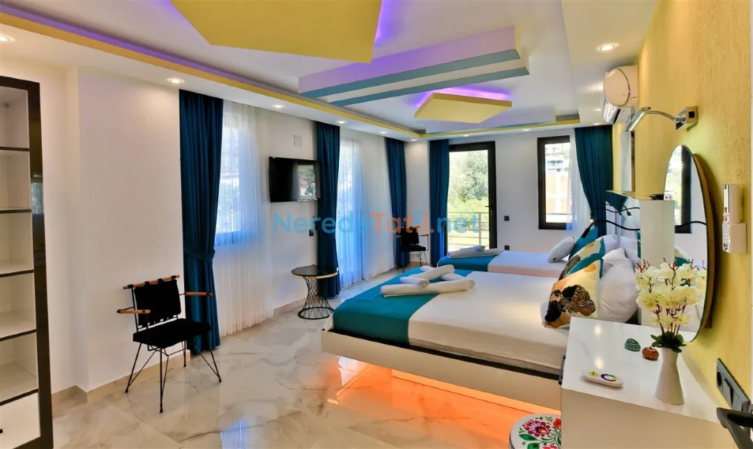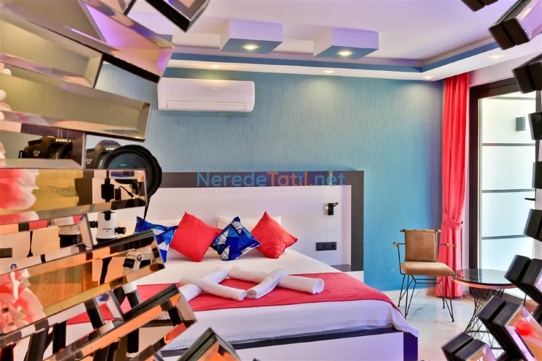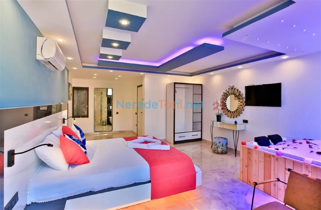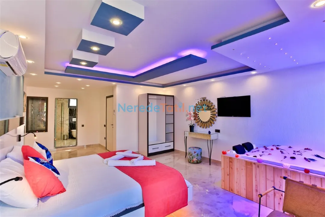 Patara'nın doğal güzellikleri arasında yer alan bu lüks villa, özel yüzme havuzu ve çocuk havuzuyla size ve ailenize rahat bir tatil sunmaktadır. Villamızda toplam iki yatak odası ve iki banyo bulunmakta olup, 4 kişilik konaklama kapasitesine sahiptir. Çift kişilik bir yatak ve iki tek kişilik yatak sayesinde konforlu bir uyku deneyimi yaşayabilirsiniz.