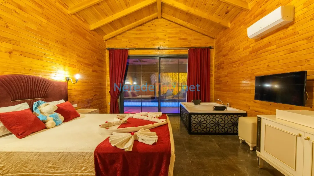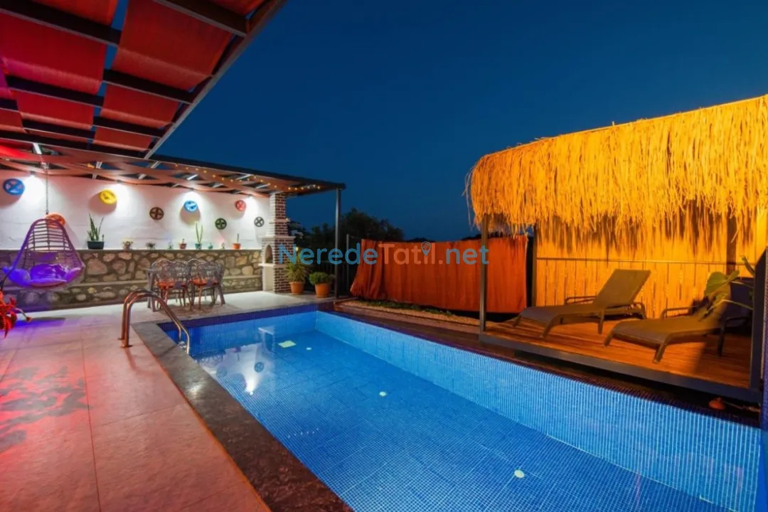 Kördere'nin muhteşem doğasında yer alan bu villa, çiftler için özel tasarlanmıştır. Özel yüzme havuzu ile huzurlu bir tatil sunan bu villa, doğanın kalbinde unutulmaz bir deneyim yaşatıyor. 3 metre genişliğinde ve 7 metre uzunluğundaki havuz, çiftlerin rahatı ve konforu için ideal bir boyuttadır.