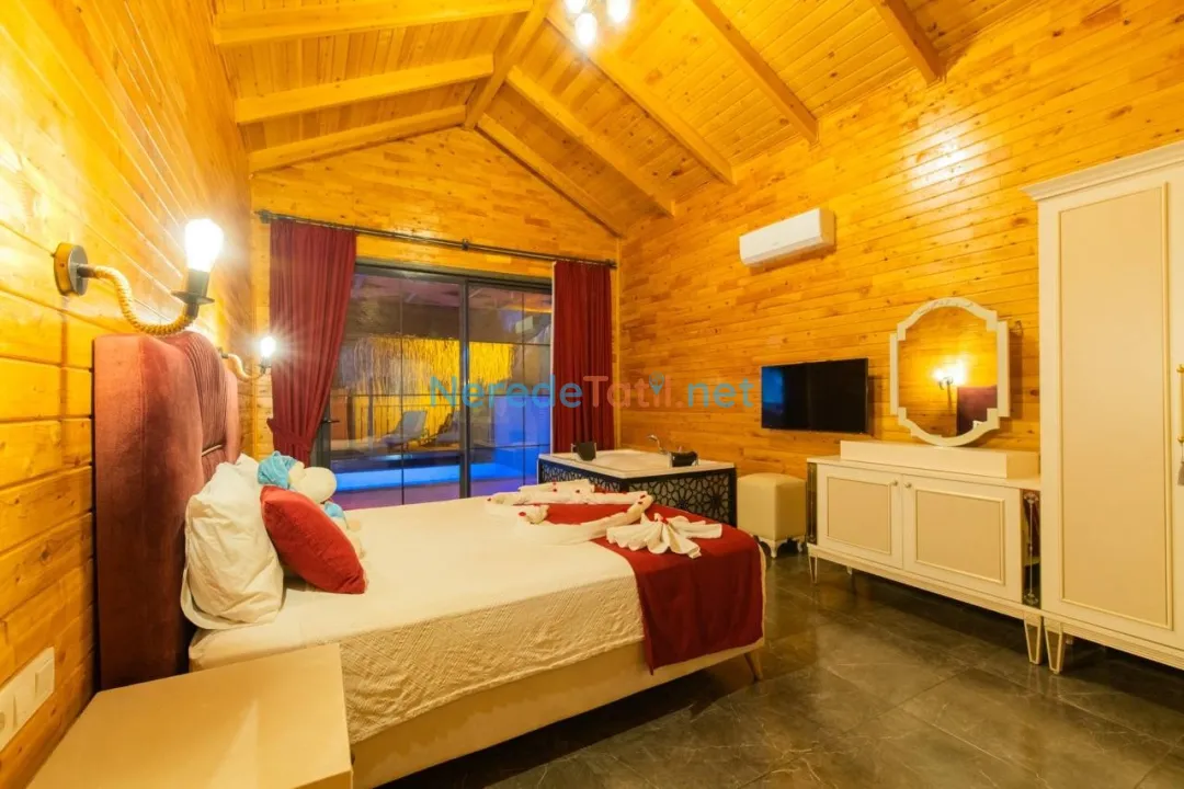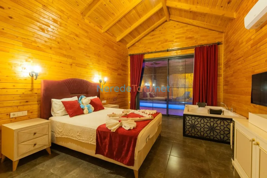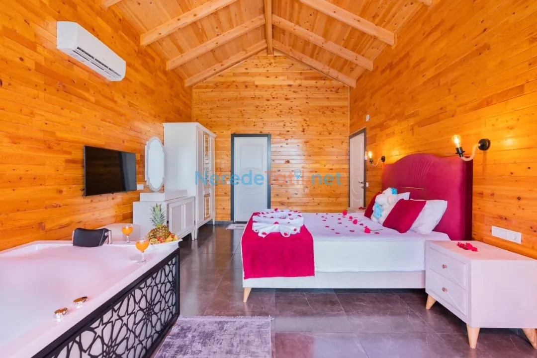Tek yatak odası ve çift kişilik yatak ile konforlu bir konaklama fırsatı sunan villa, ayrıca bir adet banyo ile donatılmıştır. Villa, plaja 2 kilometre, markete 500 metre ve en yakın restorana 1 kilometre uzaklıkta yer alarak, misafirlerine hem doğanın içinde huzur hem de ihtiyaçlarına yakınlık sunar.
