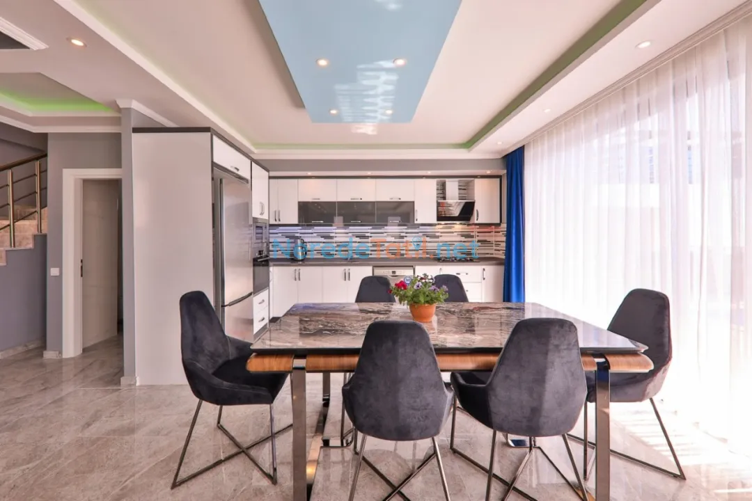 Bu özel villa, lüks ve konforu bir arada sunan bir tatil deneyimi arayanlar için idealdir. Sevdiklerinizle kaliteli zaman geçirmenin keyfini çıkarın.
