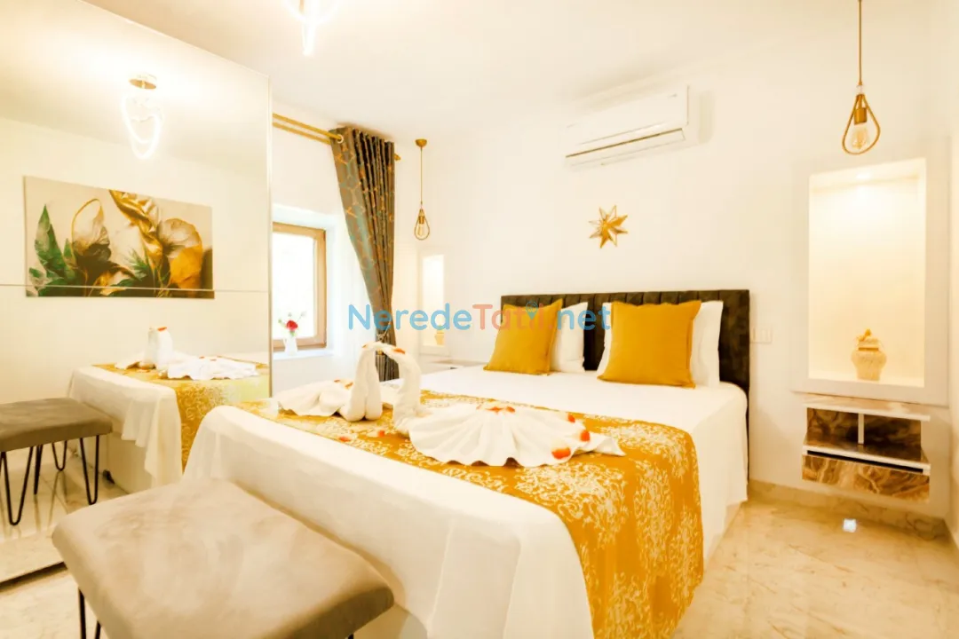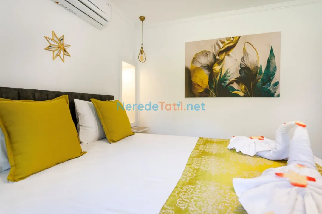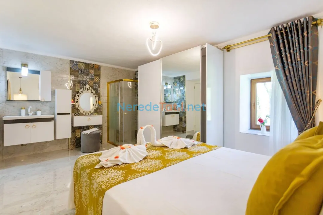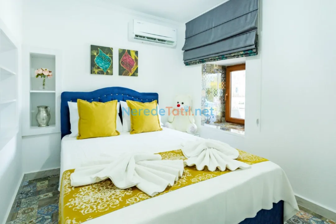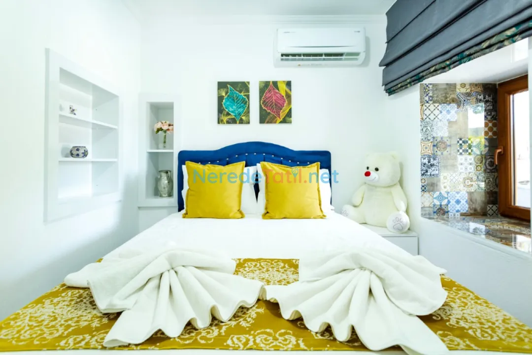 Bezirgan'ın doğa ile iç içe atmosferinde konumlanan bu lüks villa, dört kişilik konaklama kapasitesiyle tatilcilerine huzur dolu bir kaçış sunuyor. Villada, iki adet çift kişilik yatak bulunan iki konforlu yatak odası ve bir modern banyo mevcuttur. Her detayda konforu hissedeceğiniz bu villada, 8 metre uzunluğunda, 3 metre genişliğinde ve 1,5 metre derinliğindeki özel yüzme havuzu tatilinizi daha da keyifli hale getirecek.