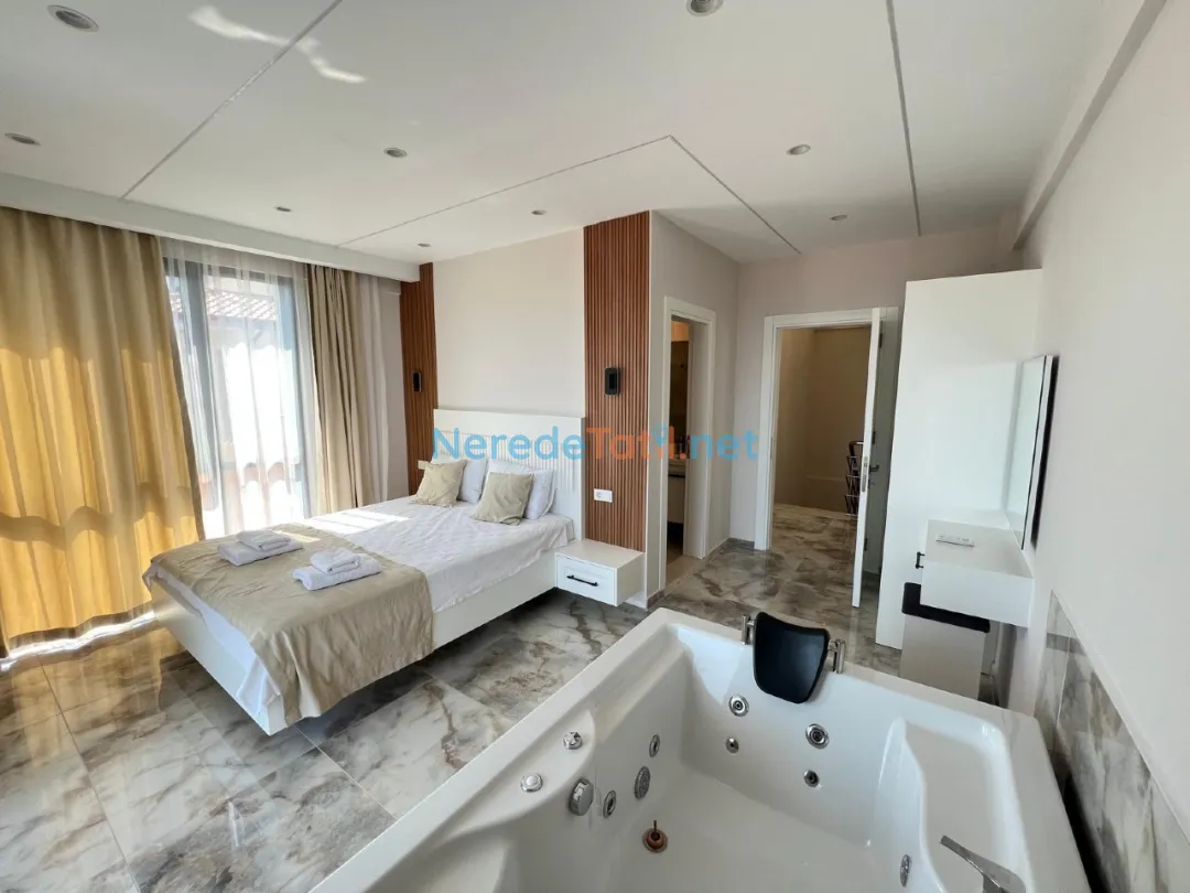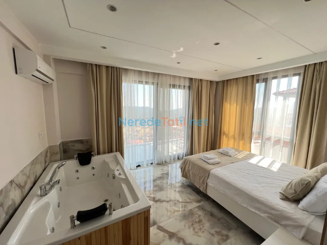 Villanın etkileyici özelliklerinden biri de 7 metre uzunluğunda ve 3 metre genişliğindeki özel yüzme havuzu. Bu havuz, tatilinizi serinletici bir keyfe dönüştürecek. Havuzun derinliği ise 1.5 metre olup, yüzme keyfini güvenli ve eğlenceli hale getiriyor.