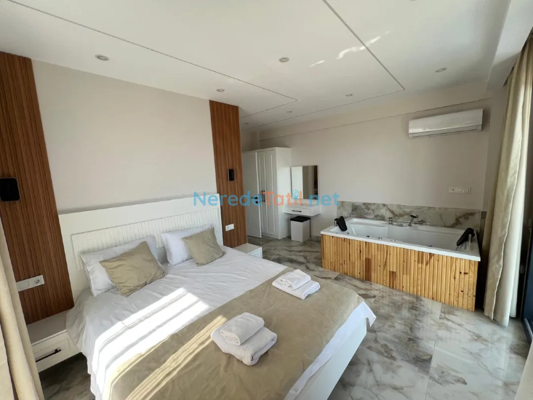 Villanın etkileyici özelliklerinden biri de 7 metre uzunluğunda ve 3 metre genişliğindeki özel yüzme havuzu. Bu havuz, tatilinizi serinletici bir keyfe dönüştürecek. Havuzun derinliği ise 1.5 metre olup, yüzme keyfini güvenli ve eğlenceli hale getiriyor.