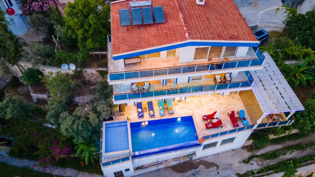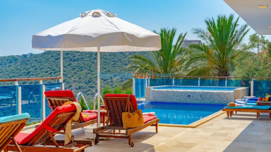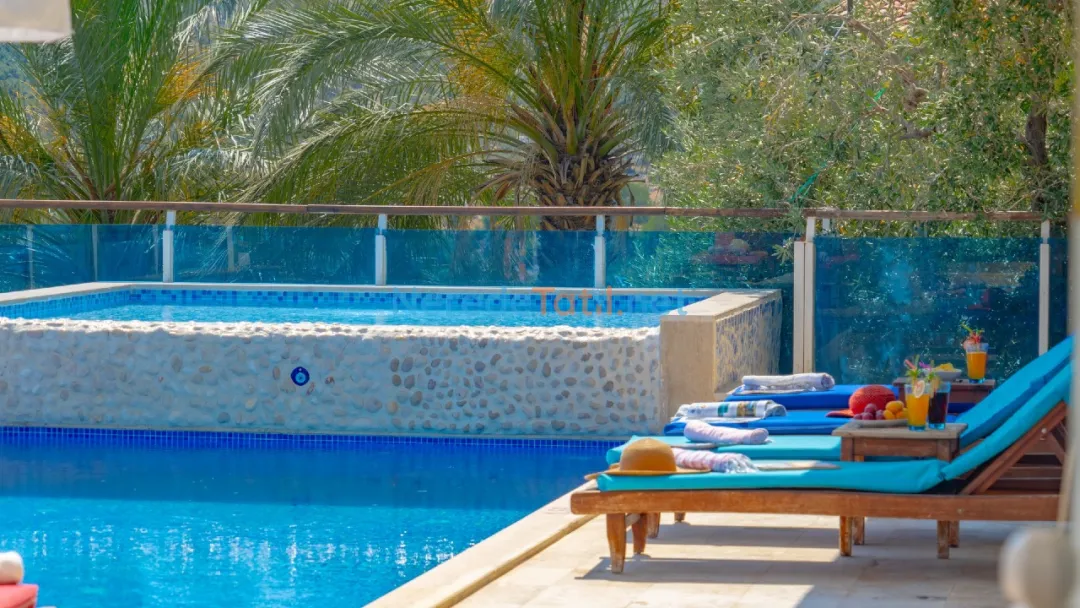 Villanın geniş yüzme havuzu 4 metre genişliğinde, 7 metre uzunluğunda ve 1.6 metre derinliğindedir. Ayrıca çocuklar için güvenli bir şekilde tasarlanmış 3 metre genişliğinde, 4 metre uzunluğunda ve 0.45 metre derinliğinde bir çocuk havuzu da bulunmaktadır. Villanın bahçesi doğa ve deniz manzarası ile çevrilidir, bu da konuklara huzurlu bir ortam sunar.