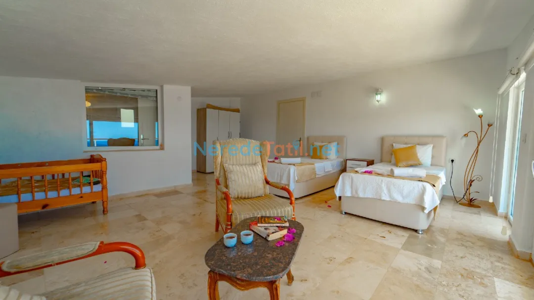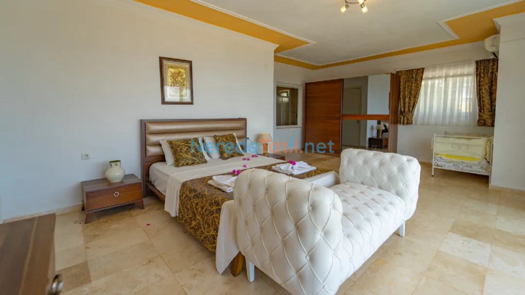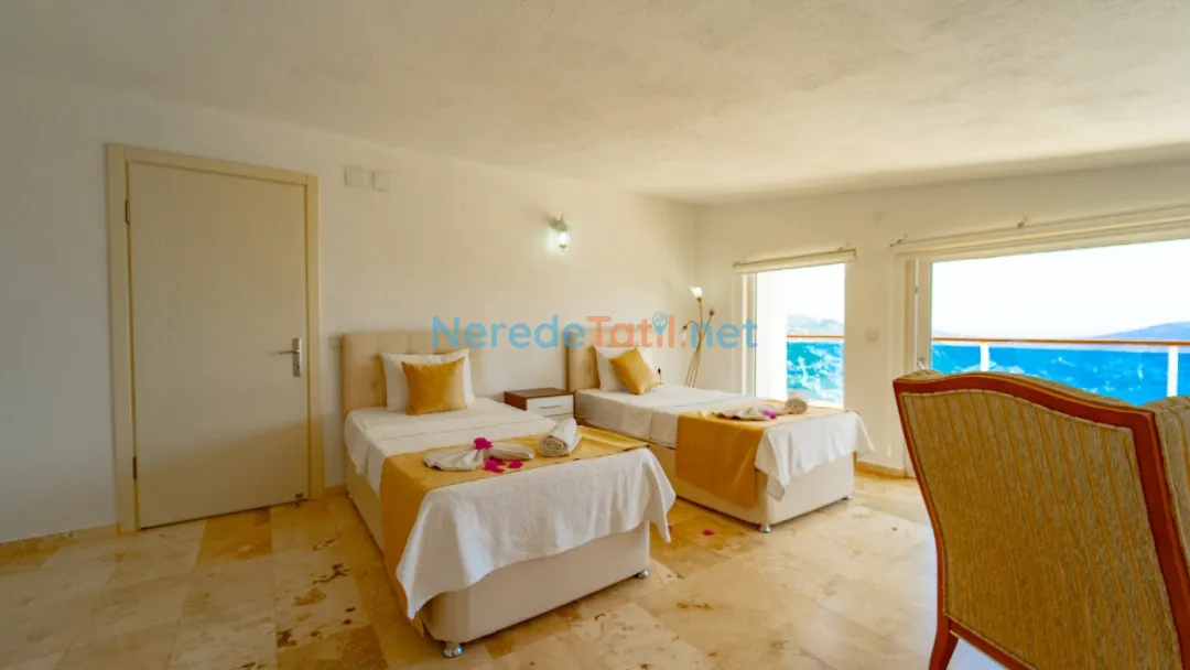 Akbel'de yer alan bu lüks villa, deniz manzarası ve özel havuz deneyimi ile konuklarına unutulmaz bir tatil sunmaktadır. Villada toplamda 10 kişilik konaklama kapasitesi bulunmaktadır ve konforlu bir şekilde donatılmış 5 yatak odası sunulmaktadır. Üç odada çift kişilik yatak, diğer iki odada ise dört tek kişilik yatak yer almaktadır. Her odada kendine ait banyo bulunmakta ve toplamda 5 banyo hizmet vermektedir.