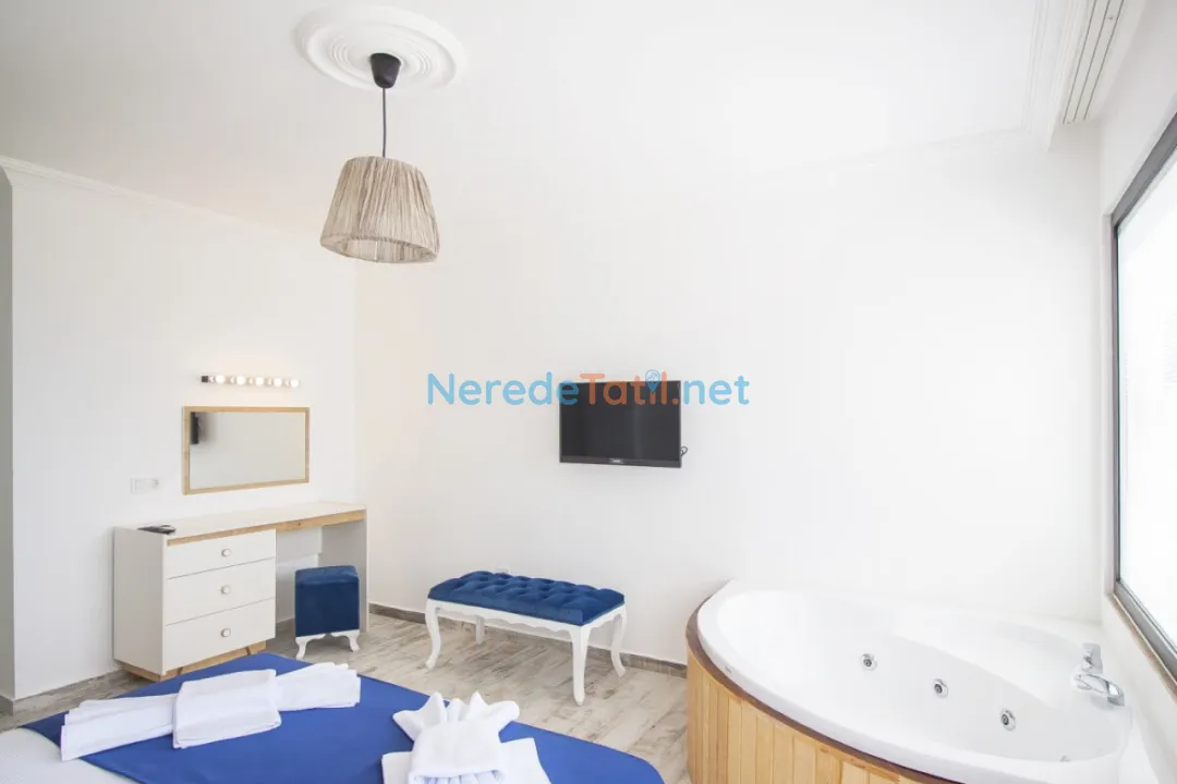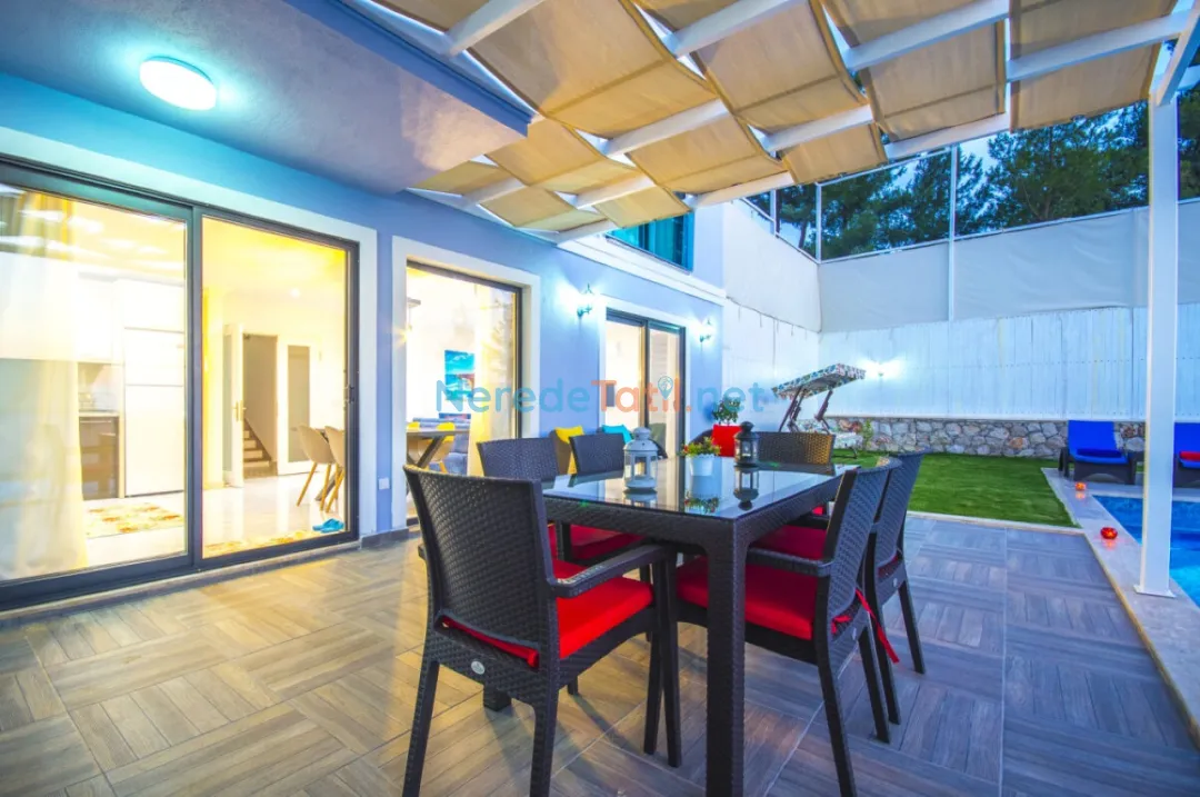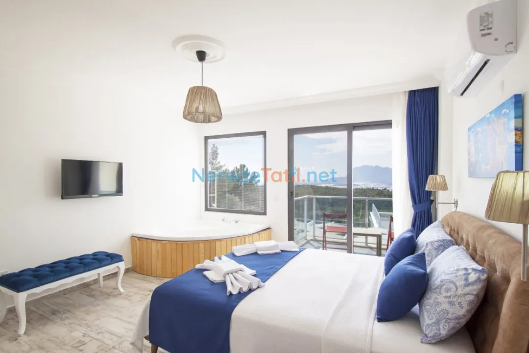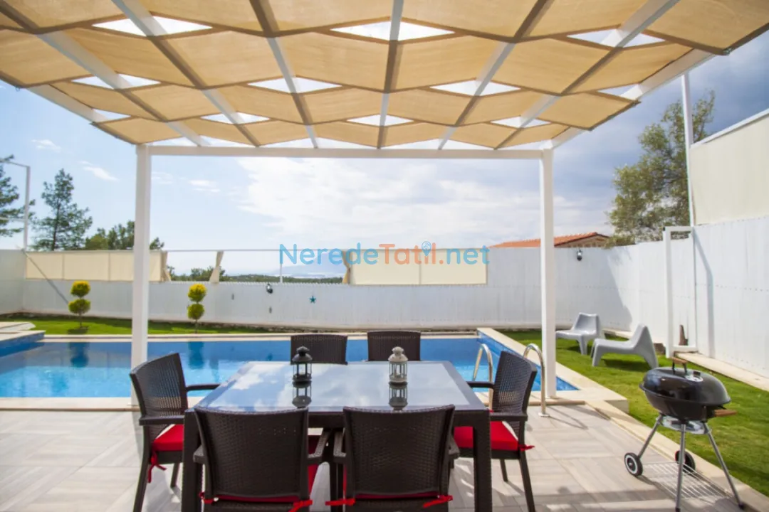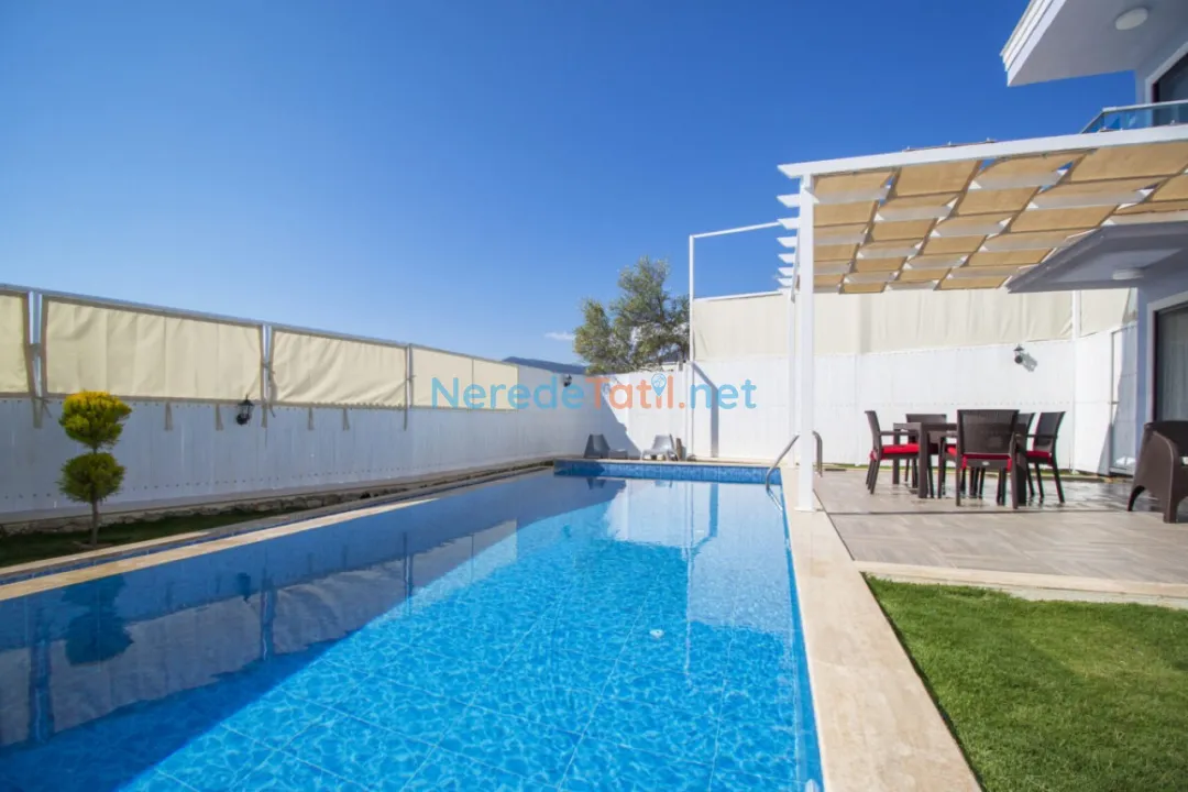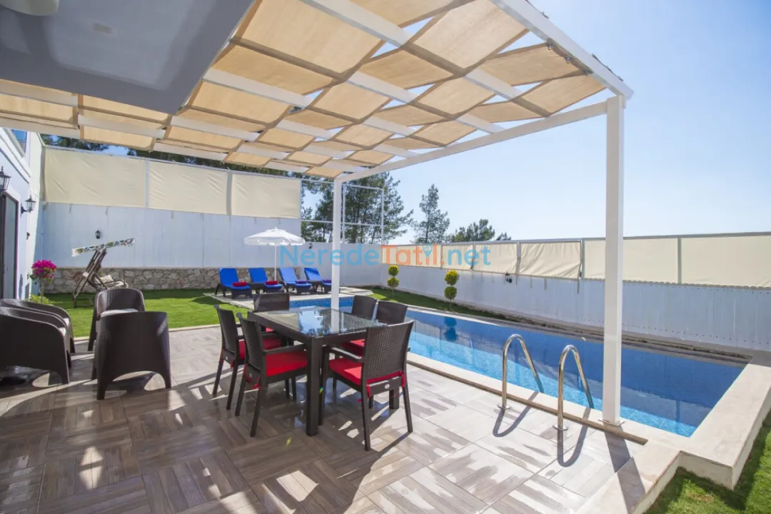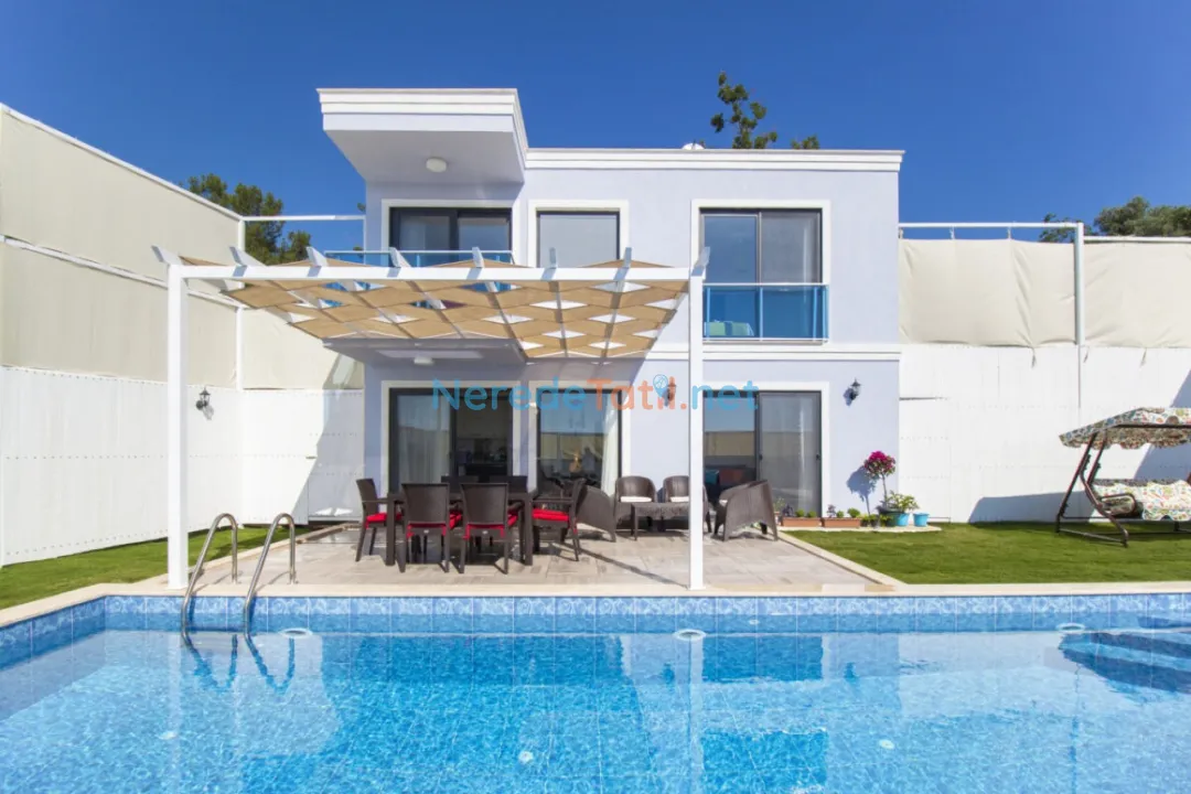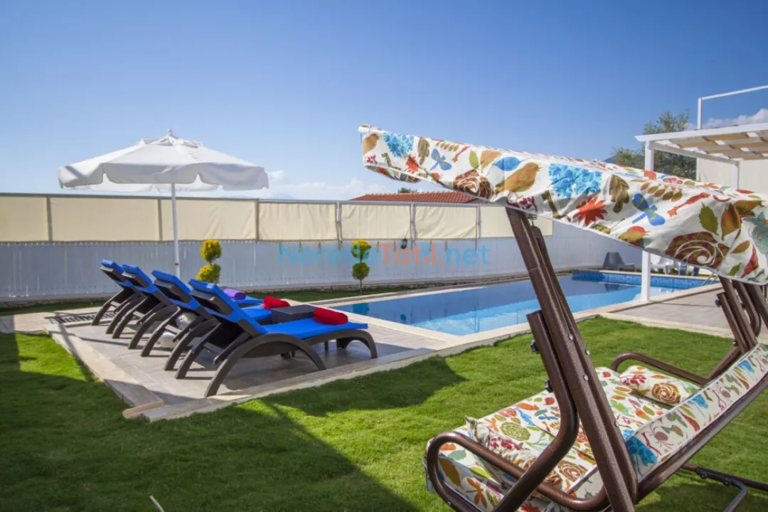 2026 Erken Rezervasyon Villaları arasında yer alan bu villa, muhafazakar tatil arayanlar için de ideal bir seçenektir. Saç kurutma makinesi ve ütü gibi günlük ihtiyaçlarınızı karşılayacak olanaklar da sunulmaktadır. Unutulmaz bir tatil için Üzümlü'deki bu muhteşem villayı tercih edebilirsiniz.