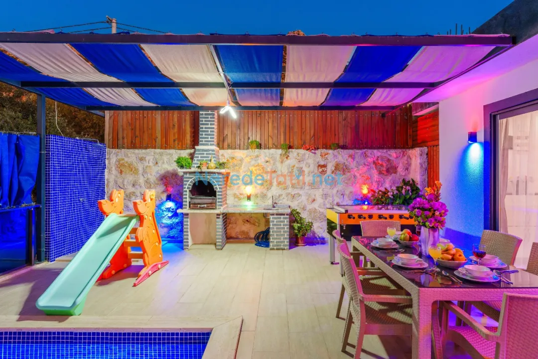 Akbel'in sakin ve doğayla iç içe atmosferinde konumlanan bu villa, 4 kişilik konaklama kapasitesiyle misafirlerine rahat bir tatil deneyimi sunuyor. Özel yüzme havuzunuz, 3.3 metre en, 8.3 metre boy ve 1.55 metre derinlikle tatiliniz boyunca keyifli anlar yaşamanız için ideal bir ortam sağlıyor. Villada iki yatak odası ve iki banyo bulunuyor; ana yatak odasında bir çift kişilik yatak ve diğer odada iki tek kişilik yatak mevcut.