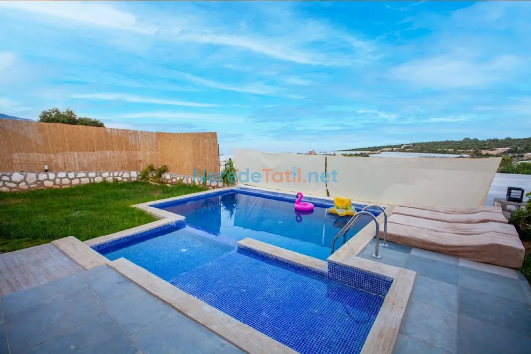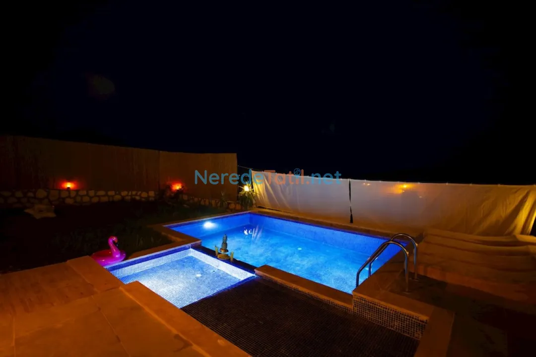 Villa, özel yüzme havuzu ile konuklarına serinleme imkanı sunarken, çocuk havuzu da minik misafirlerin eğlenceli vakit geçirmesi için düşünülmüştür. Havuzun boyu 7 metre, eni 3 metre ve derinliği 1.55 metre olup, çocuk havuzu 4 metre uzunluğunda, 2 metre genişliğinde ve 40 cm derinliğindedir.