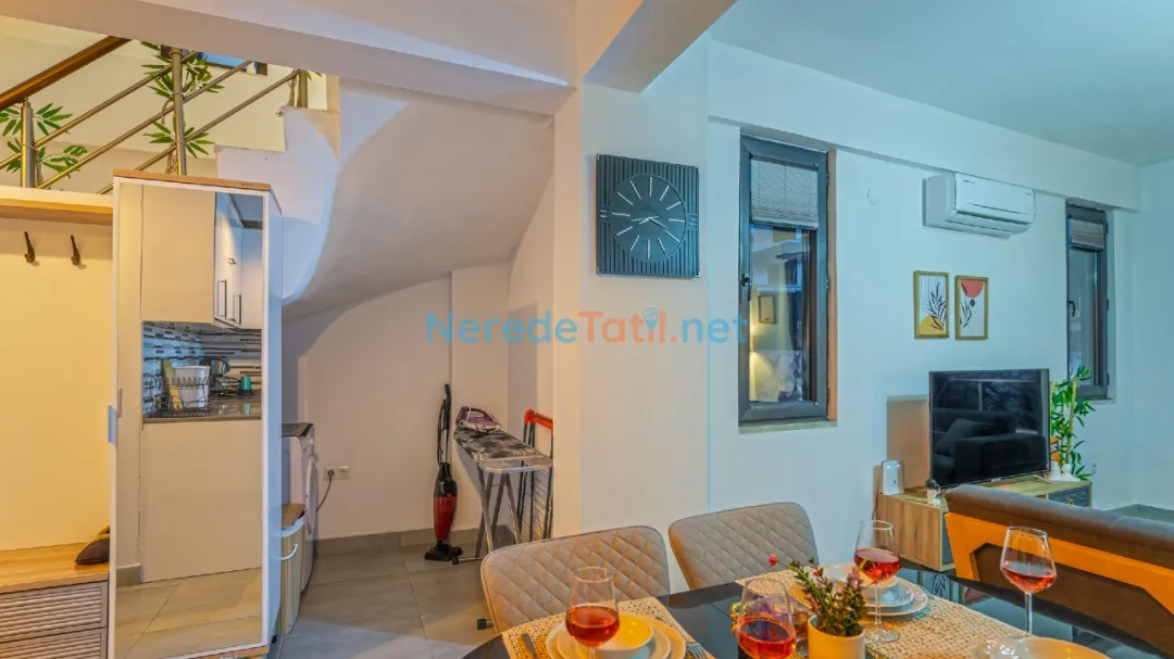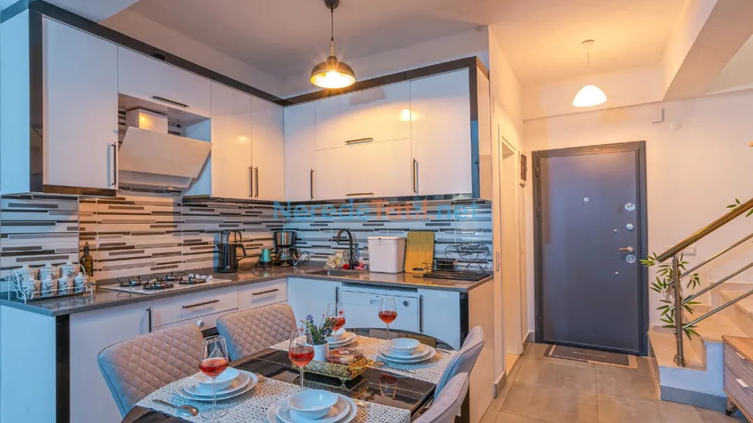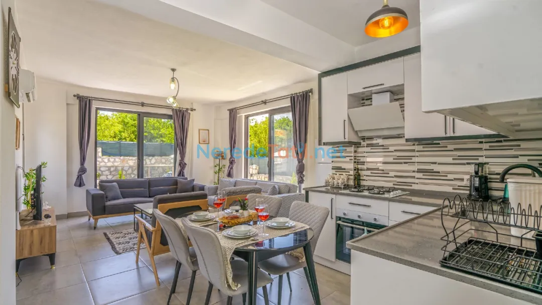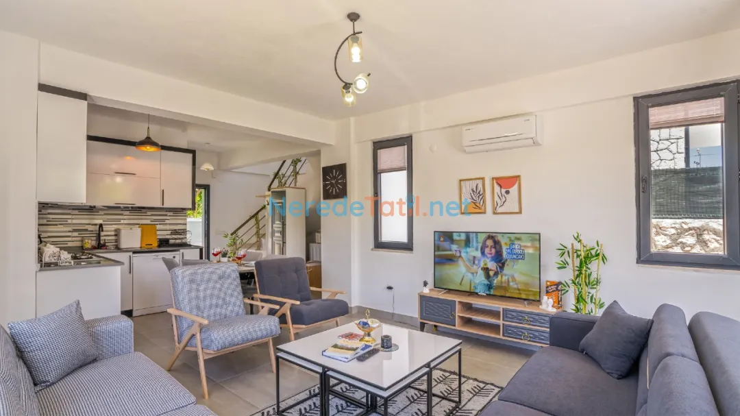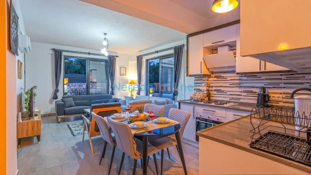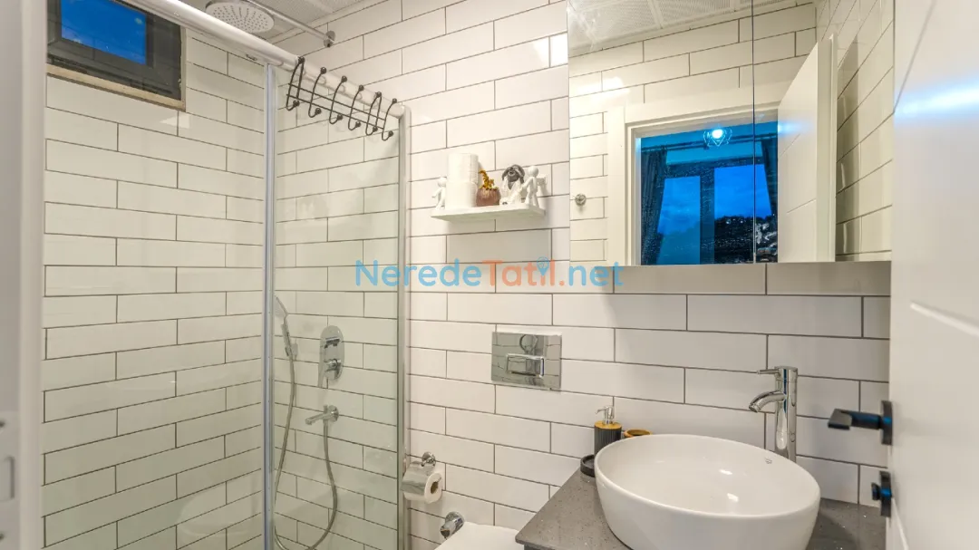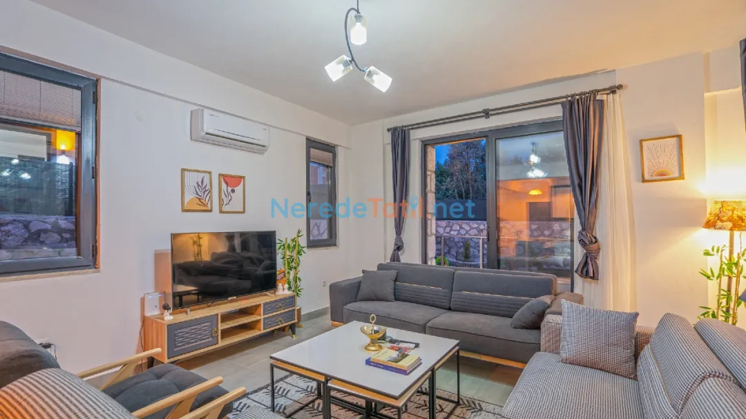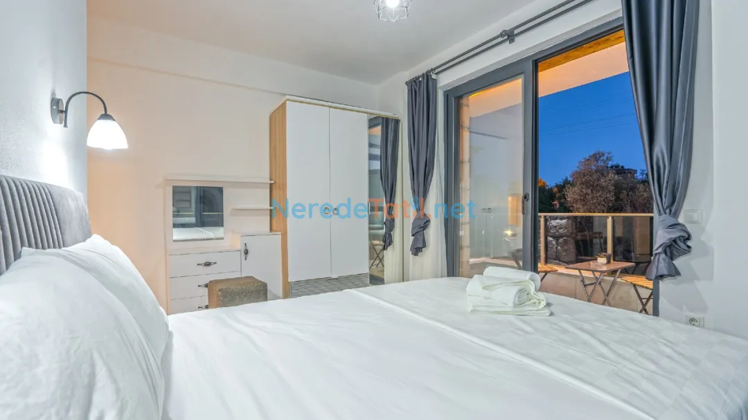 Villamızda iki yatak odası ve iki banyo bulunmakta olup dört kişiye kadar konaklama kapasitesi sunmaktadır. Yatak odalarından biri çift kişilik yatakla donatılmışken, diğer odada iki tek kişilik yatak mevcuttur. Bu konforlu tasarım, ailece veya arkadaş grubuyla tatil yapmak isteyenler için idealdir.