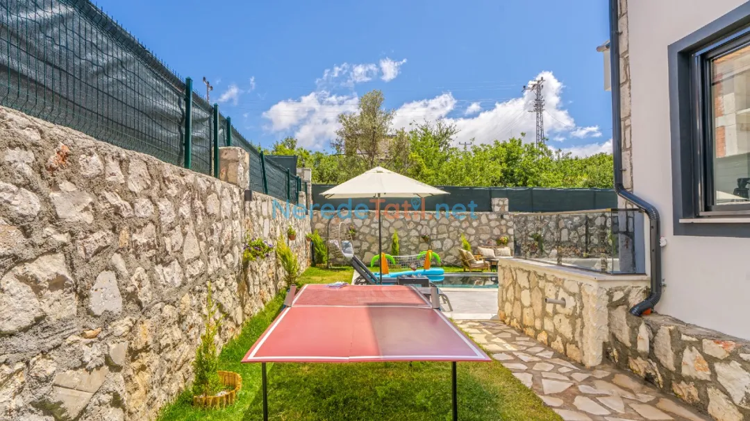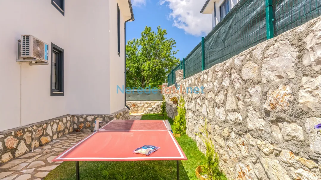 Geniş bahçesi ve BBQ - Mangal alanıyla açık havada keyifli zaman geçirebilir, masa tenisi ile eğlenceli anlar yaşayabilirsiniz. Villanın özel otopark imkanı sayesinde araçlarınızı güvenle park edebilirsiniz.