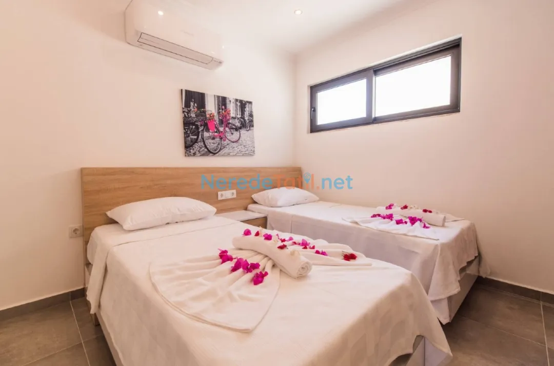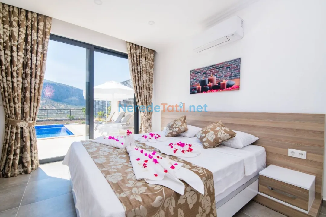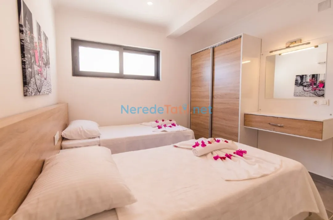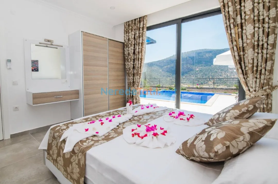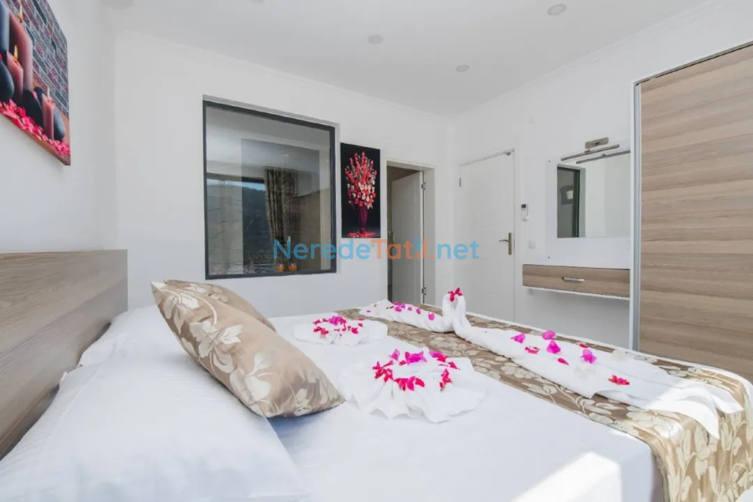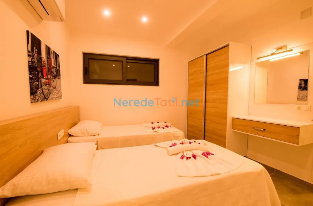 Ulugöl'ün büyüleyici doğasında konfor ve lüksü bir arada sunan bu villa, 4 kişi kapasitesi ile ideal bir tatil deneyimi yaşatıyor. Villada iki yatak odası ve iki banyo bulunmakta olup, konforlu bir konaklama imkanı sunmaktadır. Rahat ve huzurlu bir ortam sunan bu villada, bir çift kişilik yatak ve iki tek kişilik yatak bulunmaktadır.